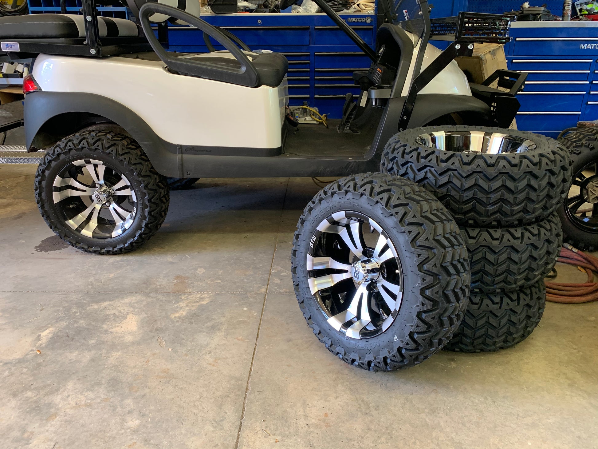 Super sharp looking tire and wheel combo!! Your golf cart will be sure to turn heads with this set of tires and wheels...