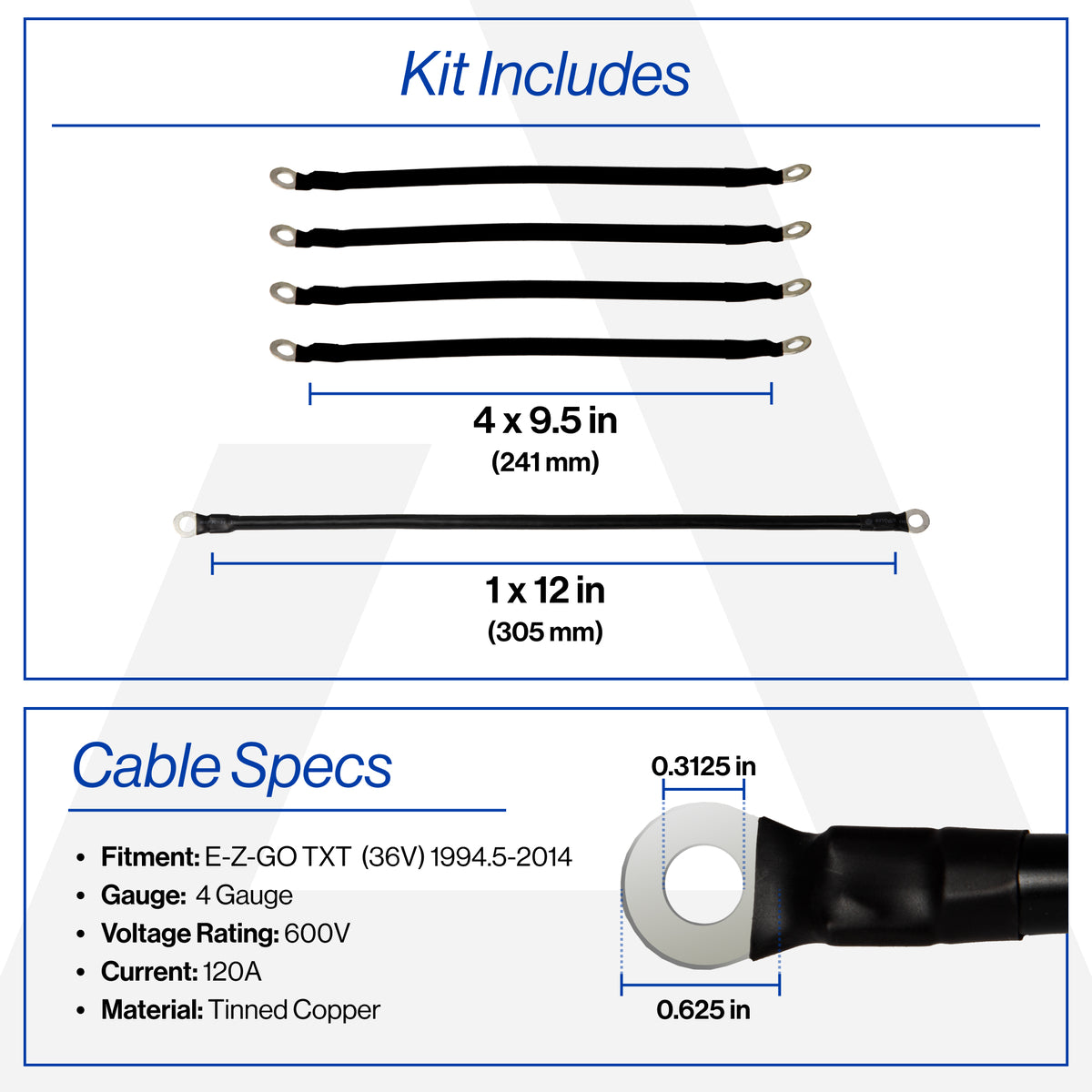 EZGO TXT 36V 4-Gauge Battery Cable Set (Years 1994.5-2014)