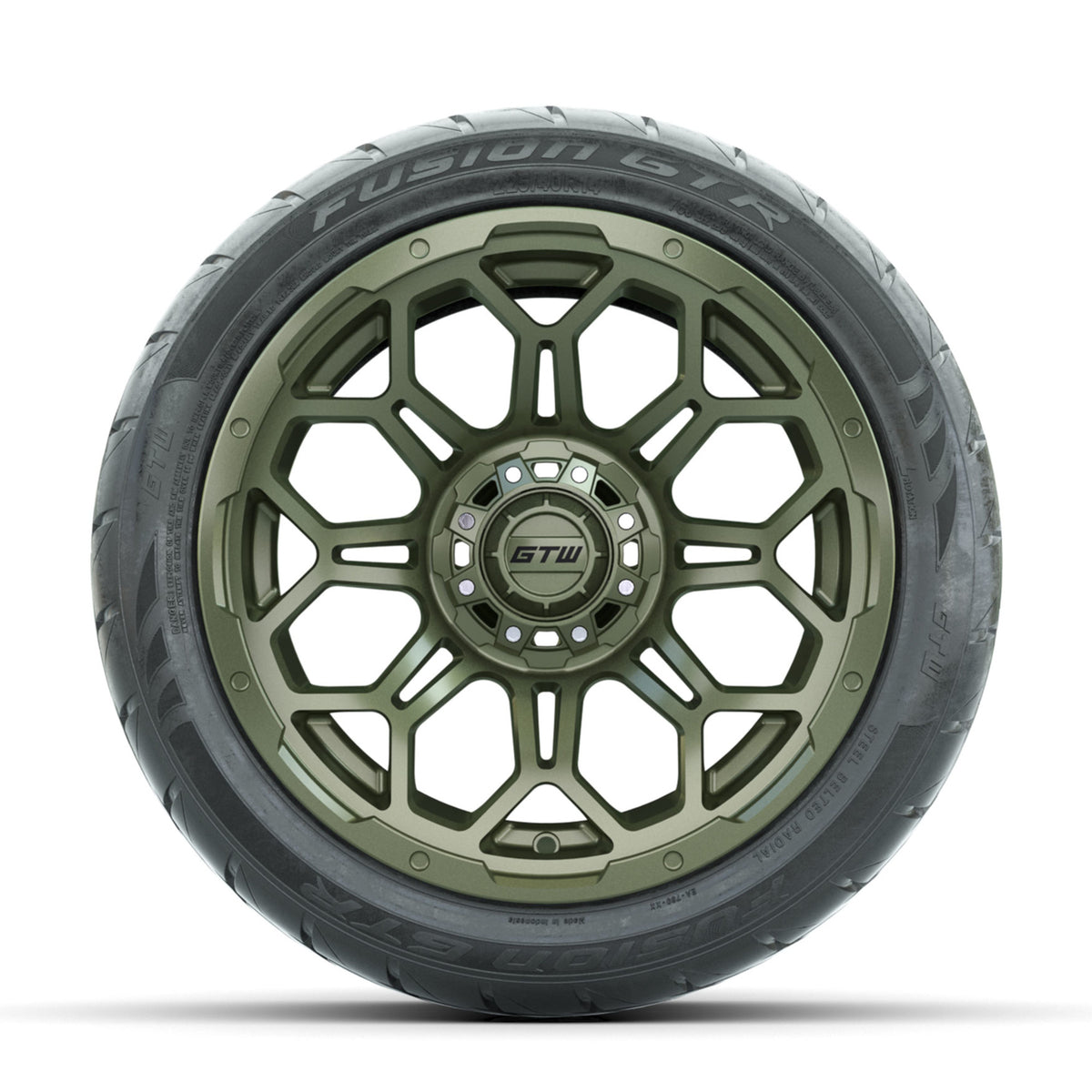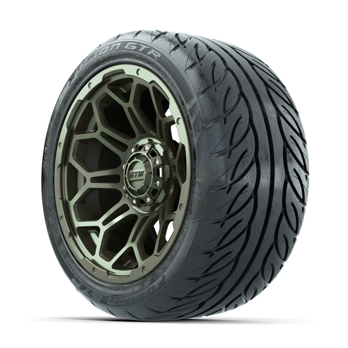 GTW Bravo Matte Recon Green 14 in Wheels with 225/40-R14 Fusion GTR Street Tires Full Set