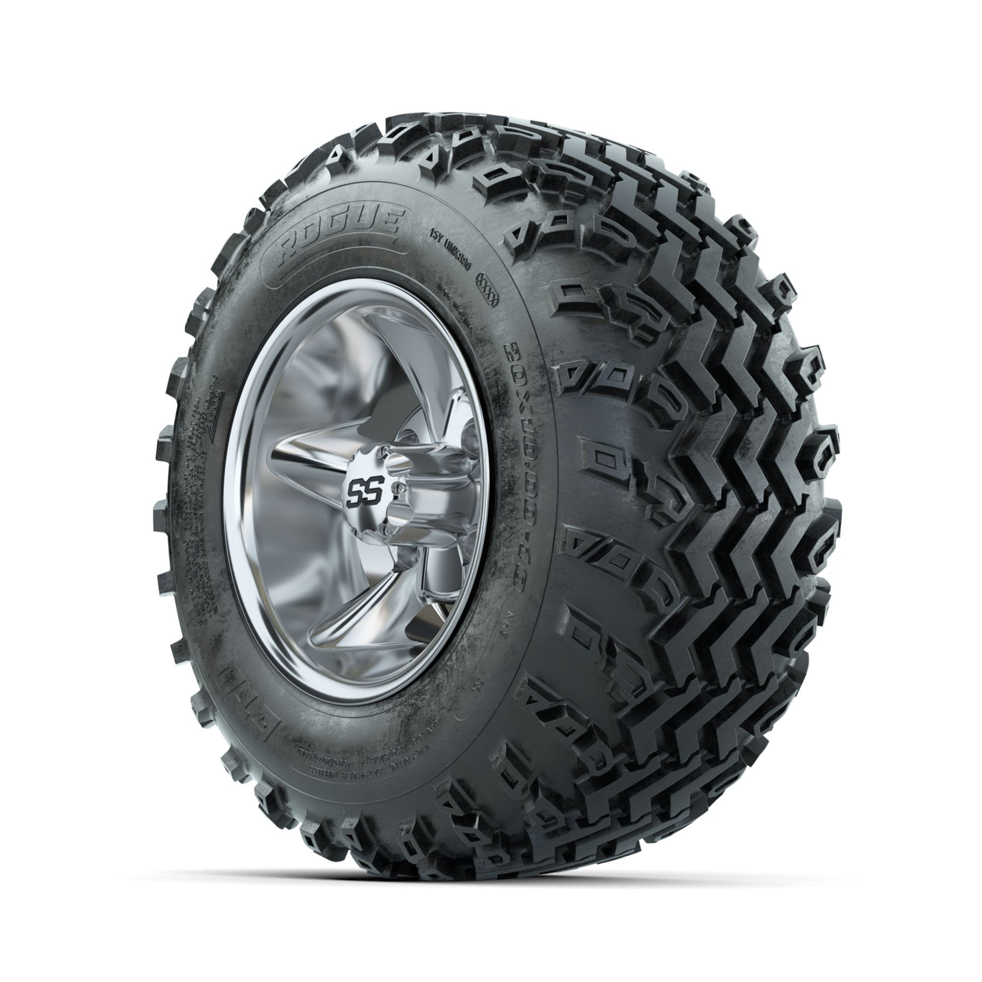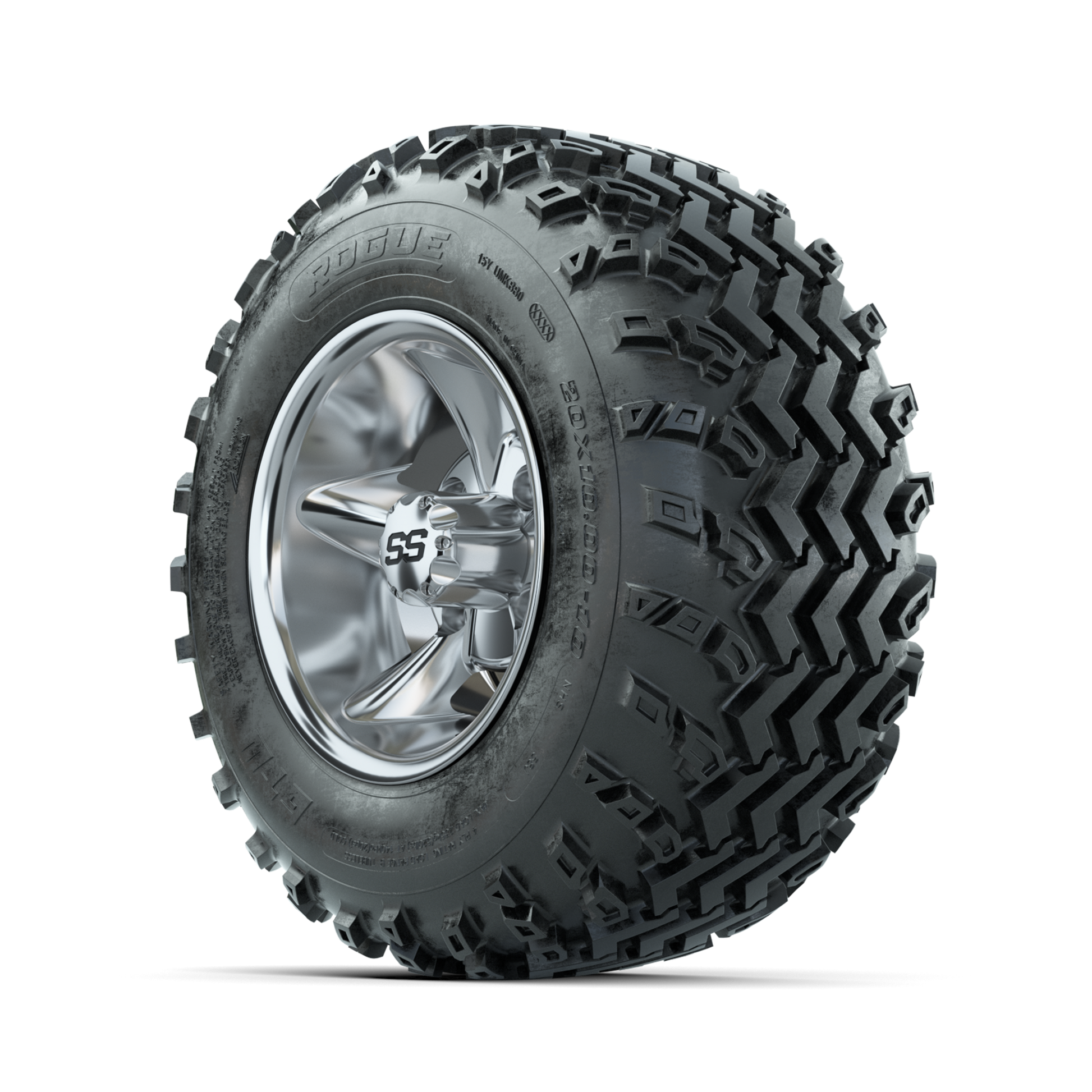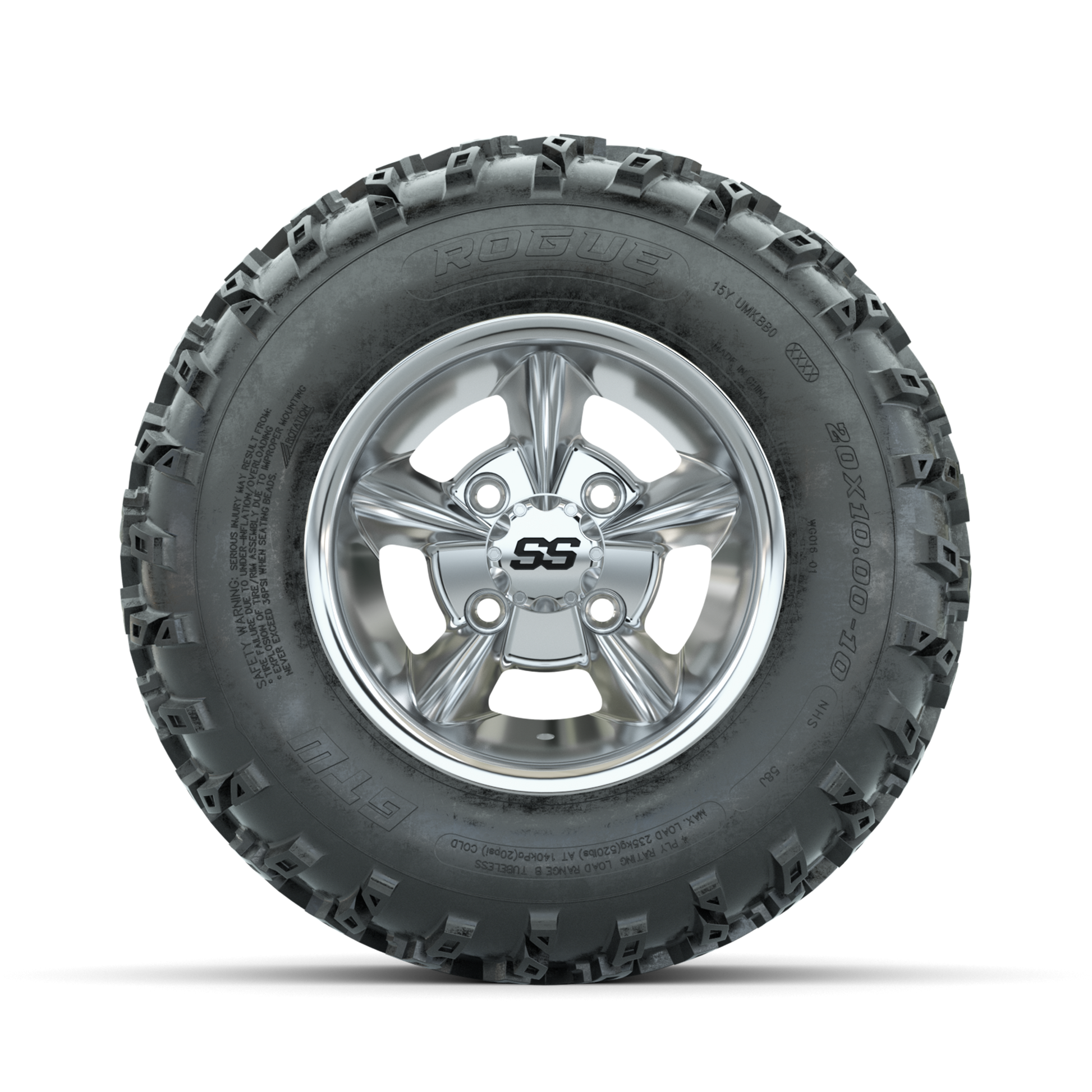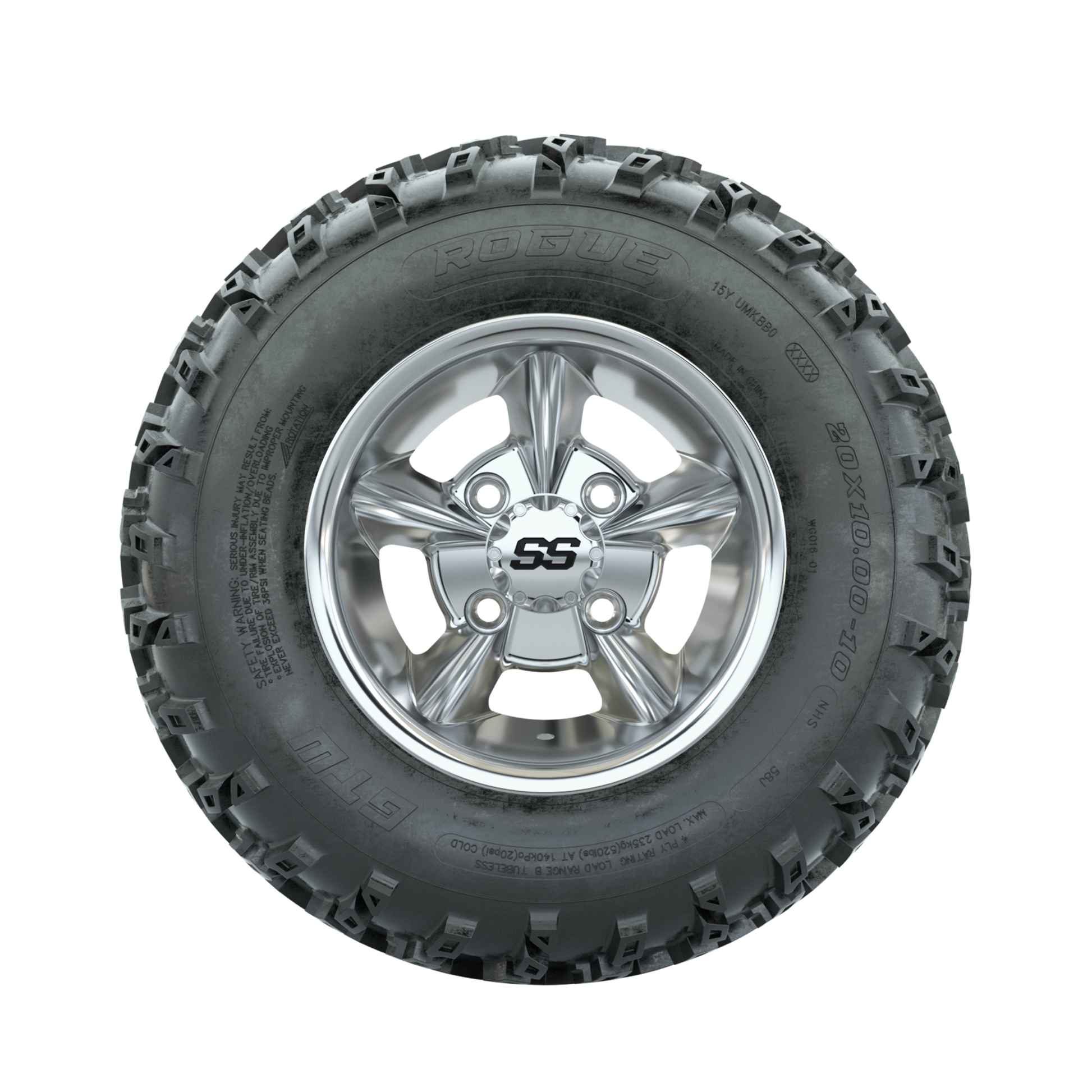 GTW Godfather Chrome 10 in Wheels with 20x10.00-10 Rogue All Terrain Tires Full Set