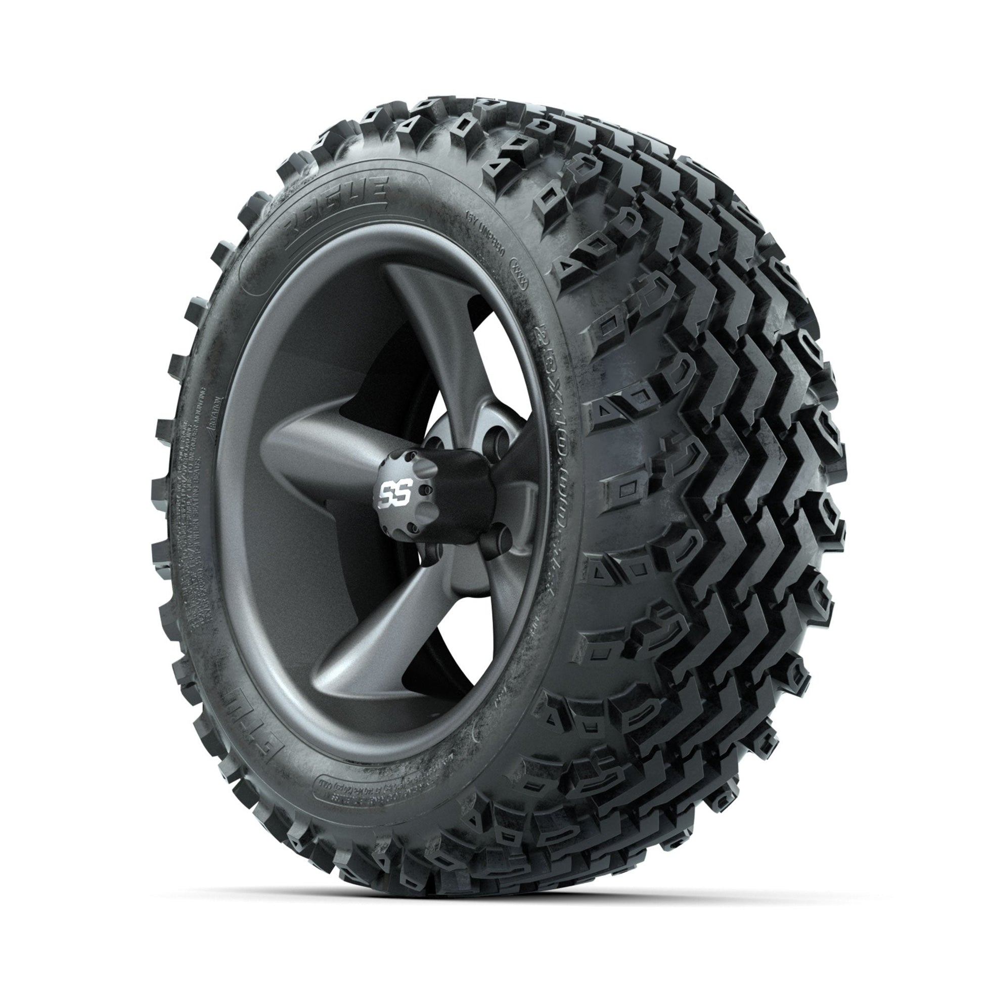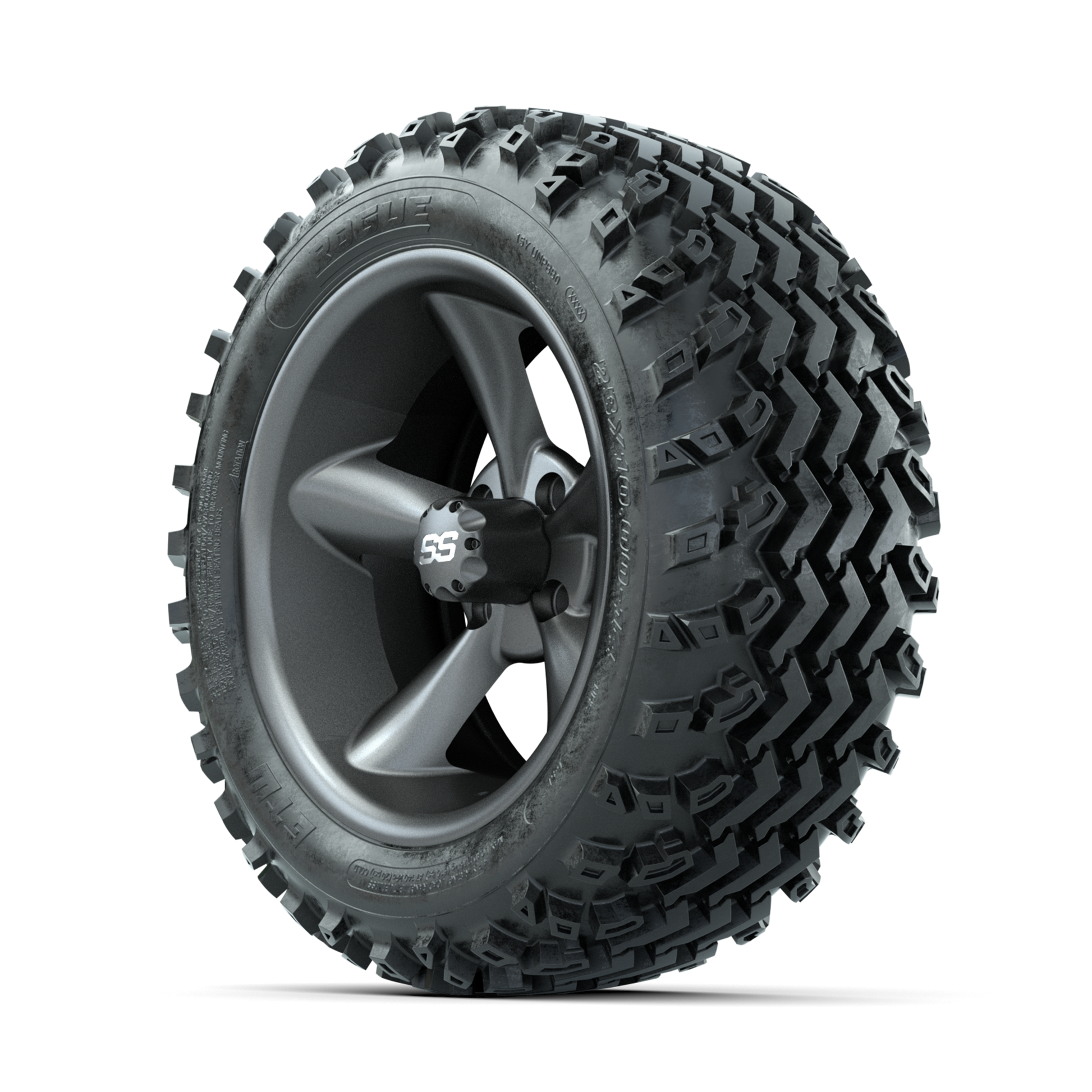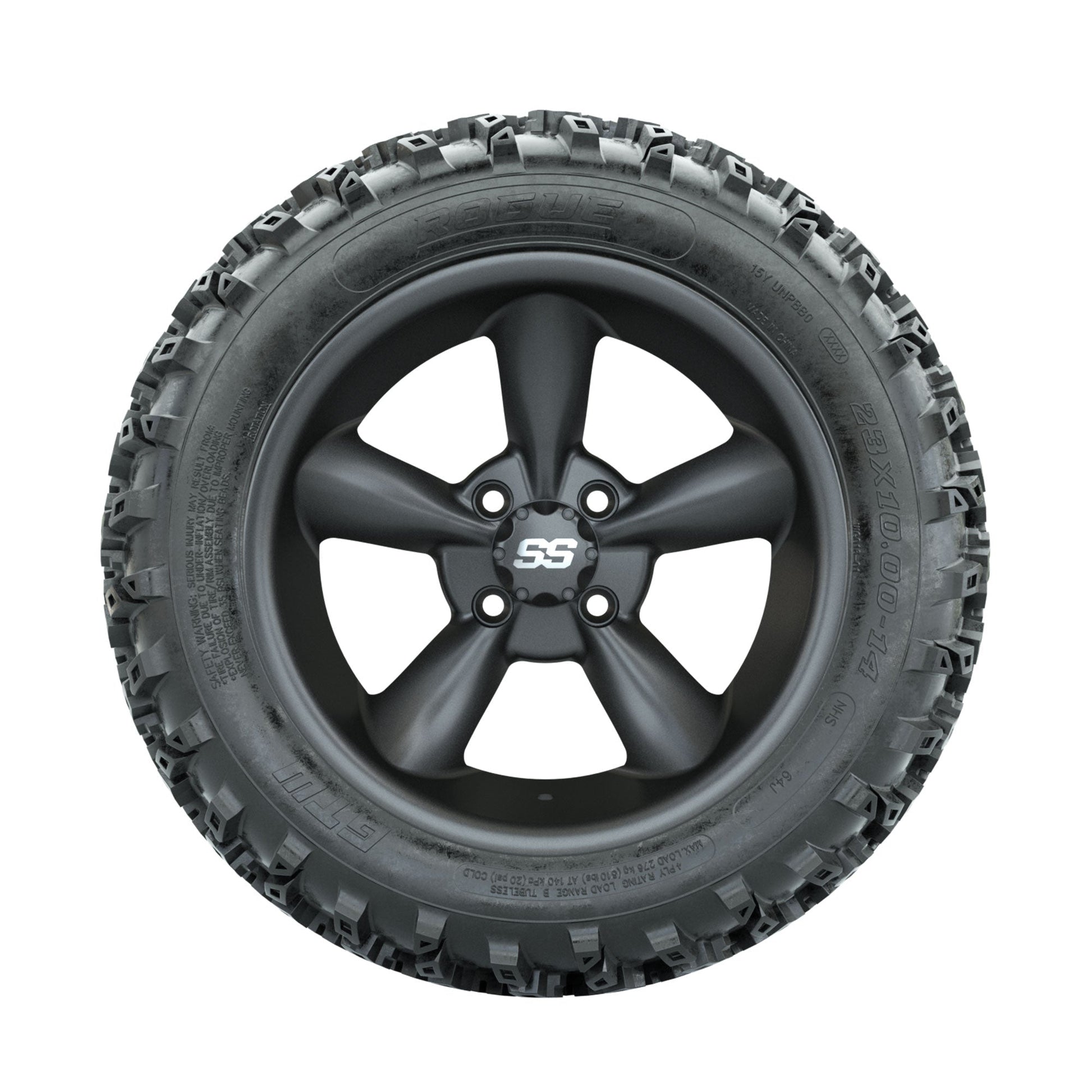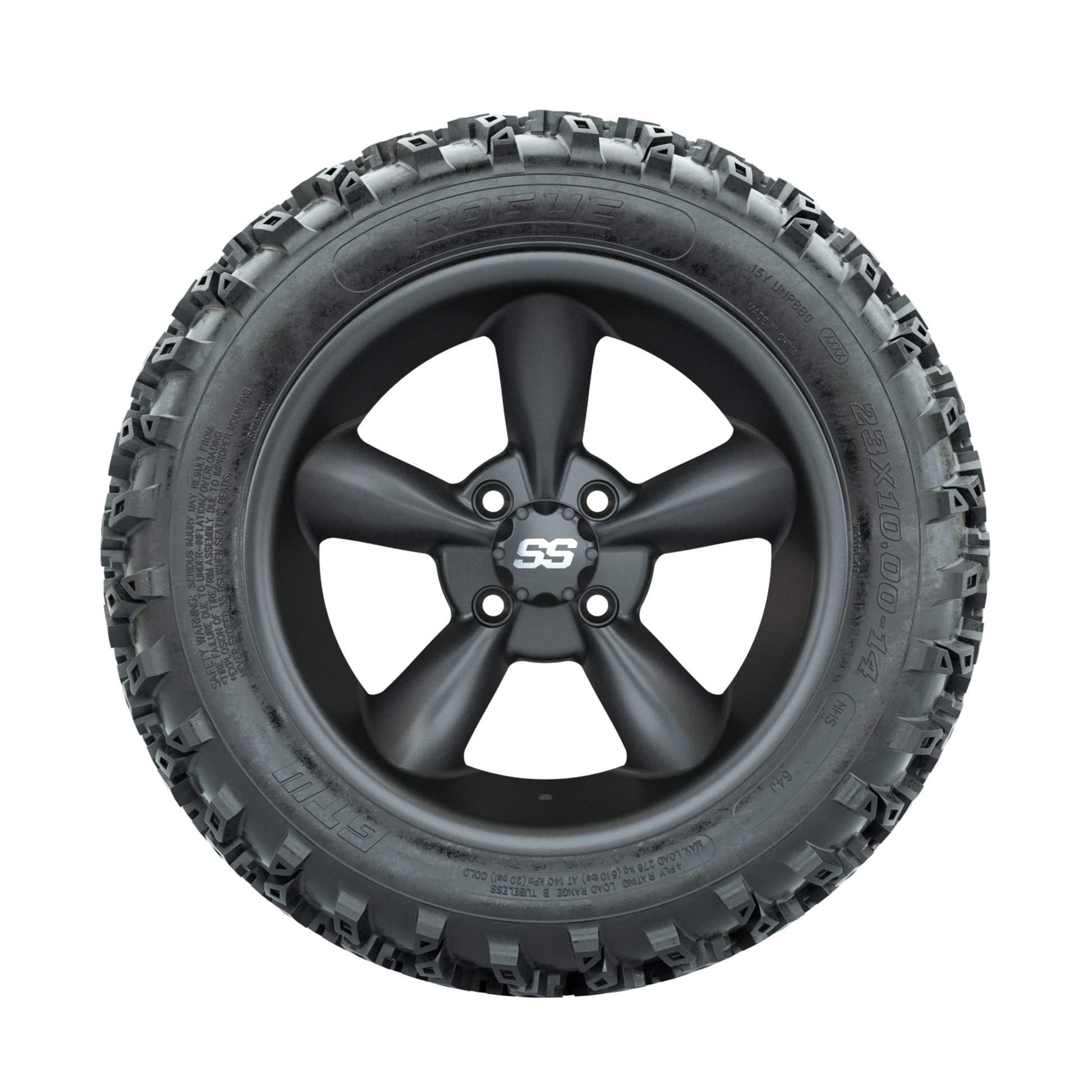 | Product Description: | A set of (4) 14-inch GTW-Godfather Matte Grey golf cart wheels Mounted on 23x10.00-14 Rogue All-Terrain Tires Tread Classification: All-Terrain Full Tire & Wheel Combo Includes: (4) 14x7 GTW-Godfather Wheels / Matte Grey finish / Offset: 3:4 (ET -.25) (4) 23x10.00-14 GTW Rogue All-Terrain Tires / Tire is approx. 23- tall (4-Ply) (4) Center caps Please Note: All Wheels are 4 on 4 Hole / Lug Pattern unless otherwise specified. Tech Tips: We Recommend a Minimum 3- Lift Kit for This Tire & Wheel Combo (Tire is approx. 23- OD) Please Check and Adjust PSI in Tires Before Operation (Recommended Inflation Can Be Found on Sidewall of Tire) Tire & Wheel Combos are mounted and Inflated Before Shipping, Free of Charge All Wheels Have a lug pattern of "4x101.6mm" Lug Nuts Sold Separately: Standard Chrome Lug Nuts #LUG4S Metric Chrome Lug Nuts #LUG4M (Yamaha Models) |