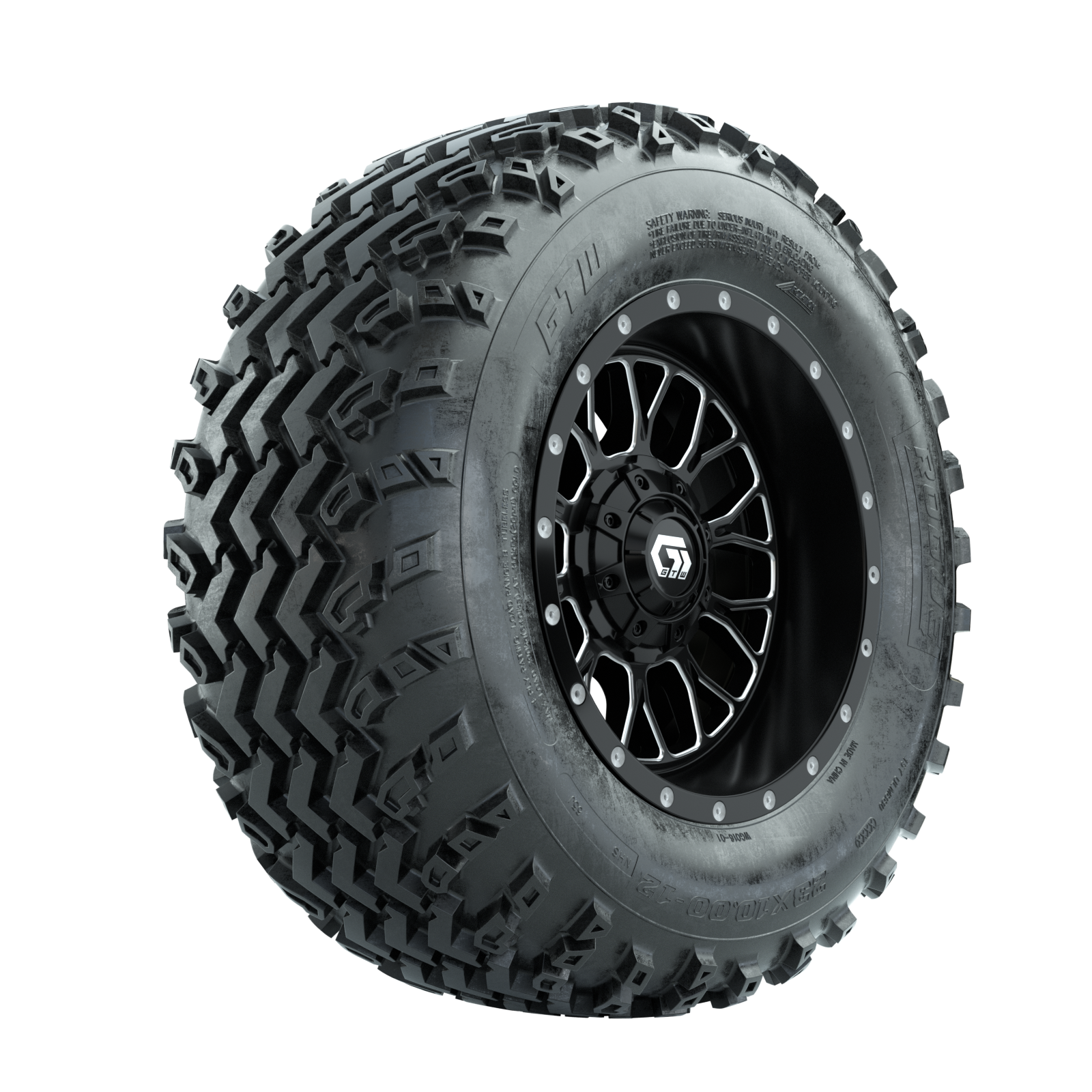 | Product Description: | A set of (4) 12-inch GTW-Helix Machined/Black golf cart wheels Mounted on 23x10.00-12 Rogue All-Terrain Tires Tread Classification: All-Terrain Full Tire & Wheel Combo Includes: (4) 12x7 GTW-Helix Wheels / Machined/Black finish / Offset: 3:4 (ET -.25) (4) 23x10.00-12 GTW Rogue All-Terrain Tires / Tire is approx. 23- tall (4-Ply) (4) Center caps Please Note: All Wheels are 4 on 4 Hole / Lug Pattern unless otherwise specified. Tech Tips: We Recommend a Minimum 3- Lift Kit for This Tire & Wheel Combo (Tire is approx. 23- OD) Please Check and Adjust PSI in Tires Before Operation (Recommended Inflation Can Be Found on Sidewall of Tire) Tire & Wheel Combos are mounted and Inflated Before Shipping, Free of Charge All Wheels Have a lug pattern of "4x101.6mm" Lug Nuts Sold Separately: Standard Chrome Lug Nuts #LUG4S Metric Chrome Lug Nuts #LUG4M (Yamaha Models) |
