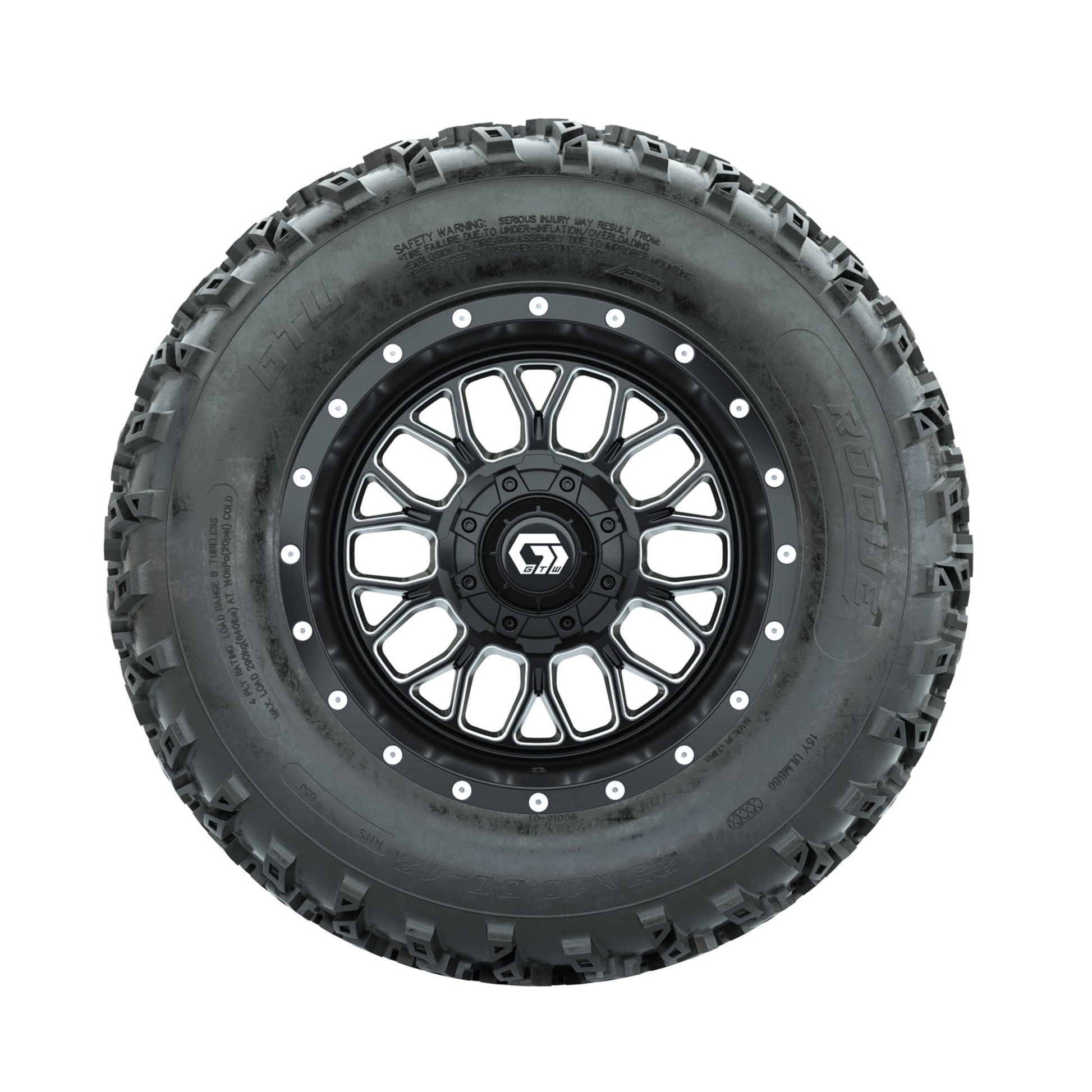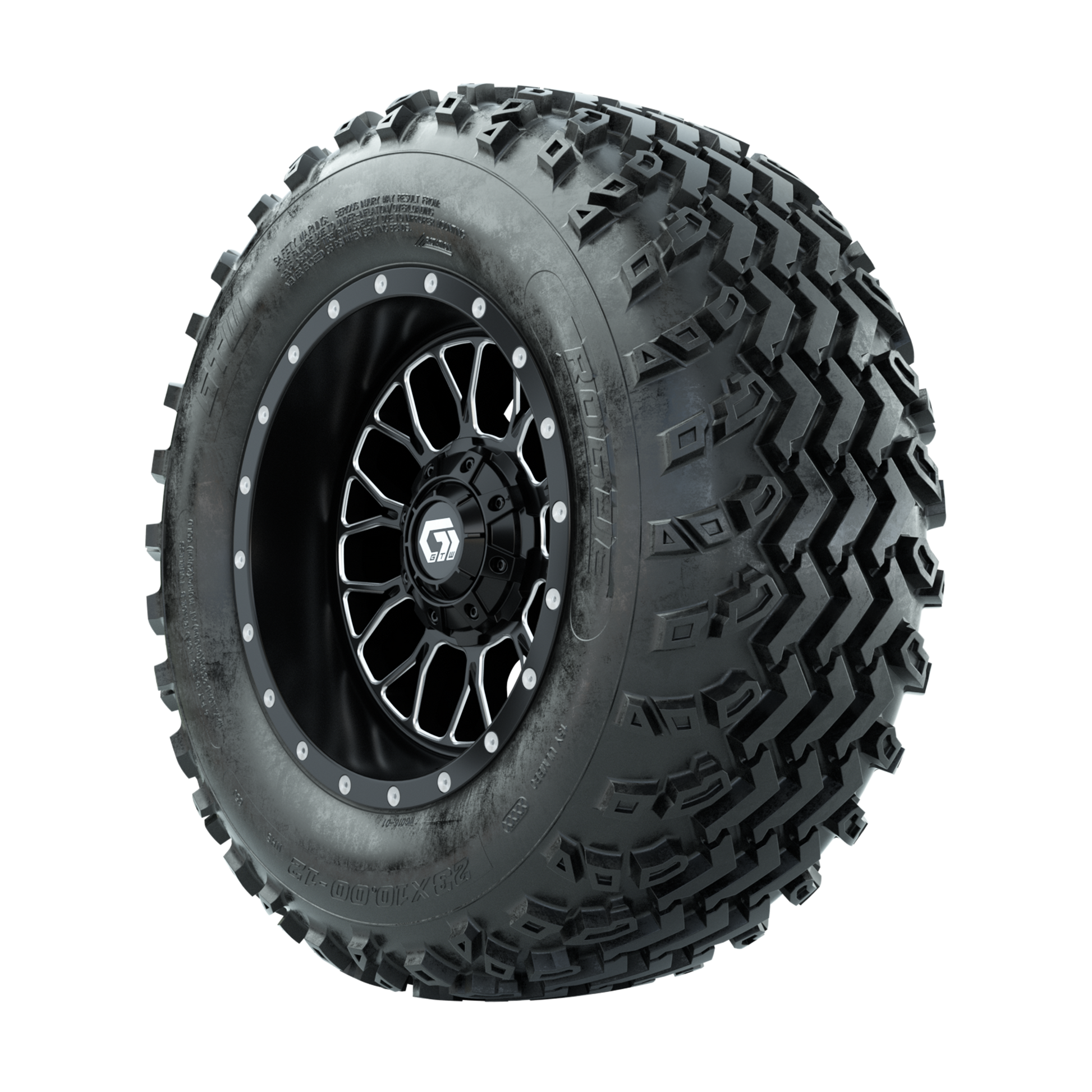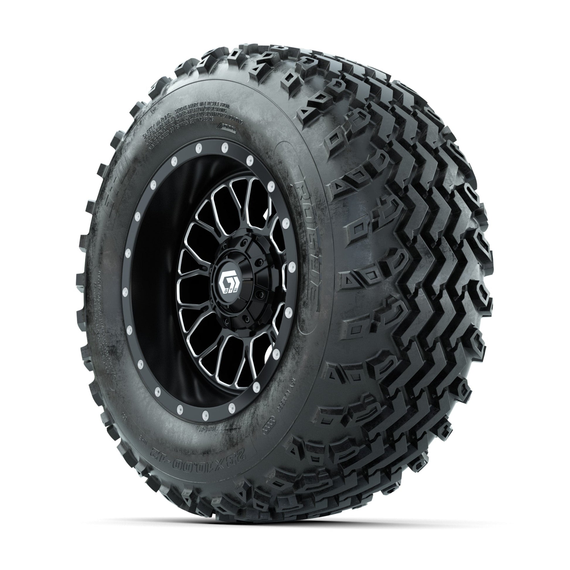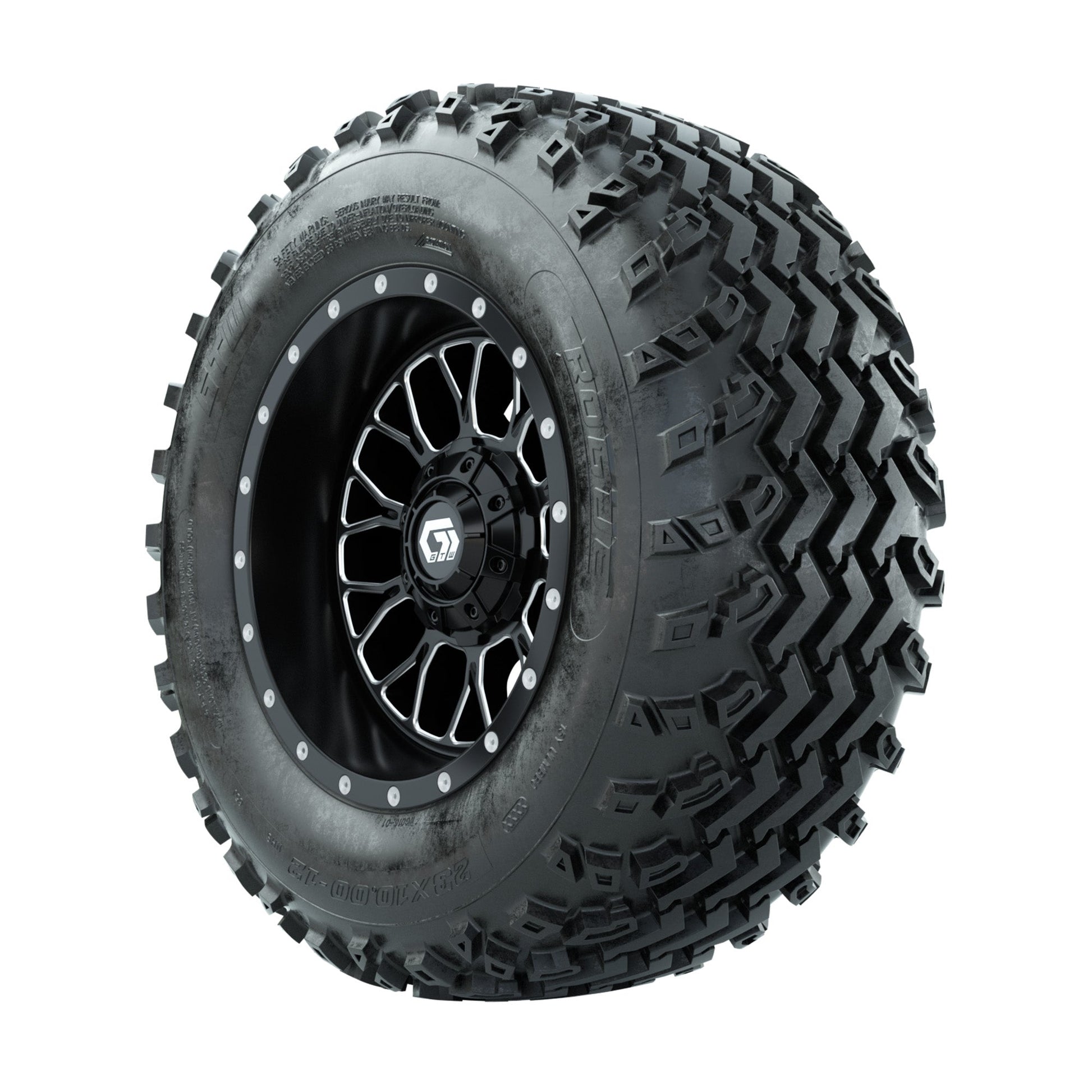 GTW Helix Machined/Black 12 in Wheels with 23x10.00-12 Rogue All Terrain Tires Full Set