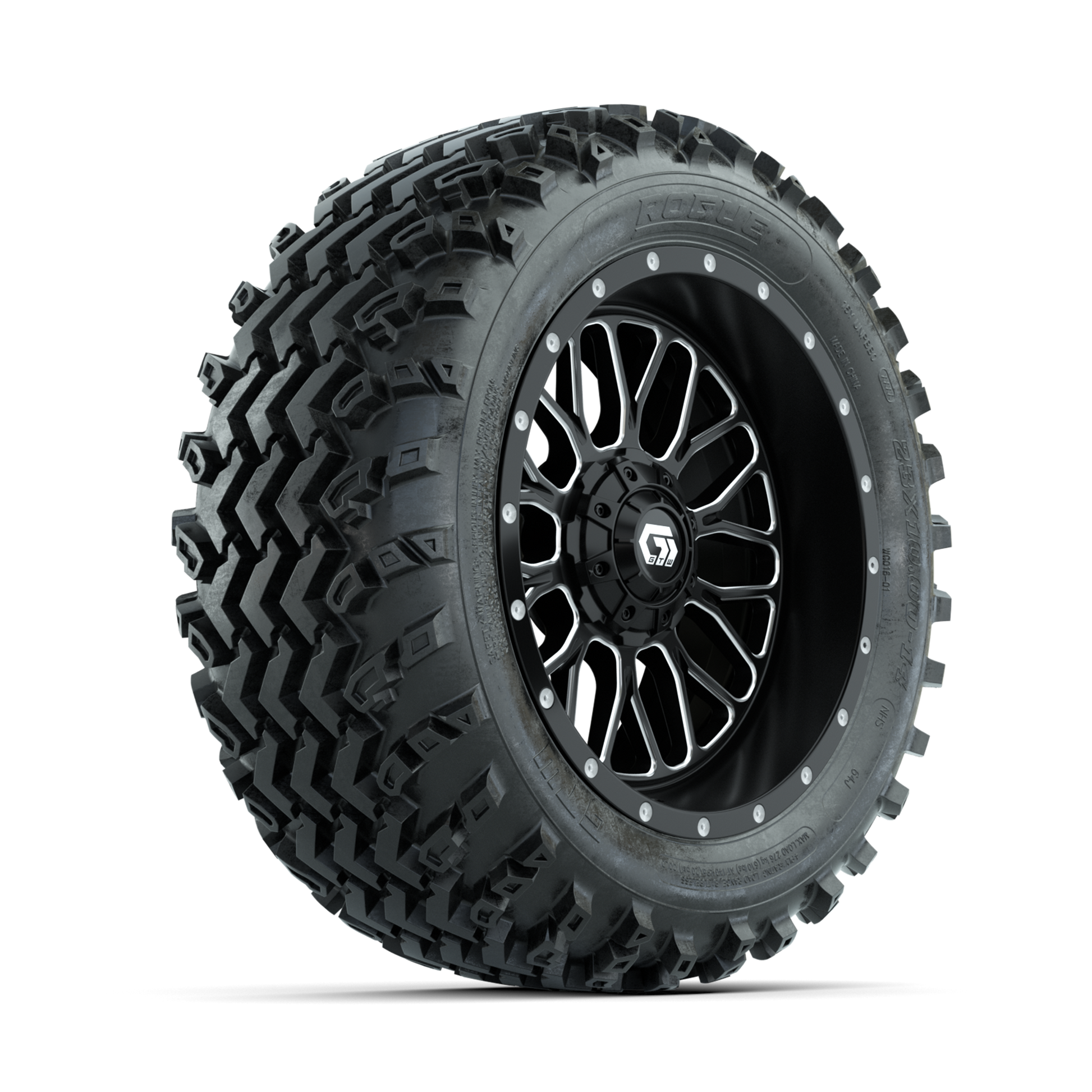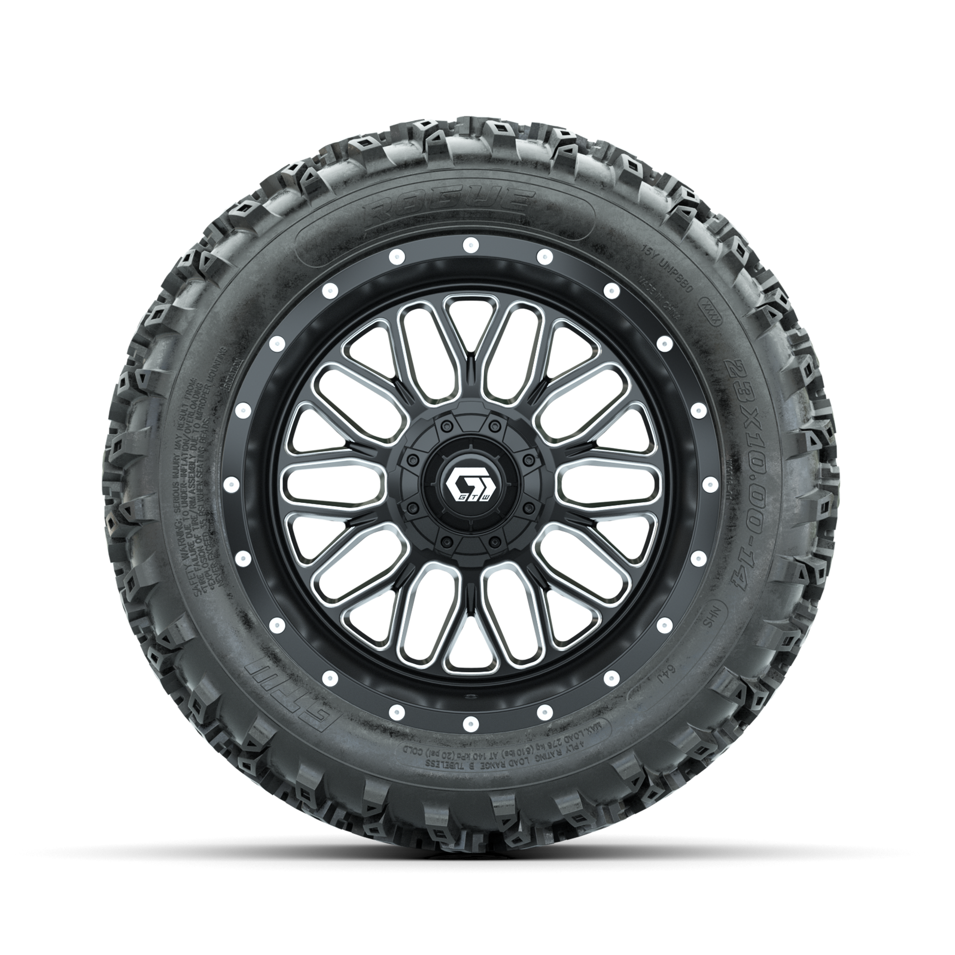 | Product Description: | A set of (4) 14-inch GTW-Helix Machined/Black golf cart wheels Mounted on 23x10.00-14 Rogue All-Terrain Tires Tread Classification: All-Terrain Full Tire & Wheel Combo Includes: (4) 14x7 GTW-Helix Wheels / Machined/Black finish / Offset: 3:4 (ET -.25) (4) 23x10.00-14 GTW Rogue All-Terrain Tires / Tire is approx. 23- tall (4-Ply) (4) Center caps Please Note: All Wheels are 4 on 4 Hole / Lug Pattern unless otherwise specified. Tech Tips: We Recommend a Minimum 3- Lift Kit for This Tire & Wheel Combo (Tire is approx. 23- OD) Please Check and Adjust PSI in Tires Before Operation (Recommended Inflation Can Be Found on Sidewall of Tire) Tire & Wheel Combos are mounted and Inflated Before Shipping, Free of Charge All Wheels Have a lug pattern of "4x101.6mm" Lug Nuts Sold Separately: Standard Chrome Lug Nuts #LUG4S Metric Chrome Lug Nuts #LUG4M (Yamaha Models) |