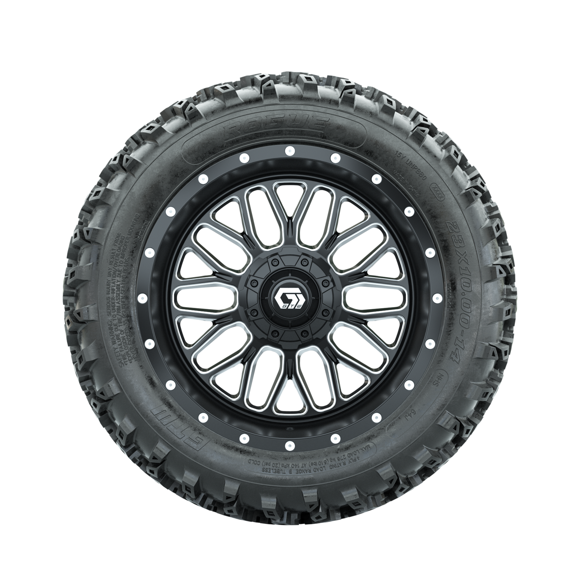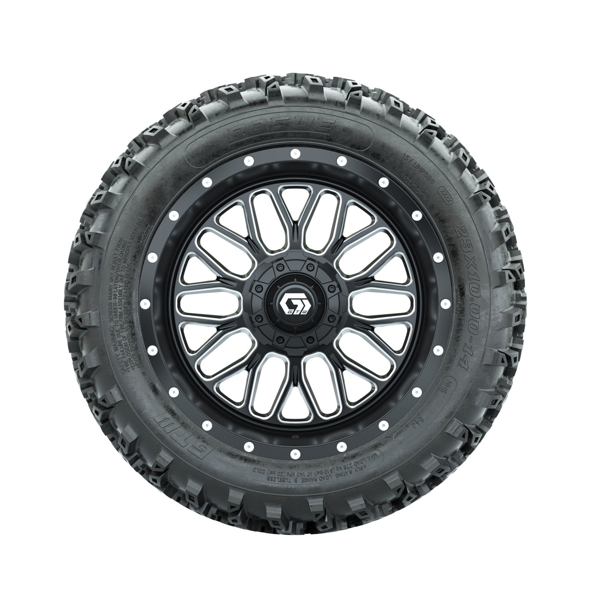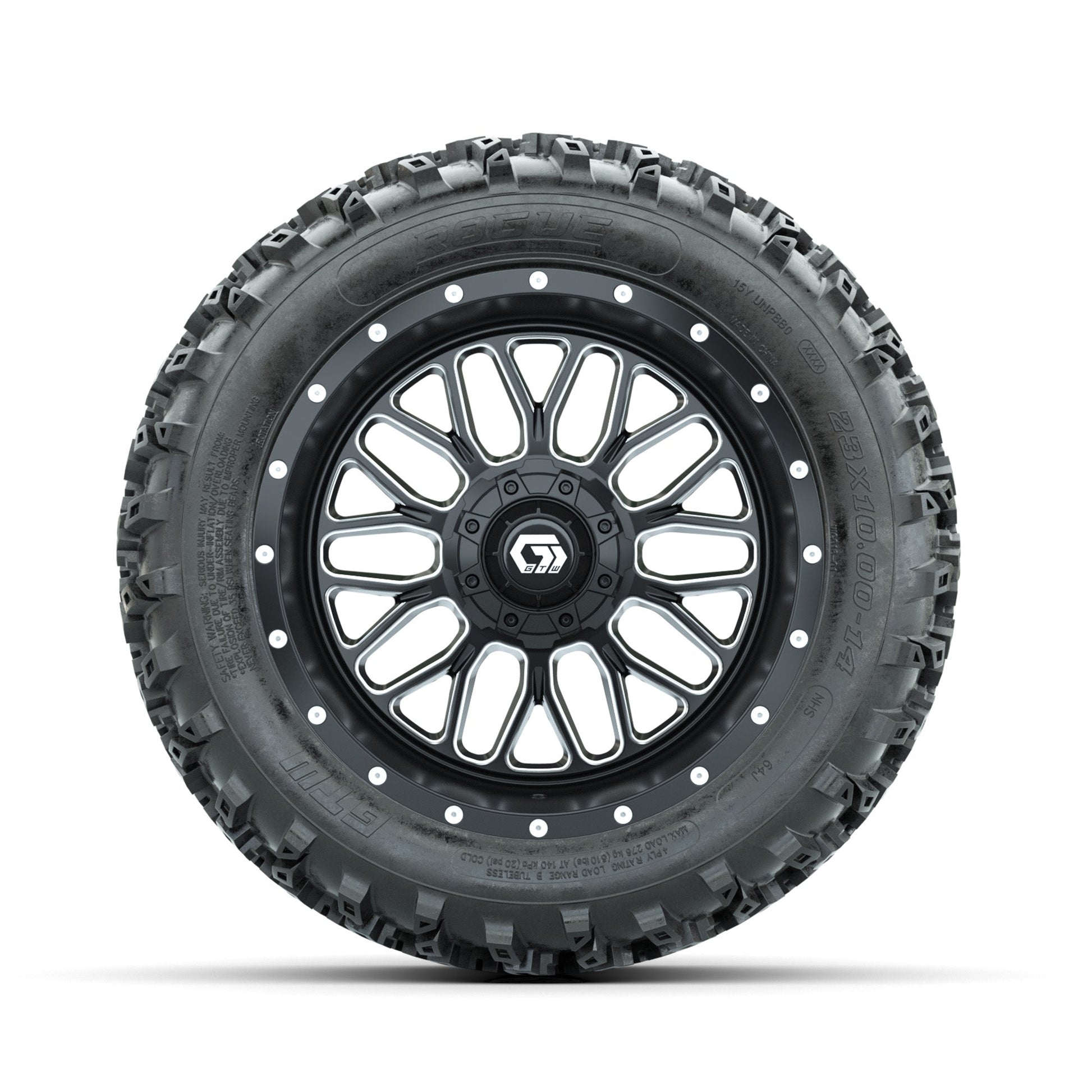 GTW Helix Machined/Black 14 in Wheels with 23x10.00-14 Rogue All Terrain Tires Full Set