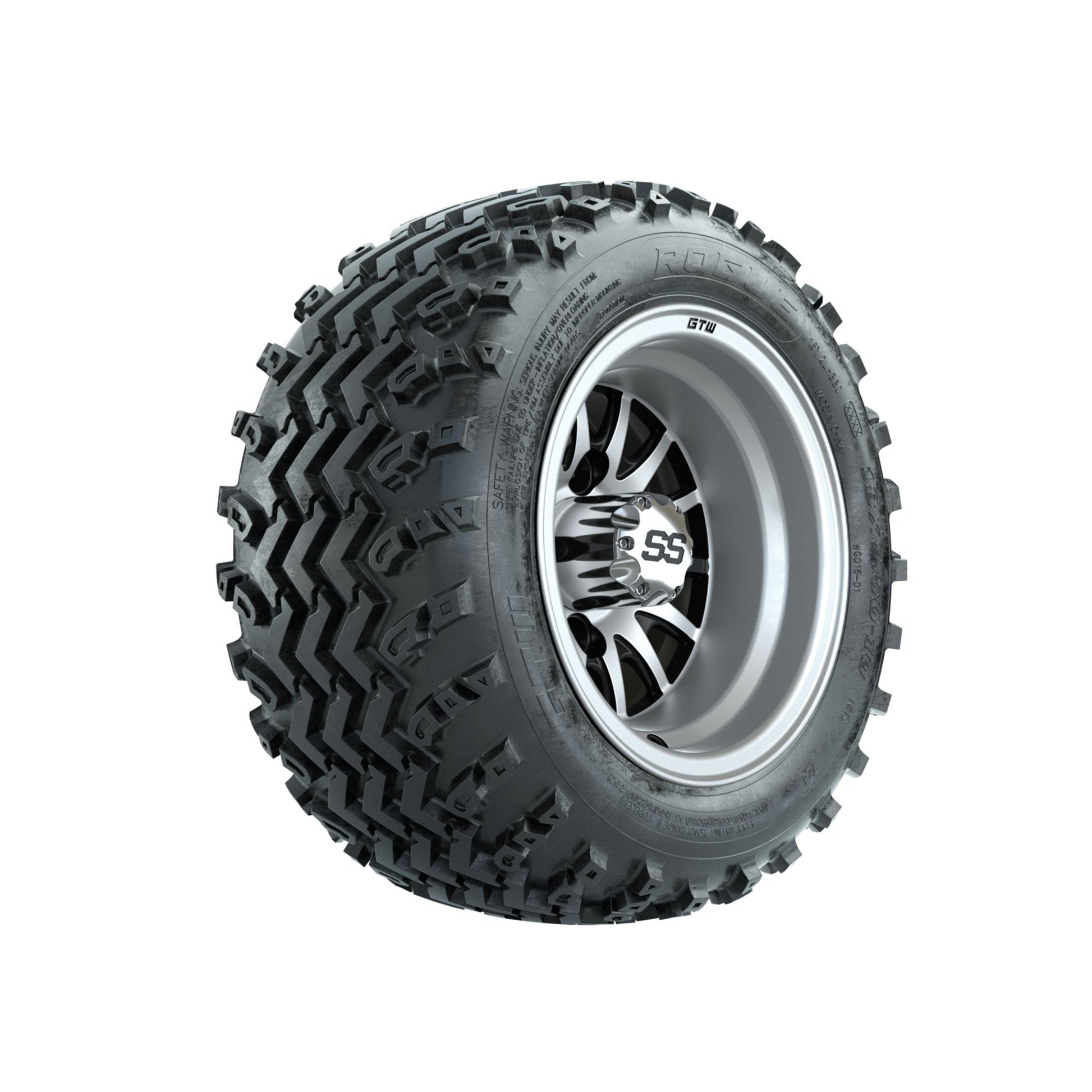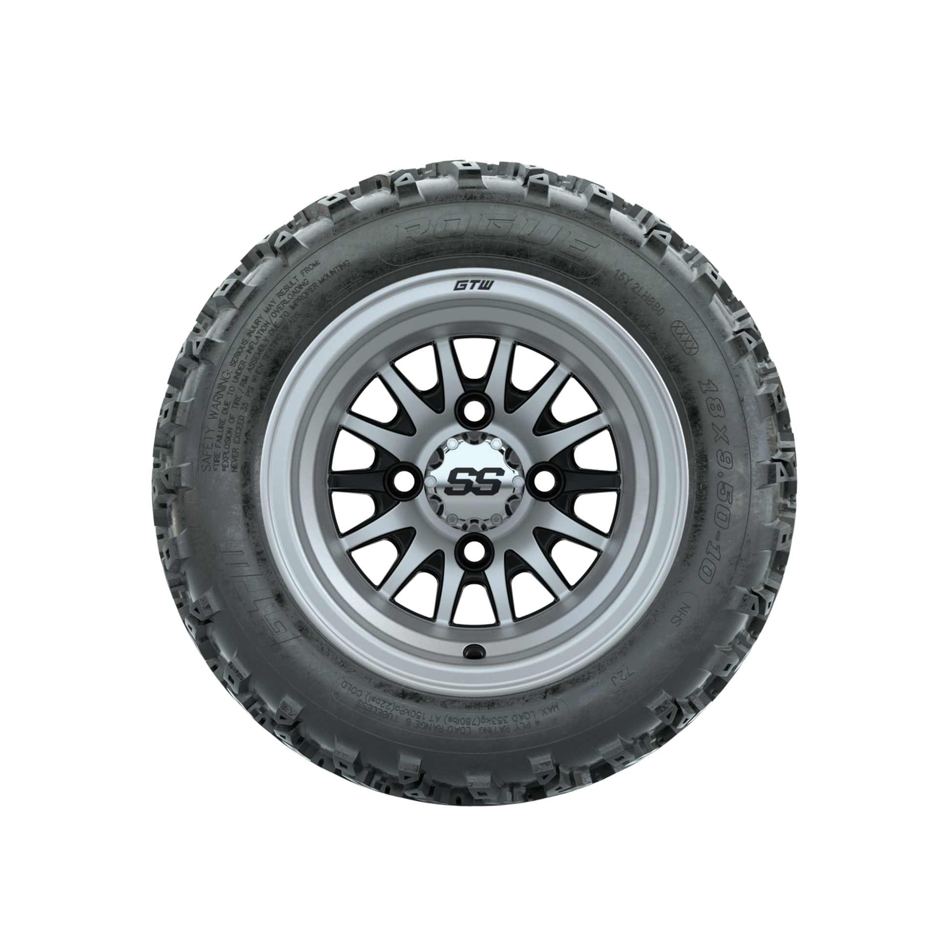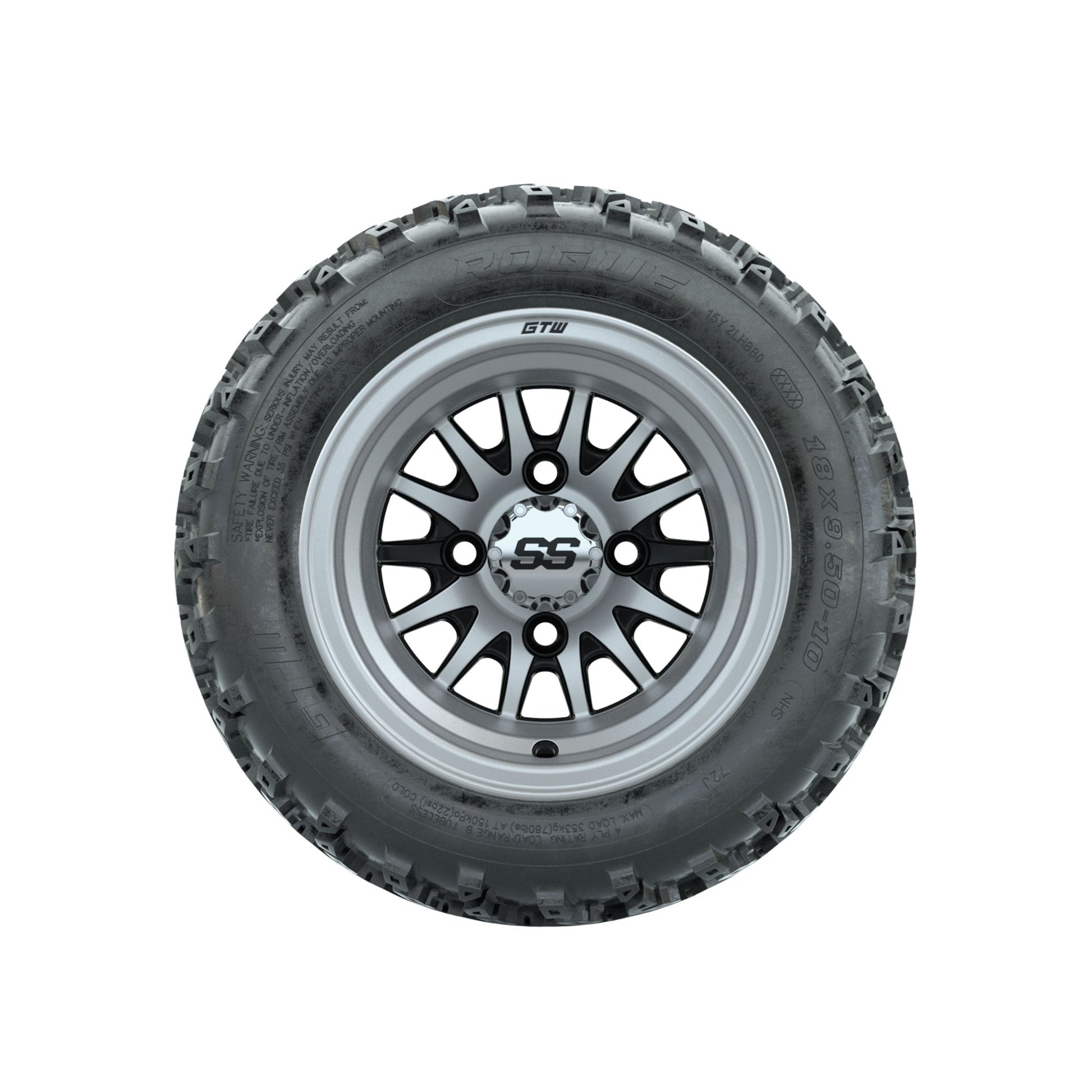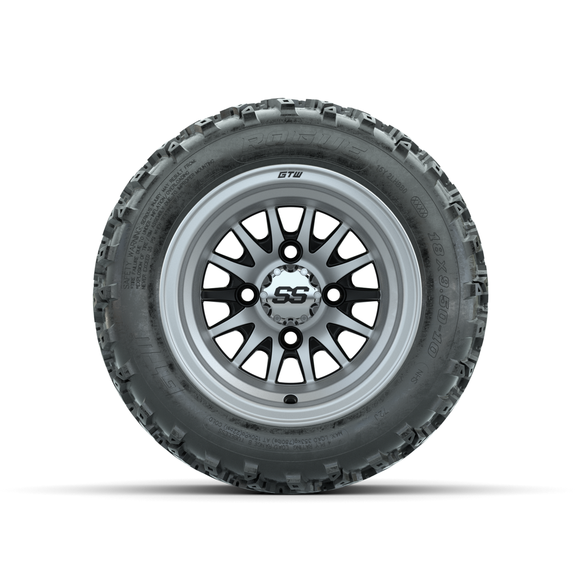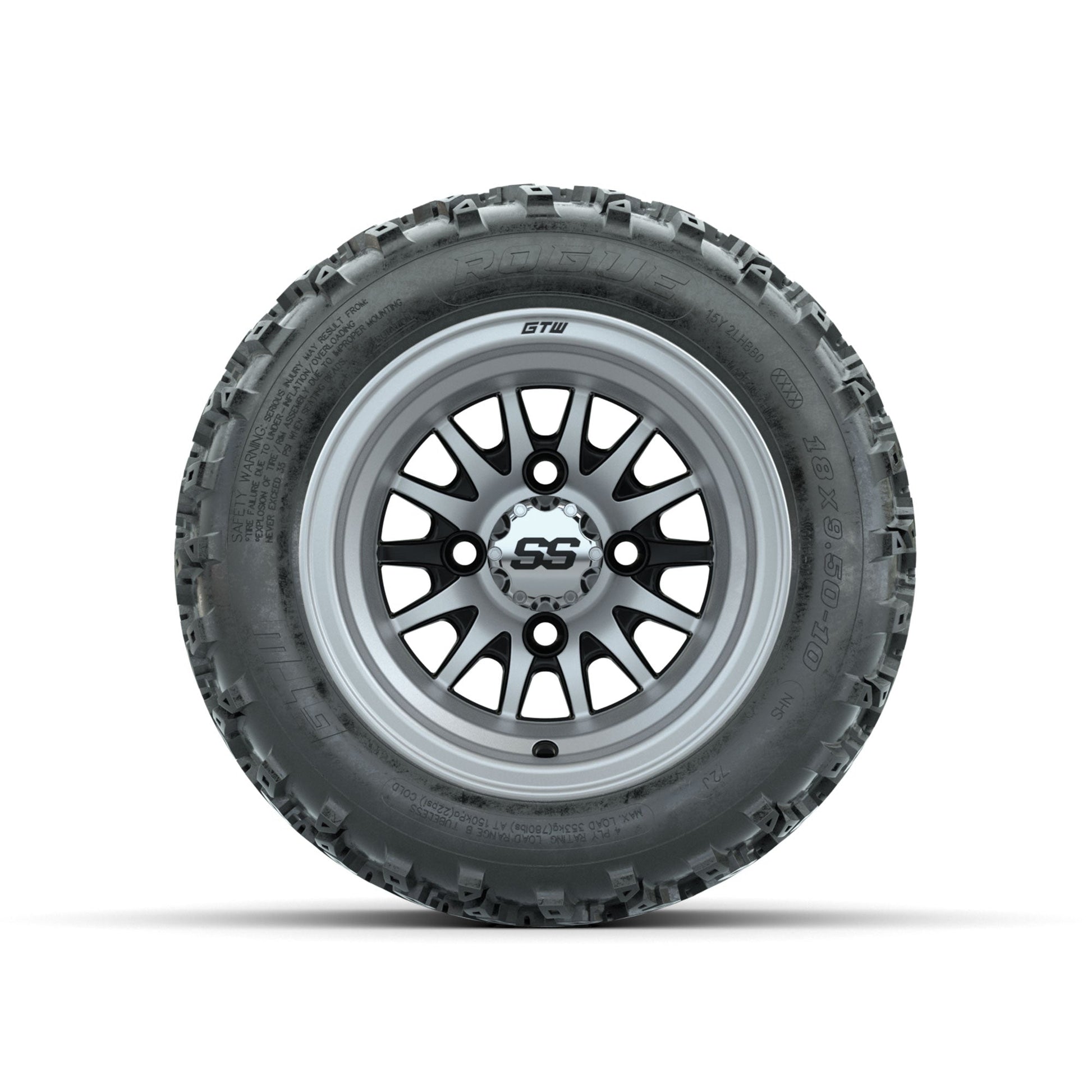 | Product Description: | A set of (4) 10-inch GTW-Medusa Machined/Black golf cart wheels Mounted on 18x9.50-10 Rogue All-Terrain Tires Tread Classification: All-Terrain Full Tire & Wheel Combo Includes: (4) 10x7 GTW-Medusa Wheels / Machined/Black finish / Offset: 3:4 (ET -.25) (4) 18x9.50-10 GTW Rogue All-Terrain Tires / Tire is approx. 18- tall (4-Ply) (4) Center caps Please Note: All Wheels are 4 on 4 Hole / Lug Pattern unless otherwise specified. Tech Tips: No Lift Kit Required for This Tire & Wheel Combo (Tire is approx. 18- OD) Please Check and Adjust PSI in Tires Before Operation (Recommended Inflation Can Be Found on Sidewall of Tire) Tire & Wheel Combos are mounted and Inflated Before Shipping, Free of Charge All Wheels Have a lug pattern of "4x101.6mm" Lug Nuts Sold Separately: Standard Chrome Lug Nuts #LUG4S Metric Chrome Lug Nuts #LUG4M (Yamaha Models) |
