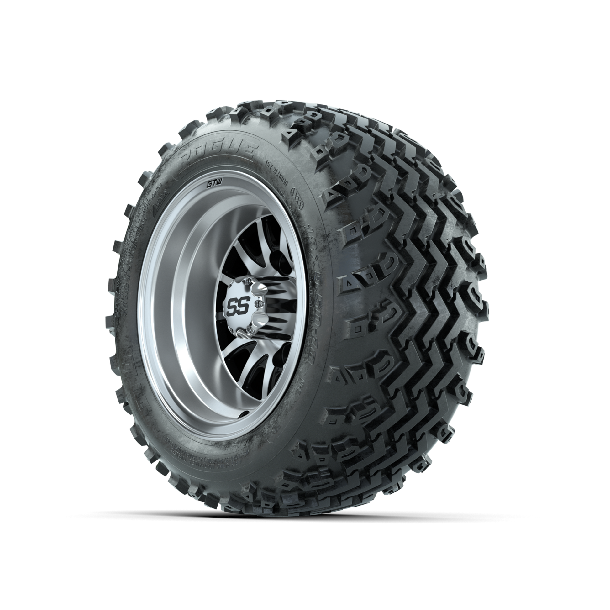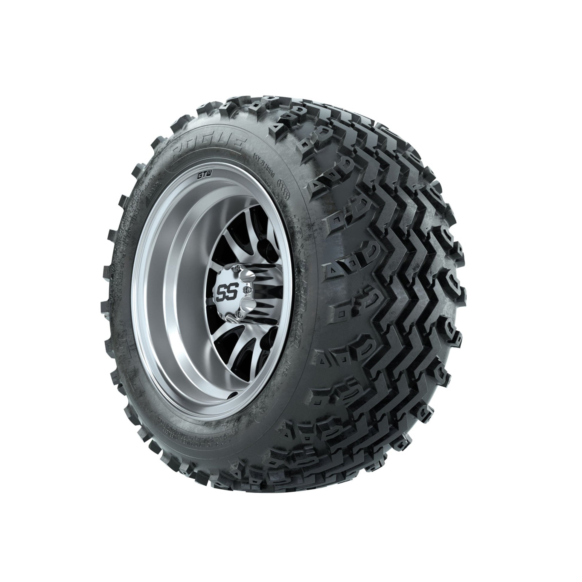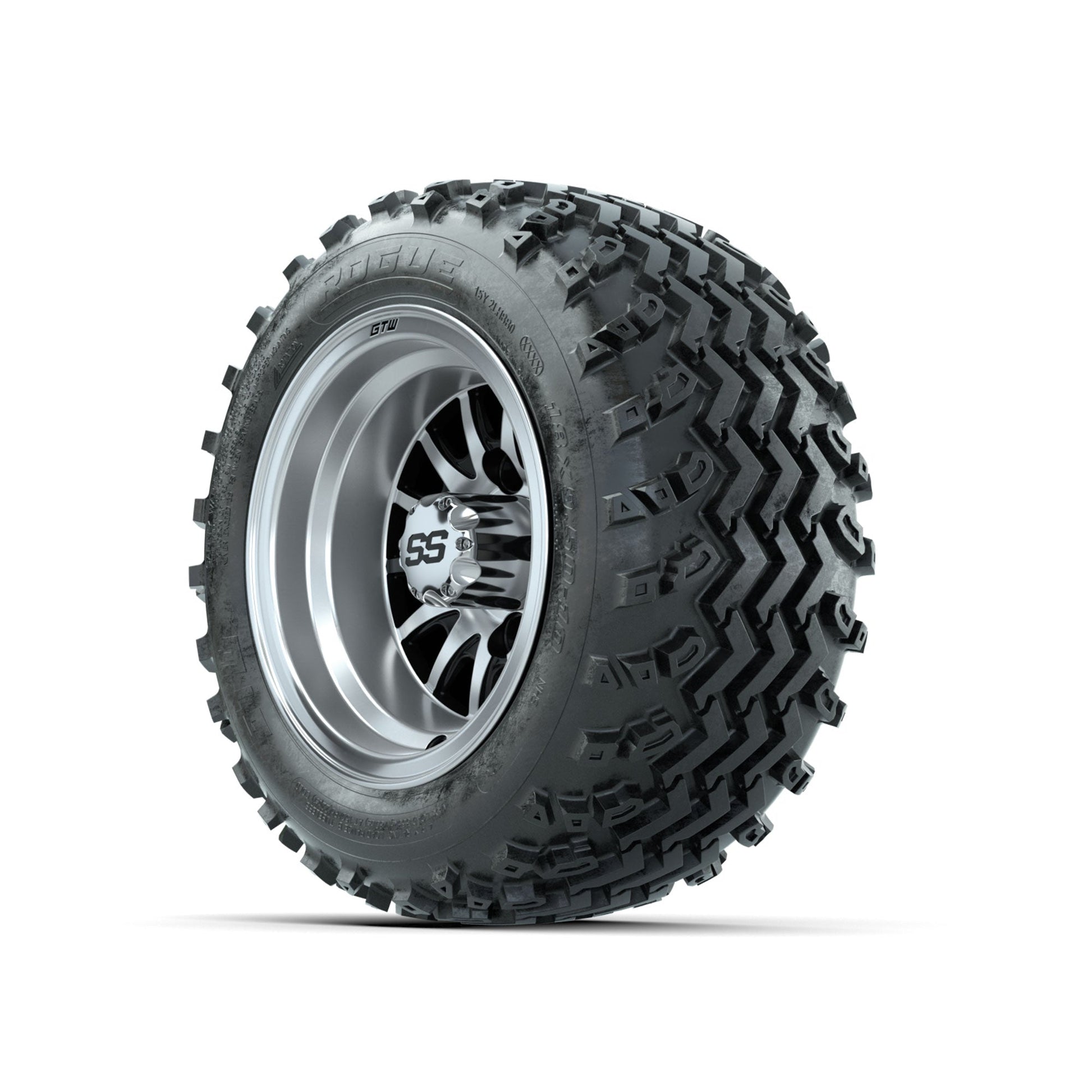 GTW Medusa Machined/Black 10 in Wheels with 18x9.50-10 Rogue All Terrain Tires Full Set