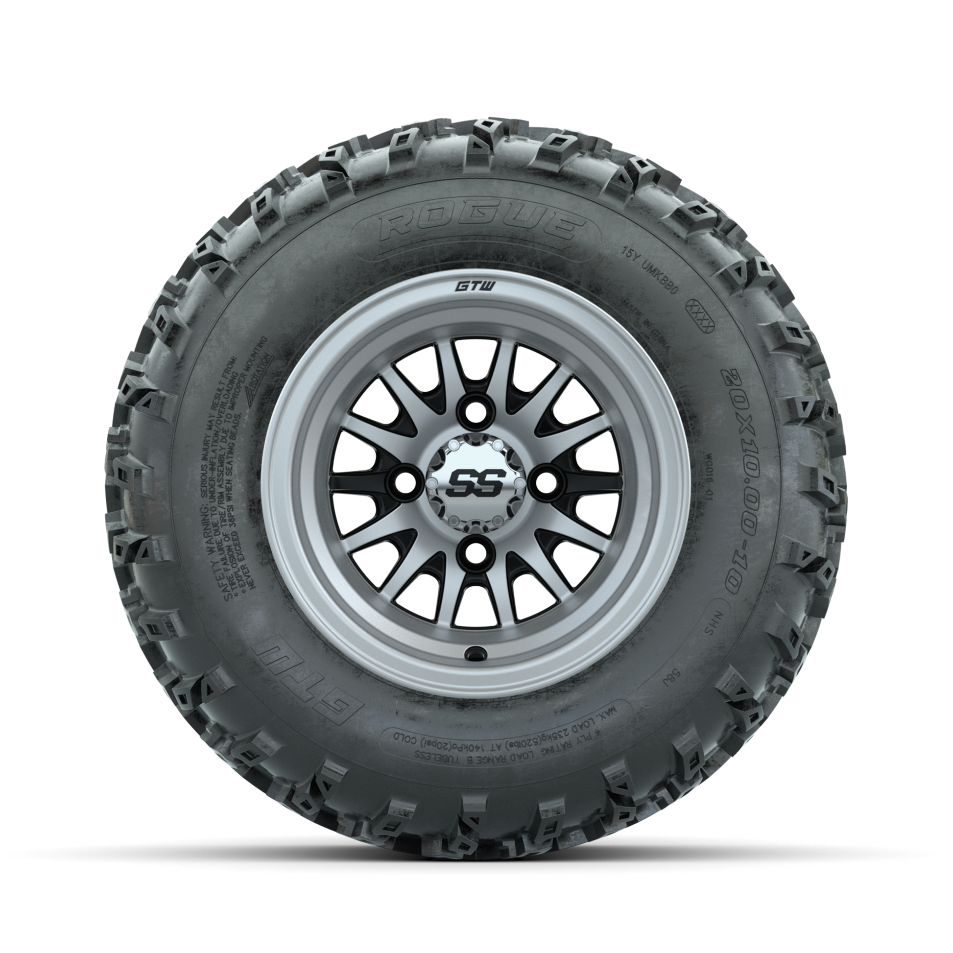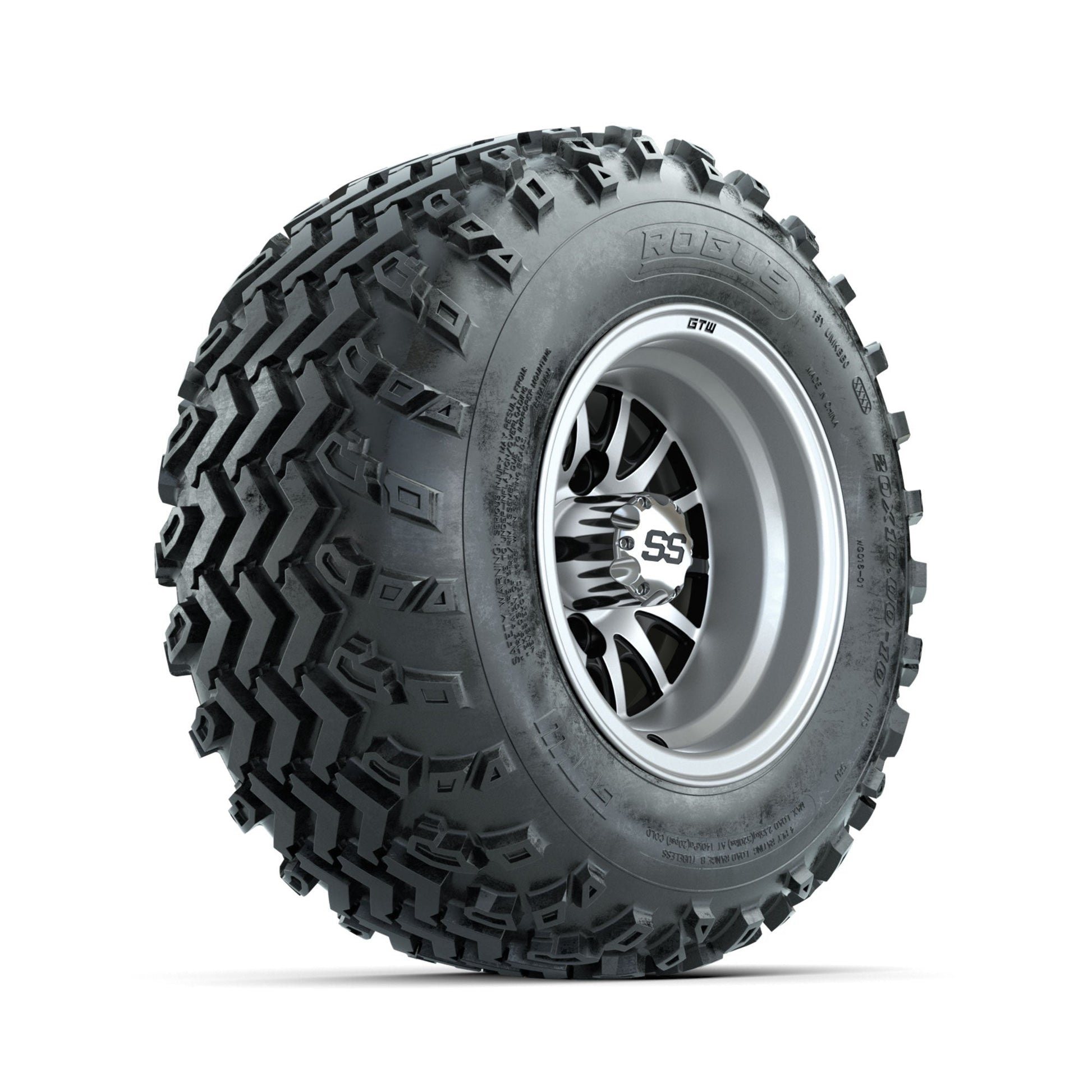 | Product Description: | A set of (4) 10-inch GTW-Medusa Machined/Black golf cart wheels Mounted on 20x10.00-10 Rogue All-Terrain Tires Tread Classification: All-Terrain Full Tire & Wheel Combo Includes: (4) 10x7 GTW-Medusa Wheels / Machined/Black finish / Offset: 3:4 (ET -.25) (4) 20x10.00-10 GTW Rogue All-Terrain Tires / Tire is approx. 20- tall (4-Ply) (4) Center caps Please Note: All Wheels are 4 on 4 Hole / Lug Pattern unless otherwise specified. Tech Tips: We Recommend a Minimum 3- Lift Kit for This Tire & Wheel Combo (Tire is approx. 20- OD) Please Check and Adjust PSI in Tires Before Operation (Recommended Inflation Can Be Found on Sidewall of Tire) Tire & Wheel Combos are mounted and Inflated Before Shipping, Free of Charge All Wheels Have a lug pattern of "4x101.6mm" Lug Nuts Sold Separately: Standard Chrome Lug Nuts #LUG4S Metric Chrome Lug Nuts #LUG4M (Yamaha Models) |