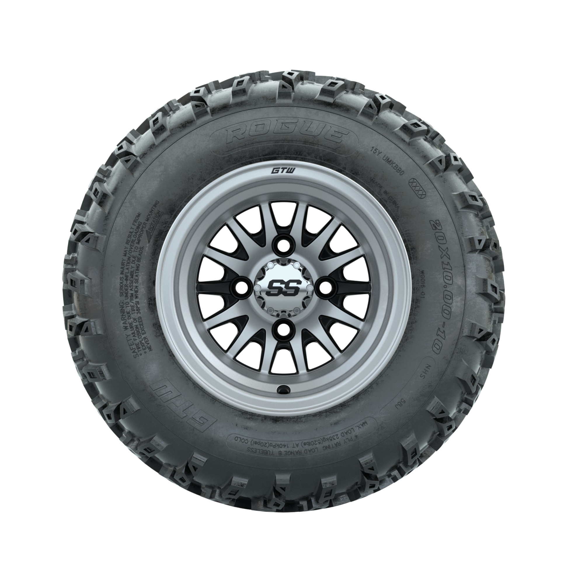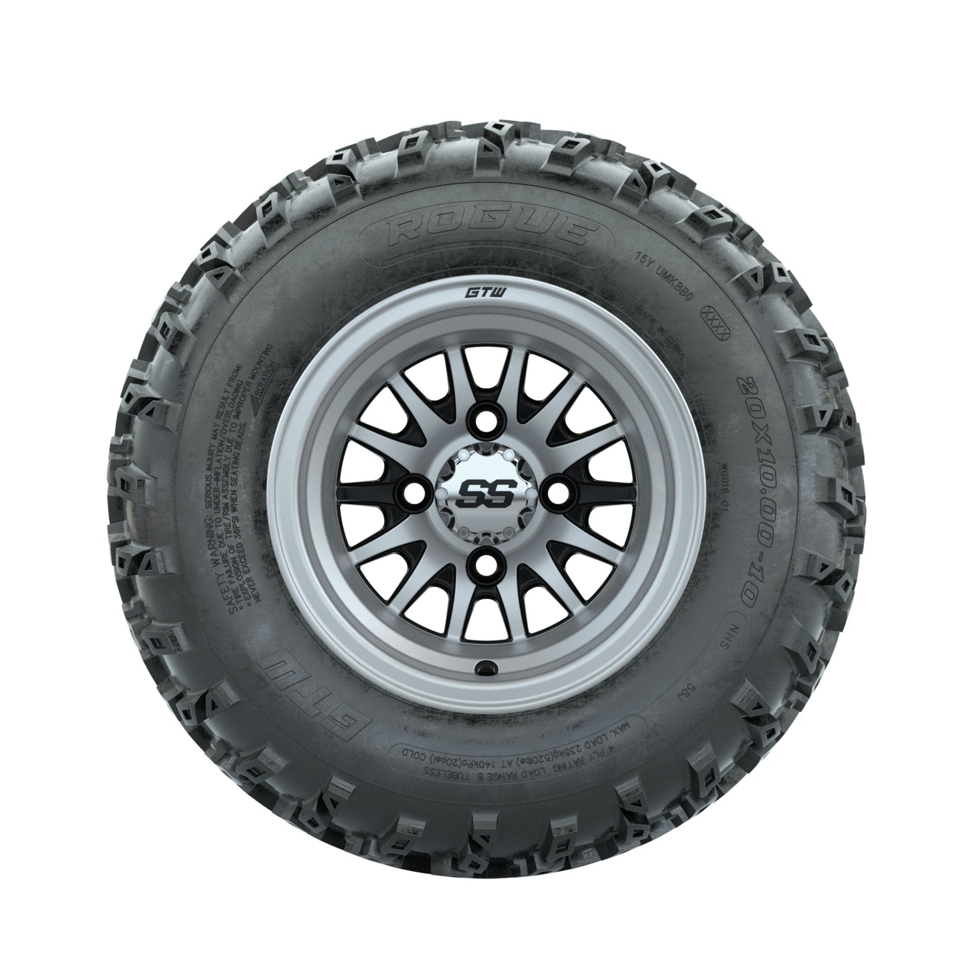 GTW Medusa Machined/Black 10 in Wheels with 20x10.00-10 Rogue All Terrain Tires Full Set