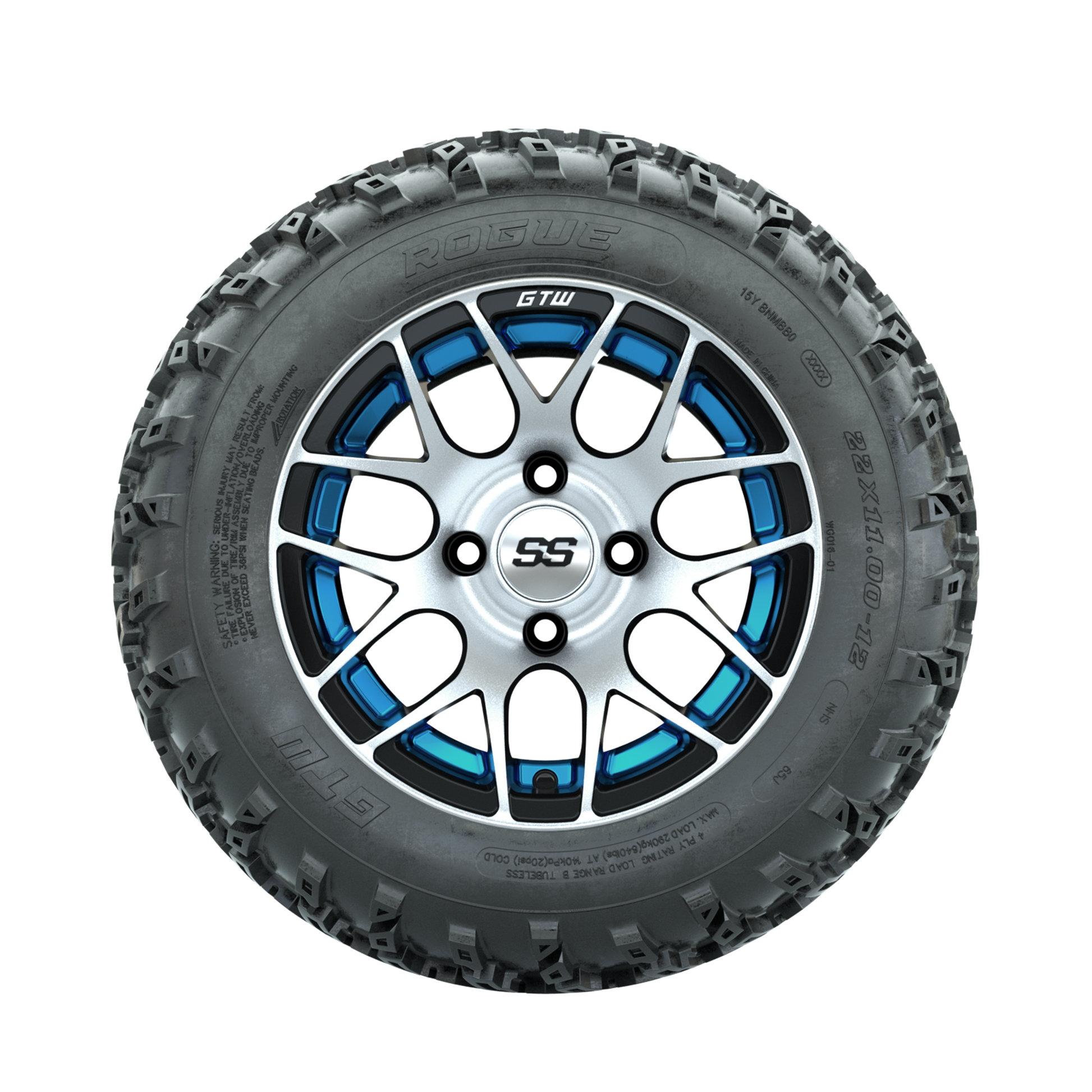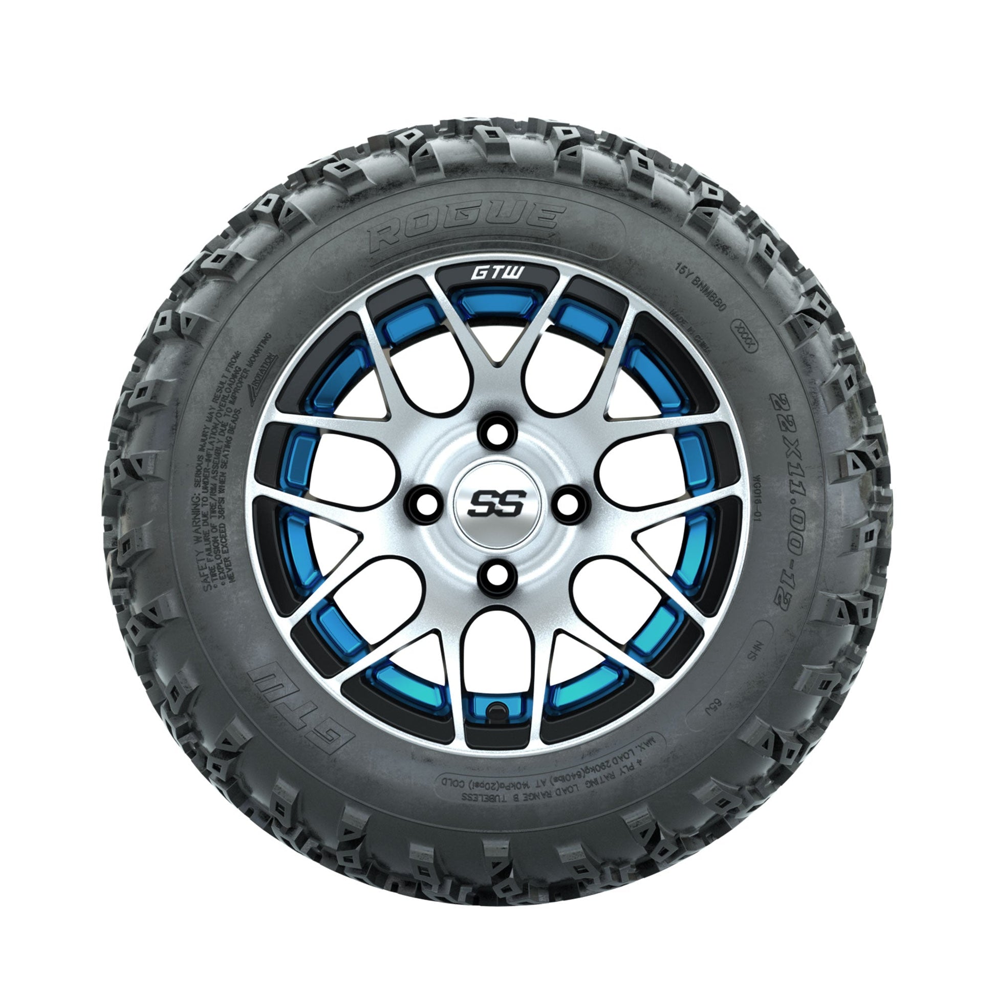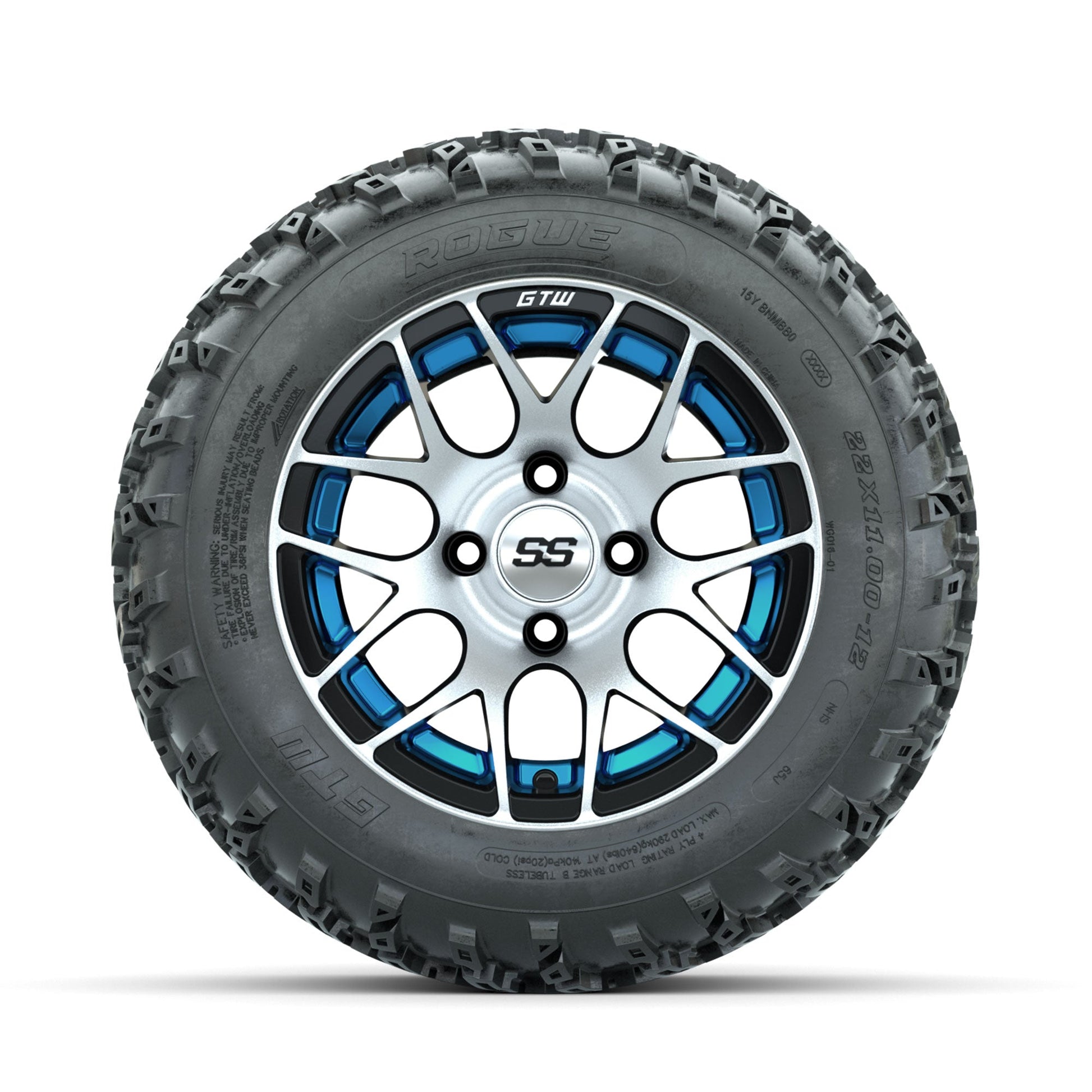 GTW Pursuit Blue 12 in Wheels with 22x11.00-12 Rogue All Terrain Tires Full Set