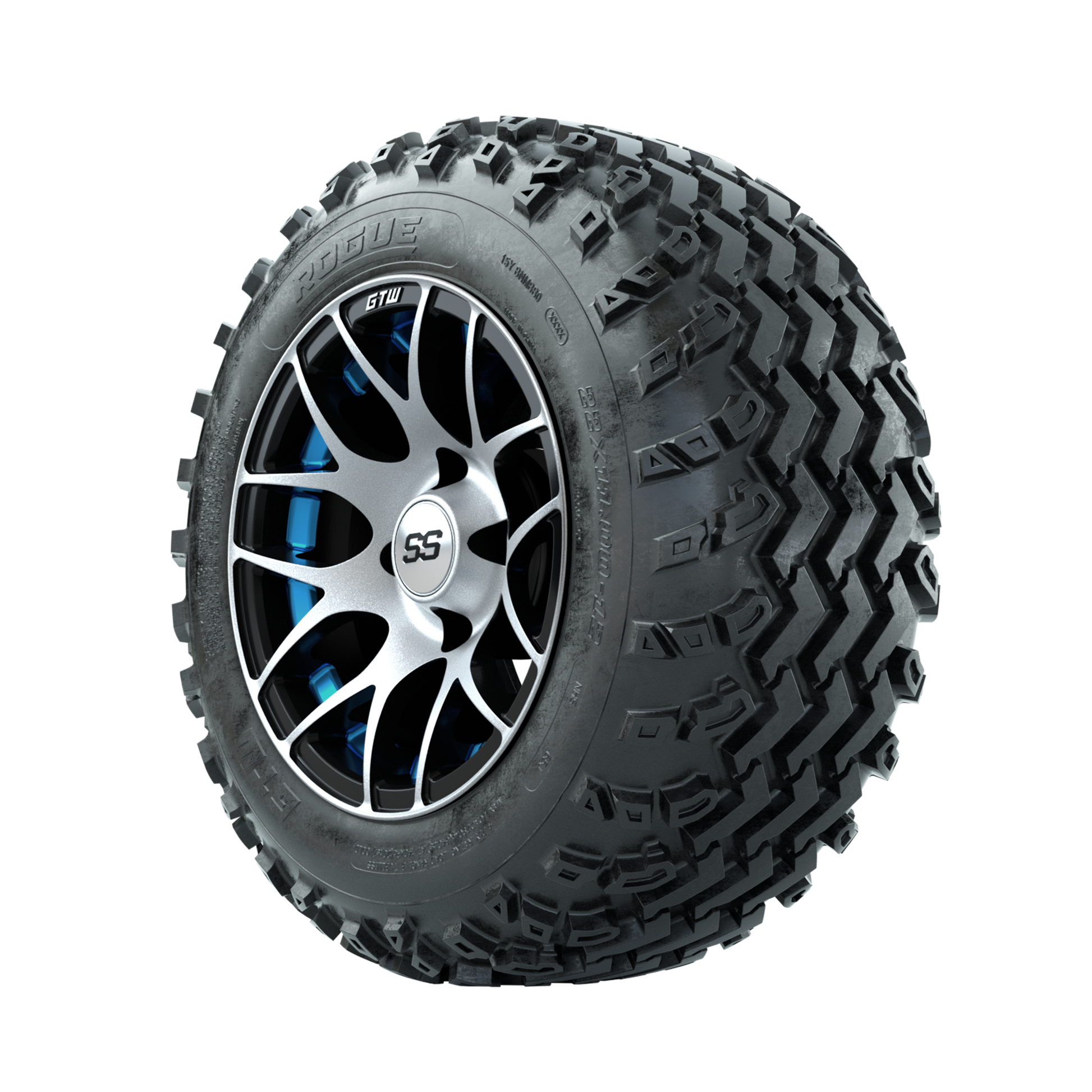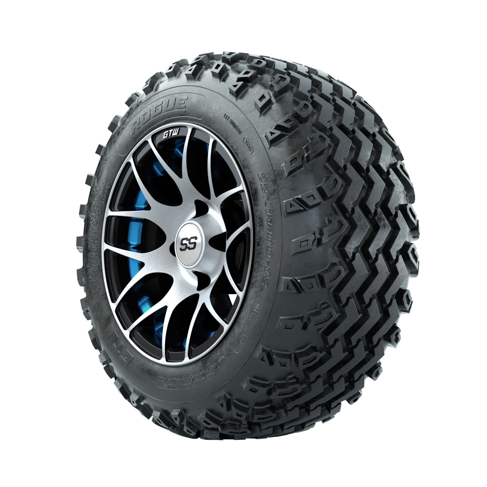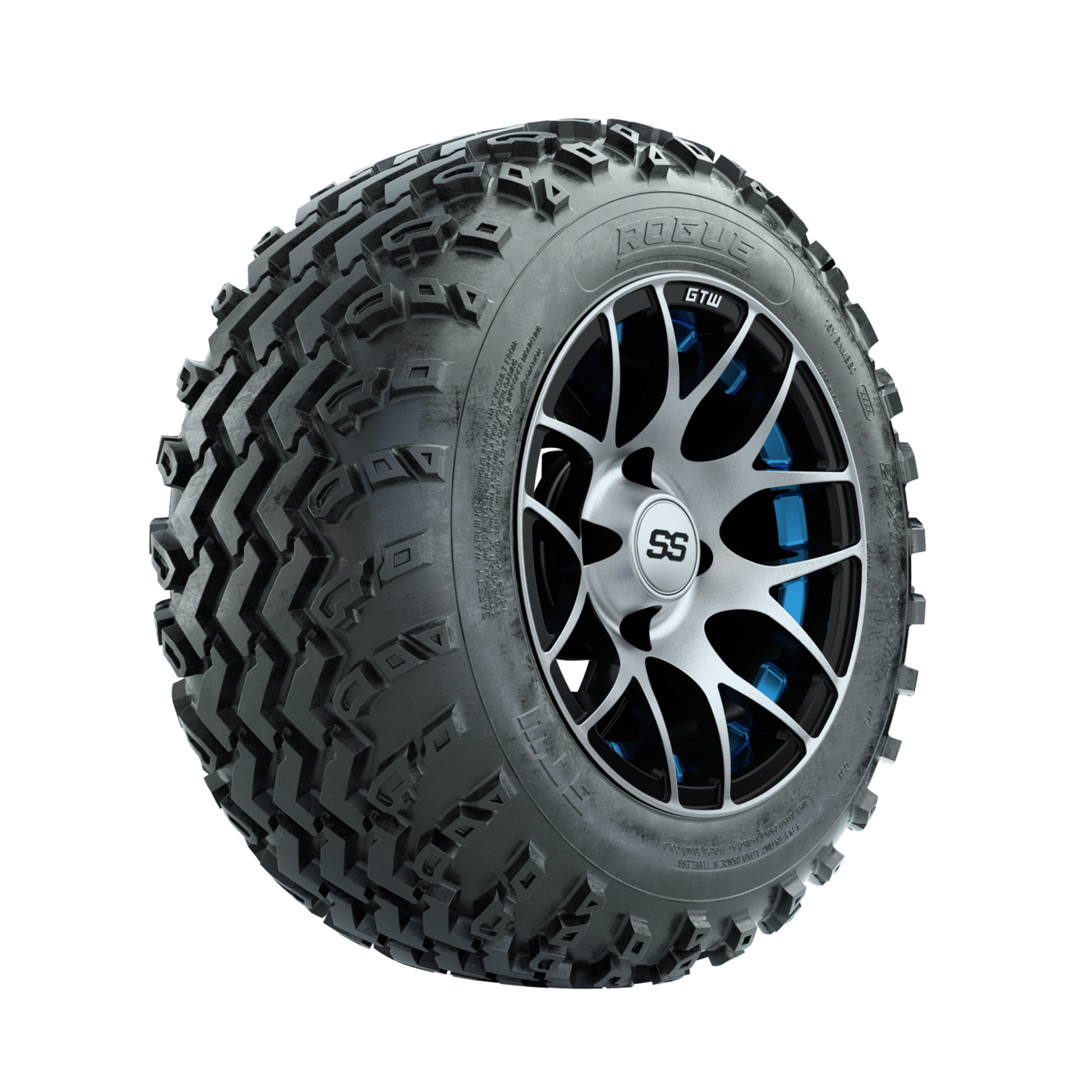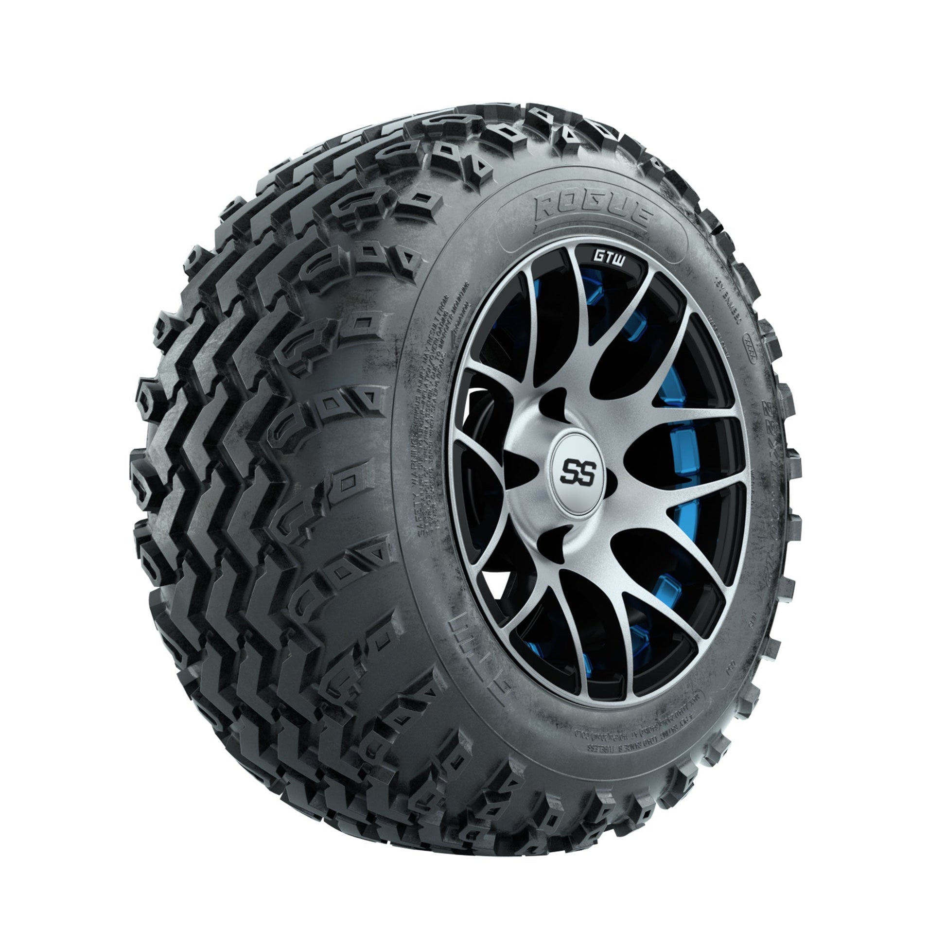 GTW Pursuit Blue 12 in Wheels with 22x11.00-12 Rogue All Terrain Tires Full Set