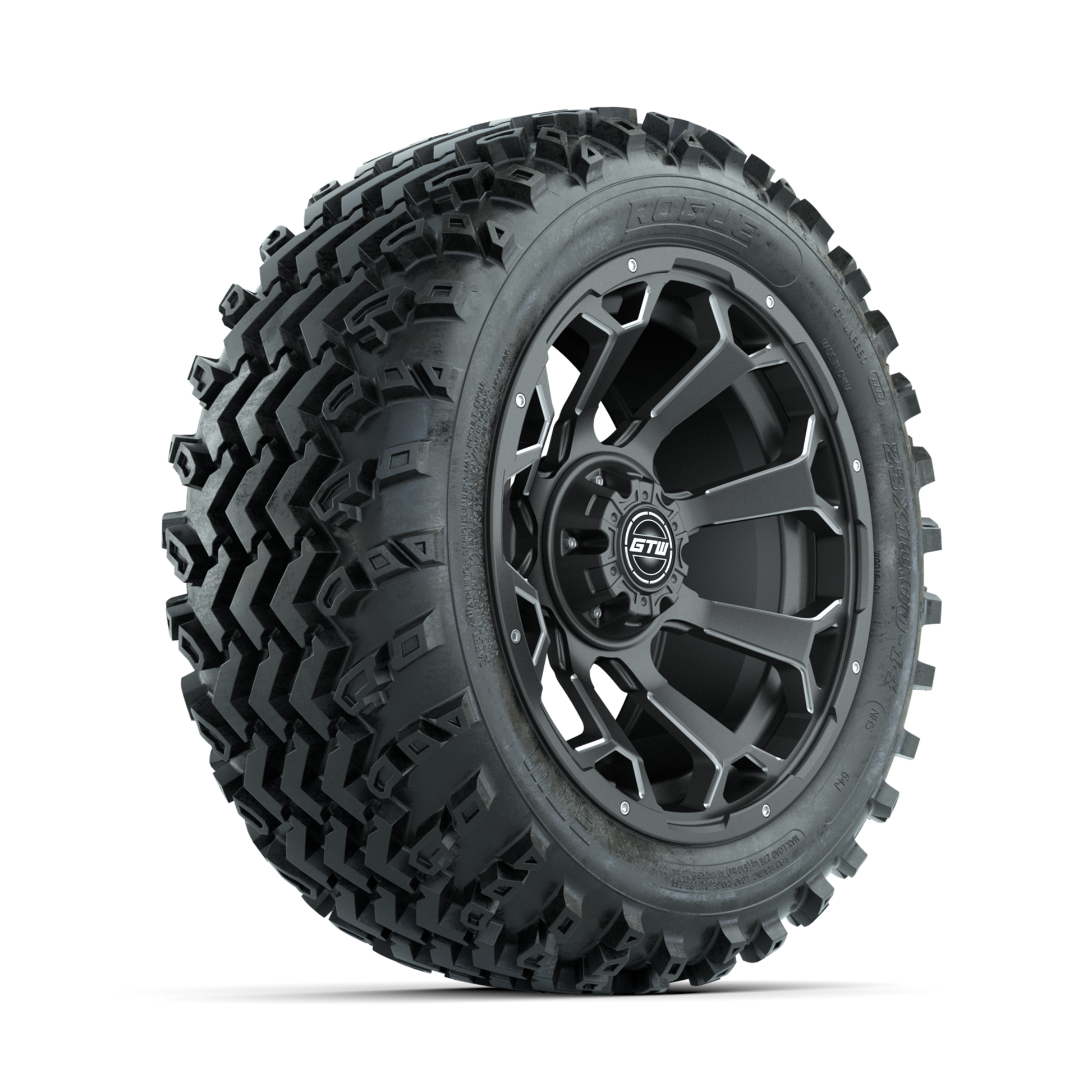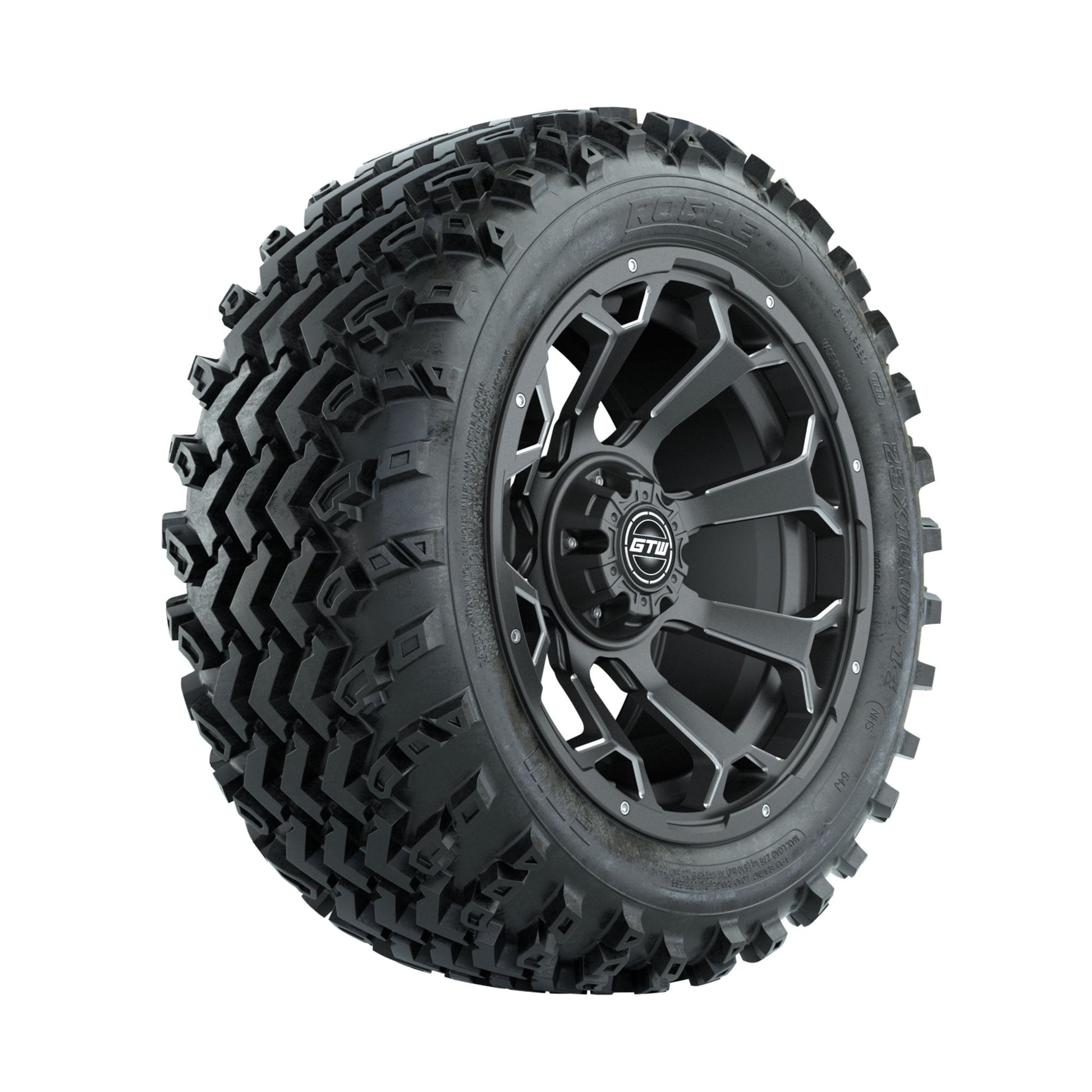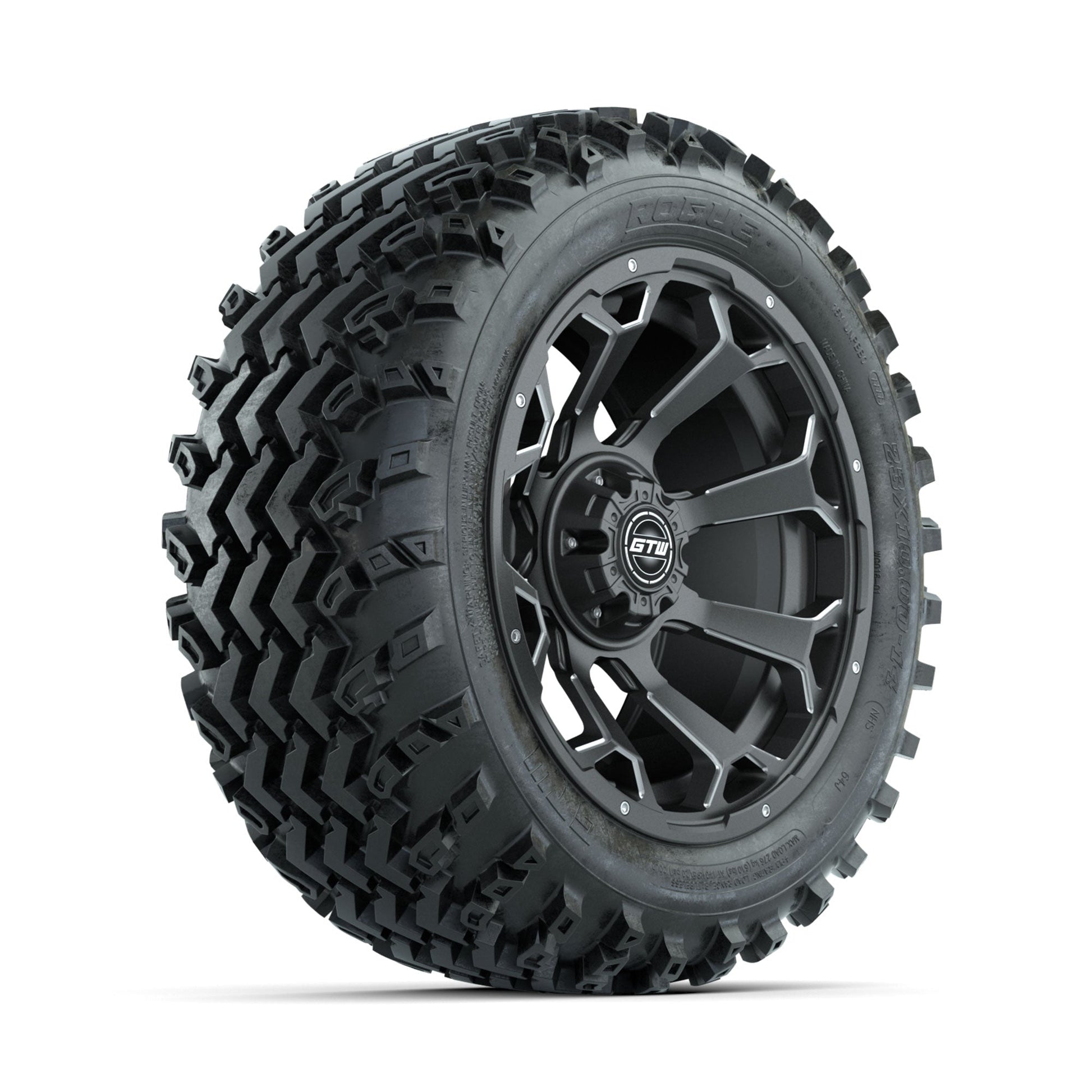 GTW Raven Ball Milled/Matte Grey 14 in Wheels with 23x10.00-14 Rogue All Terrain Tires Full Set