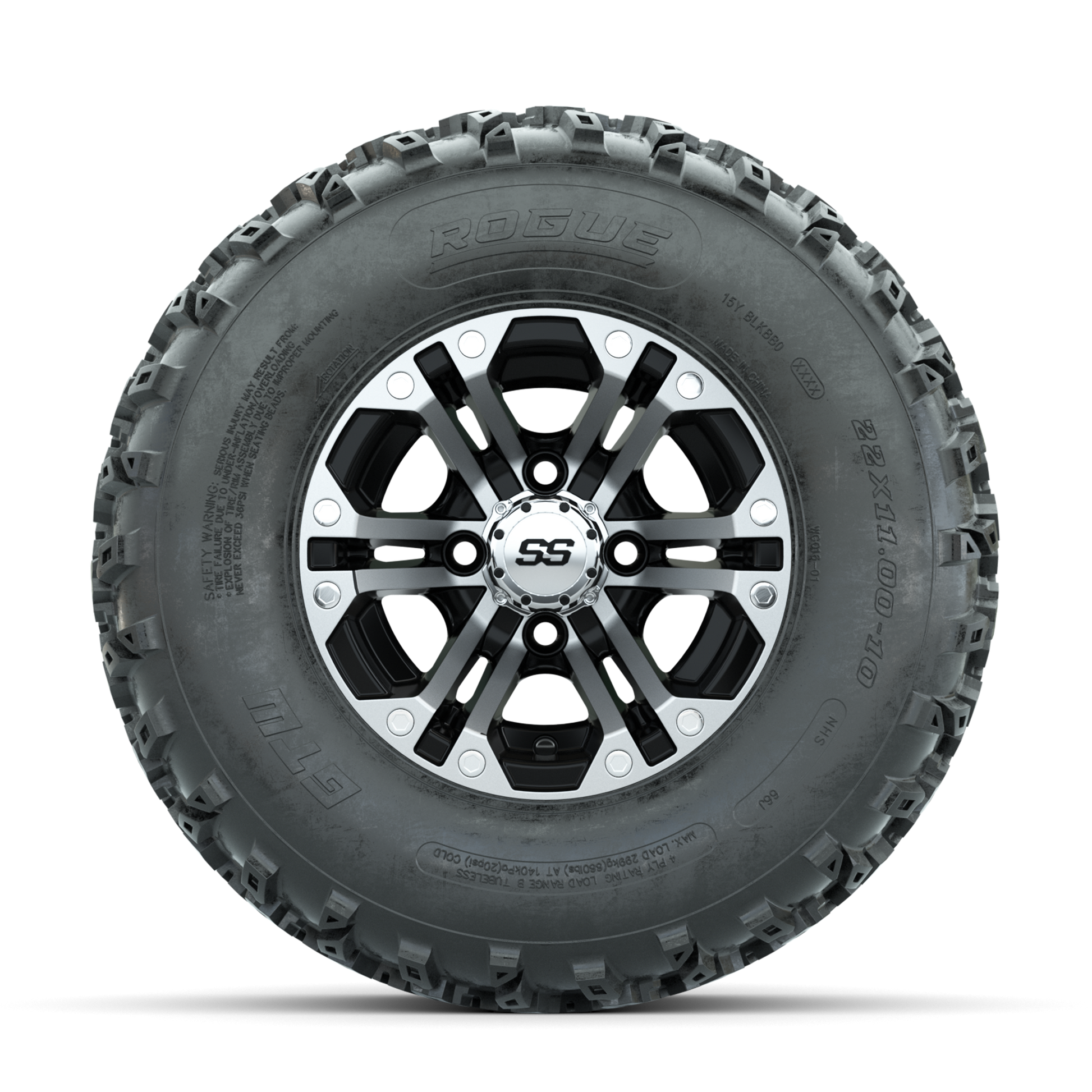 GTW Specter Machined/Black 10 in Wheels with 22x11.00-10 Rogue All Terrain Tires Full Set