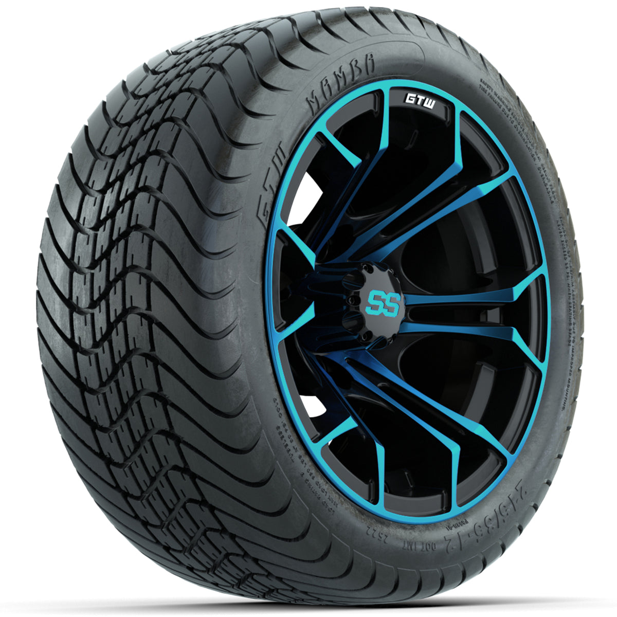 GTW Spyder Blue/Black 12 in Wheels with 215/35-12 GTW Mamba Street Tires Full Set