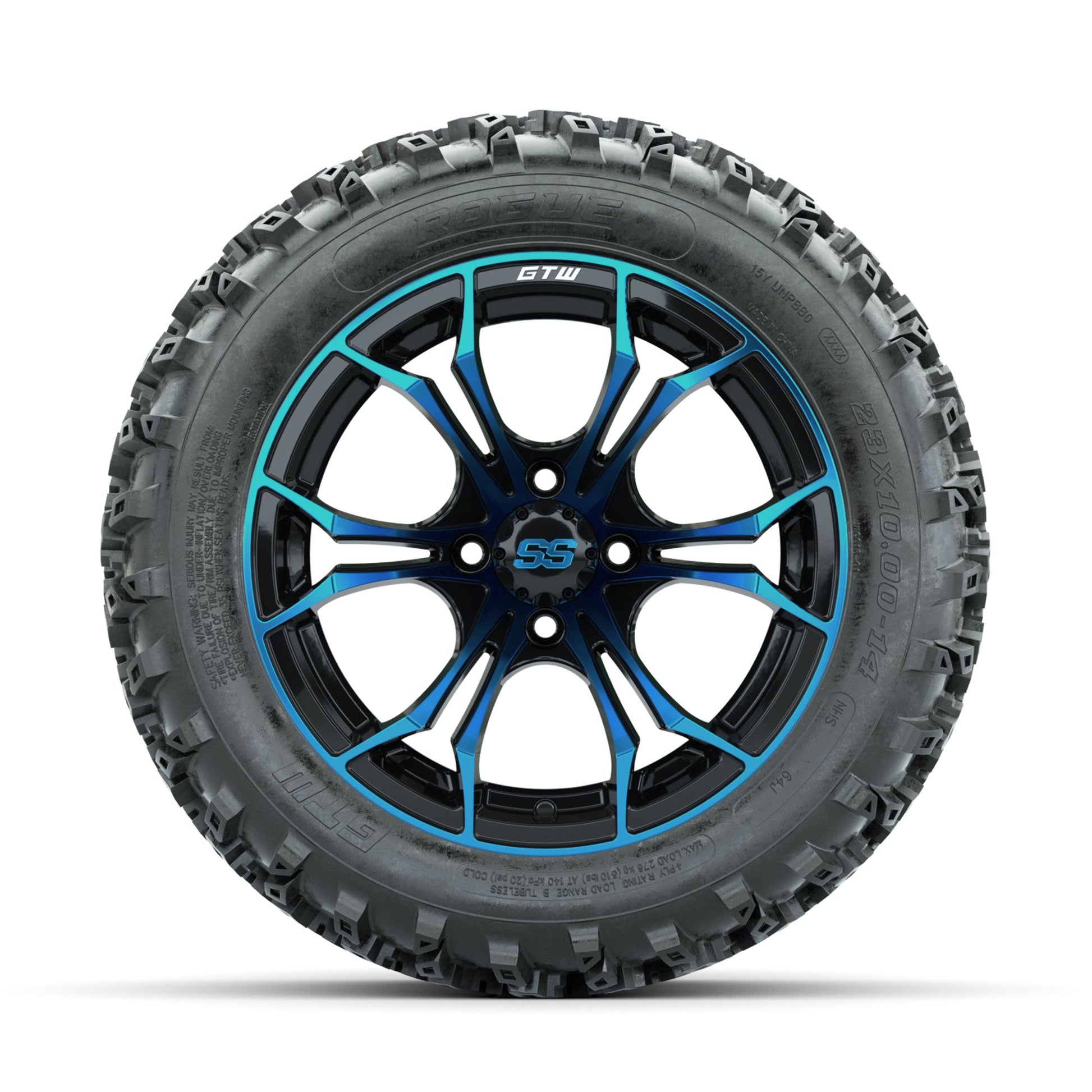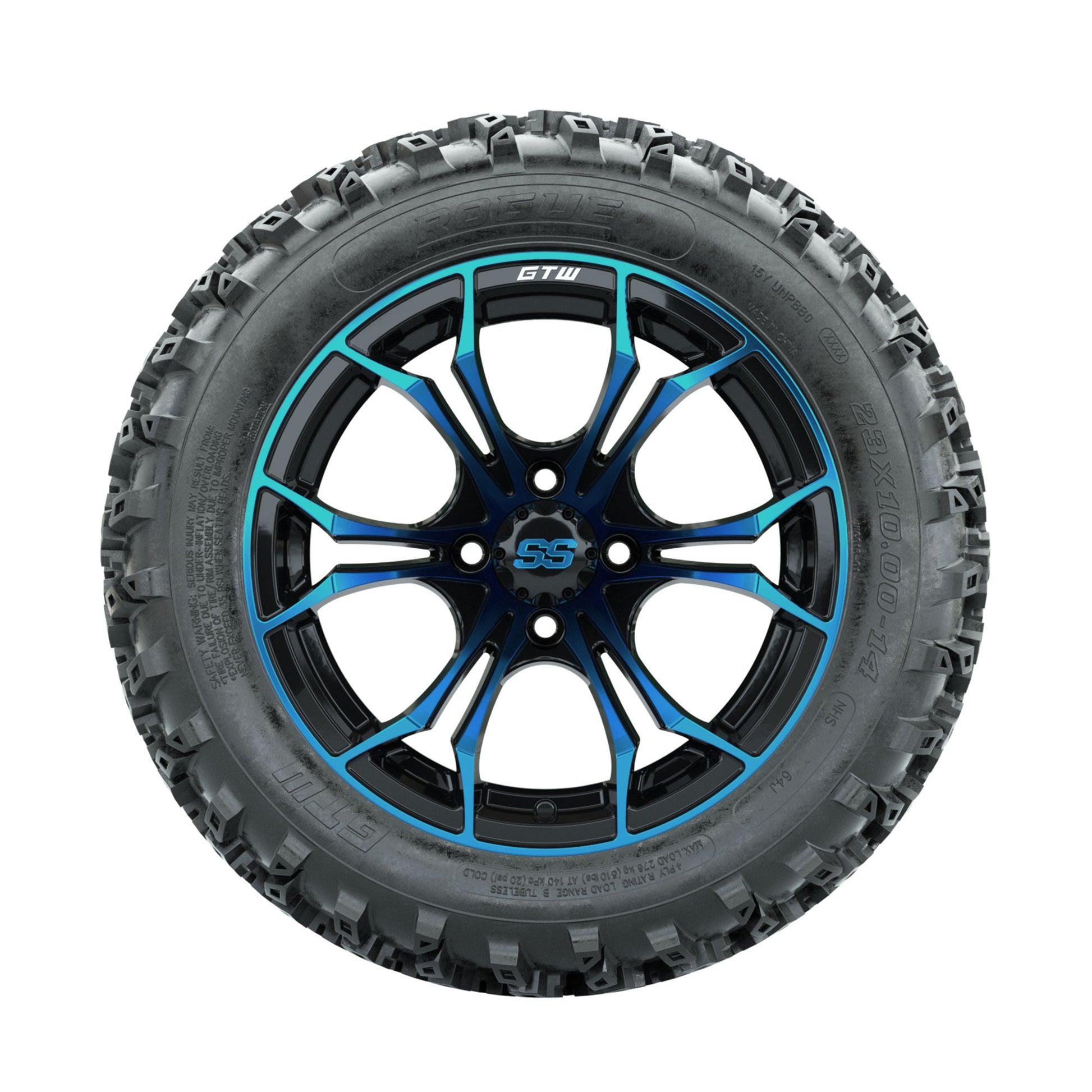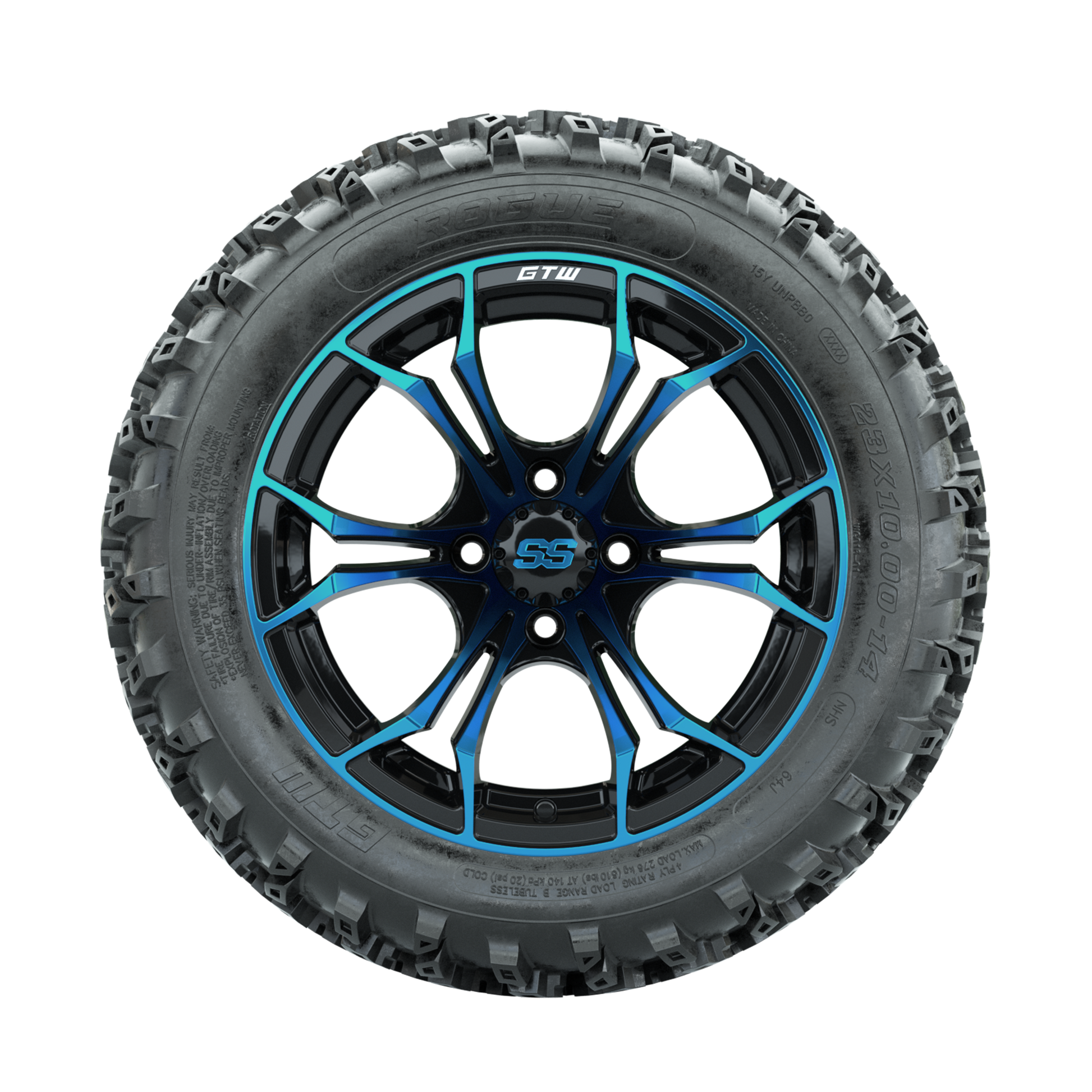 GTW Spyder Blue/Black 14 in Wheels with 23x10.00-14 Rogue All Terrain Tires Full Set
