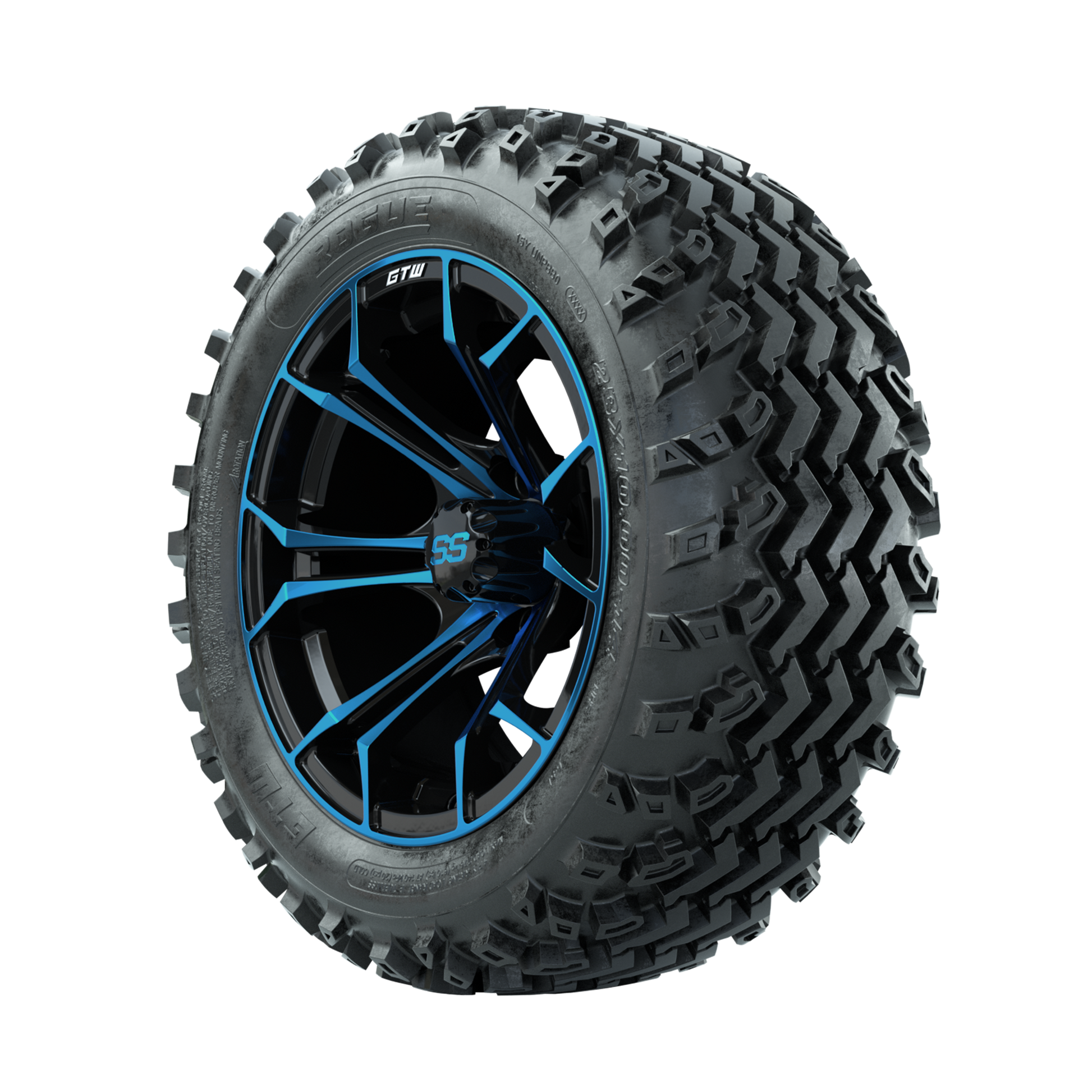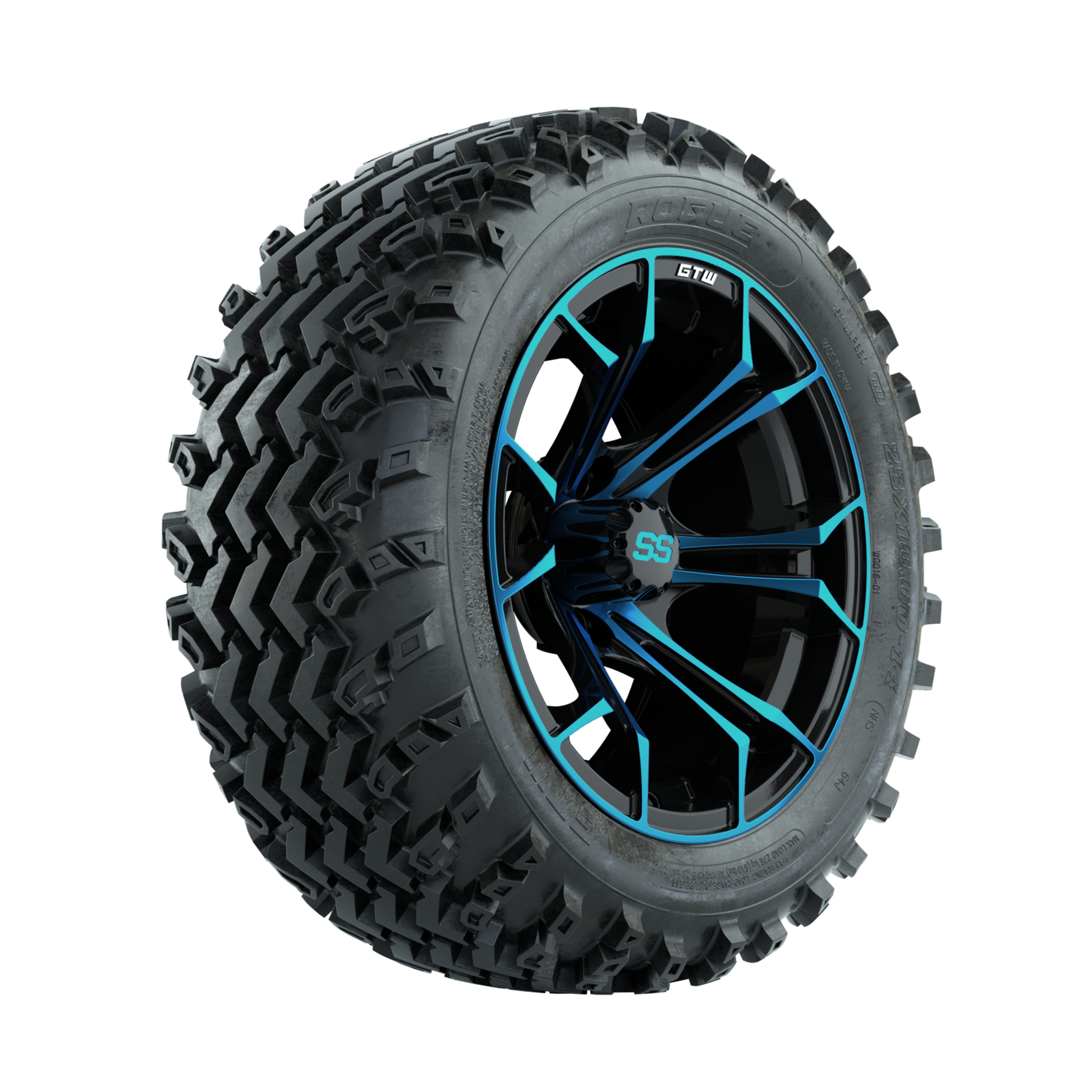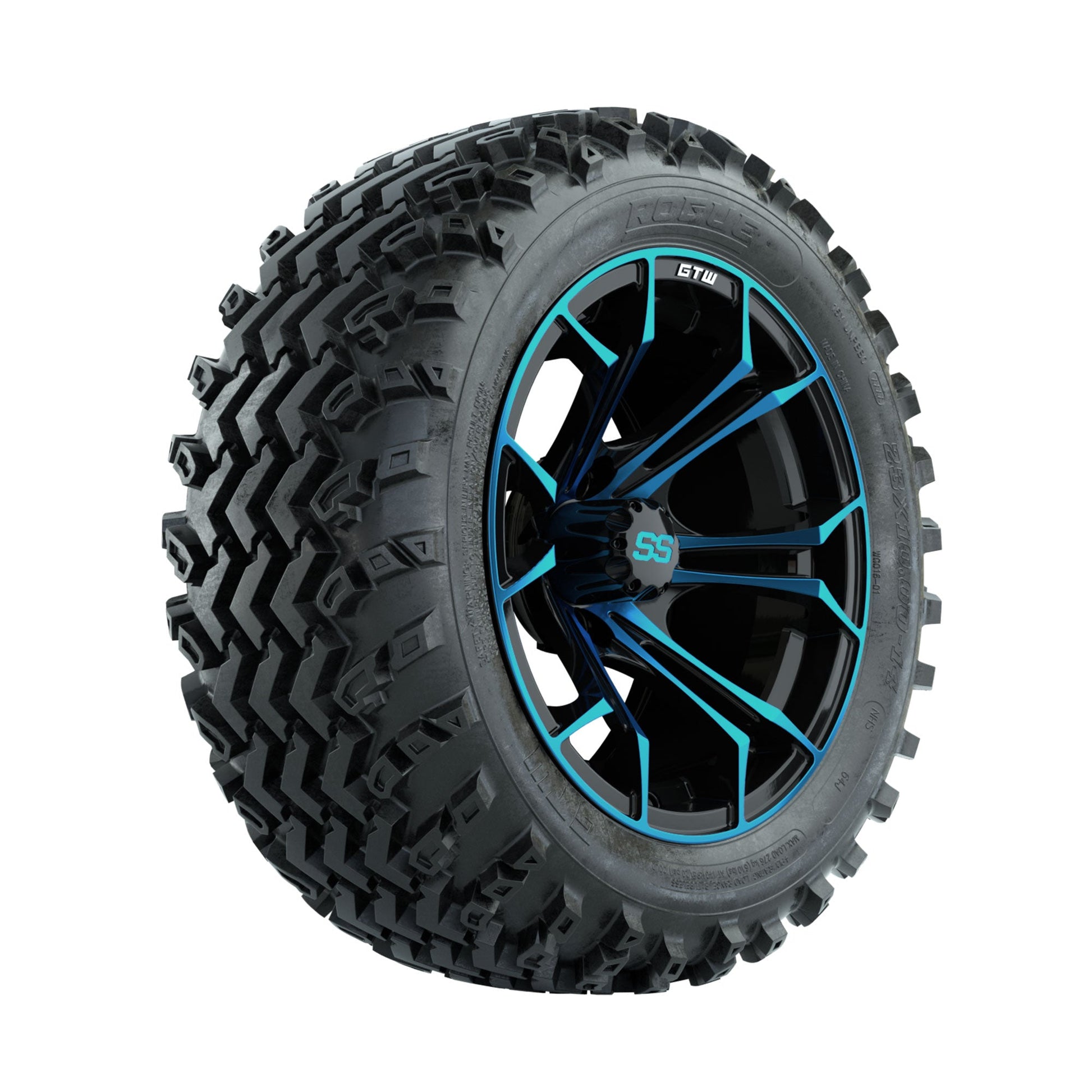 GTW Spyder Blue/Black 14 in Wheels with 23x10.00-14 Rogue All Terrain Tires Full Set
