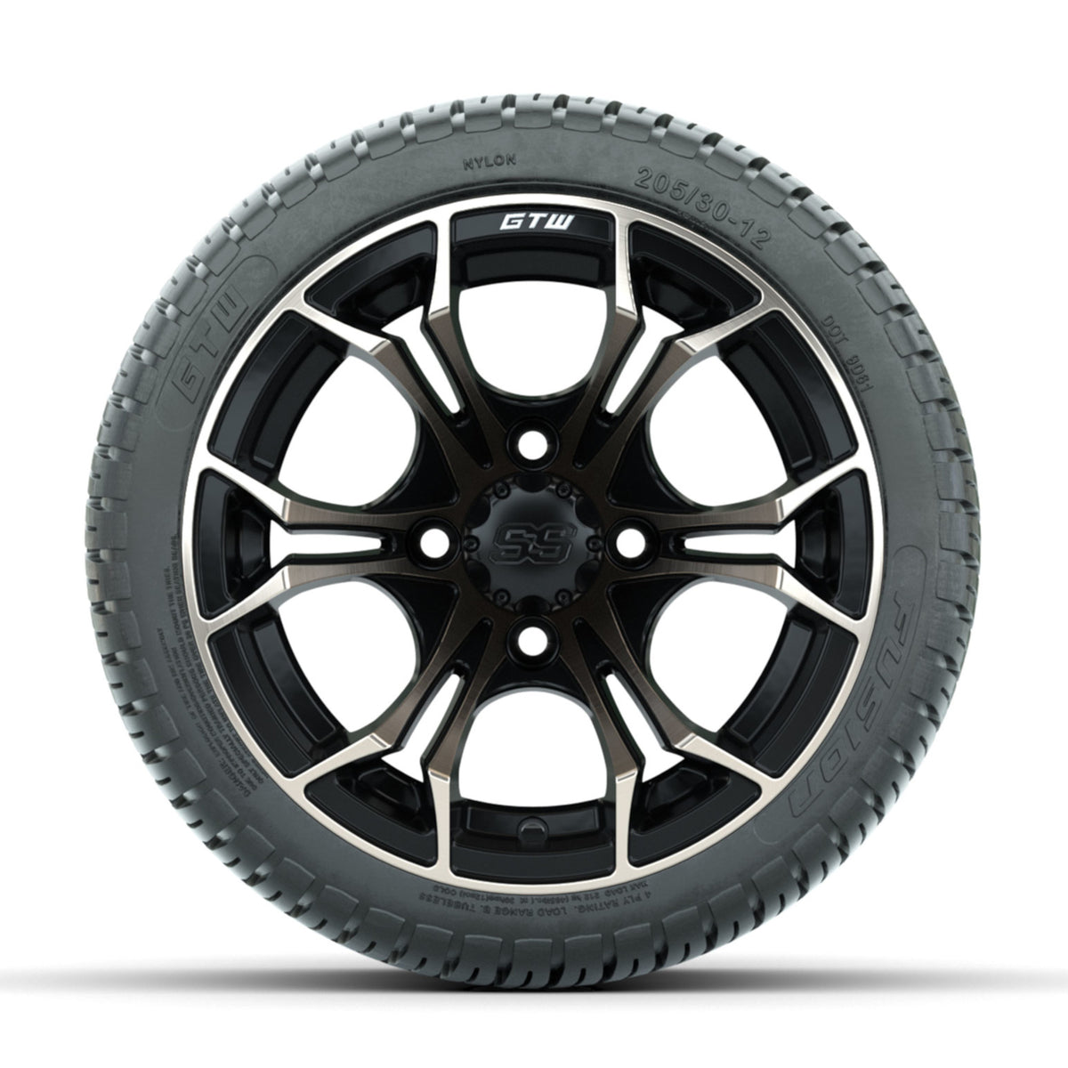 GTW Spyder Bronze/Matte Black 12 in Wheels with 205/30-12 Fusion Street Tires Full Set