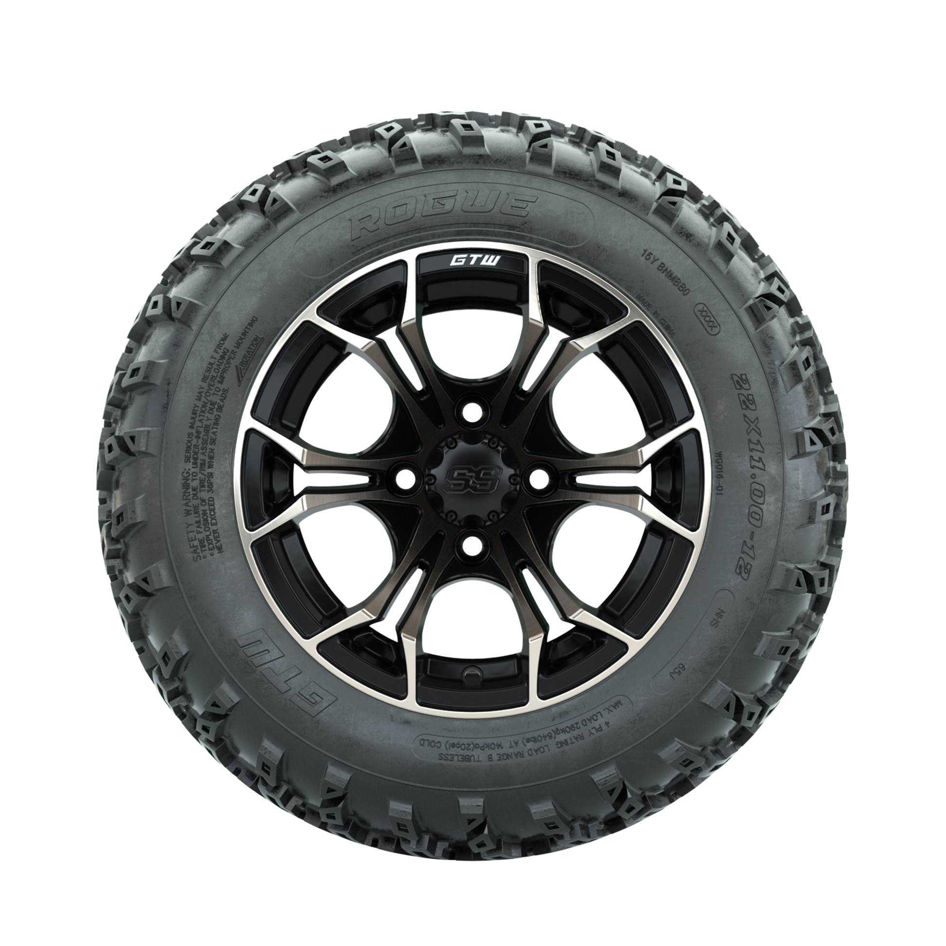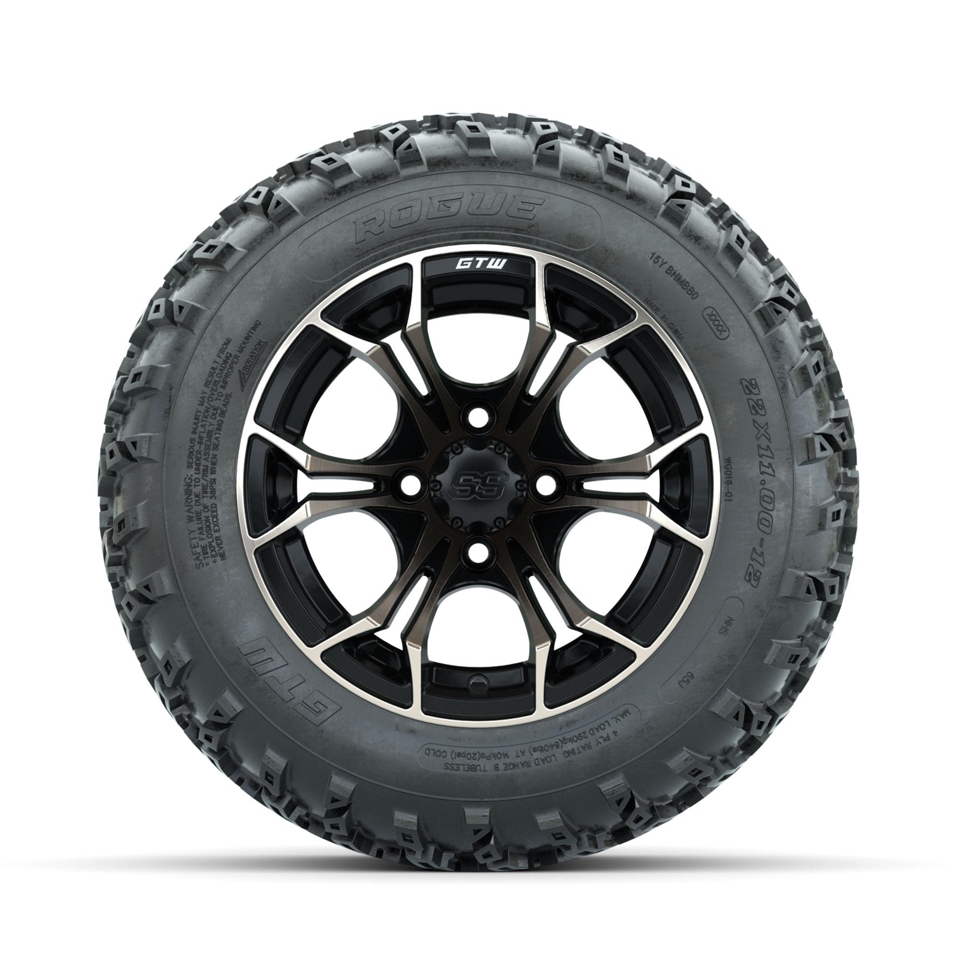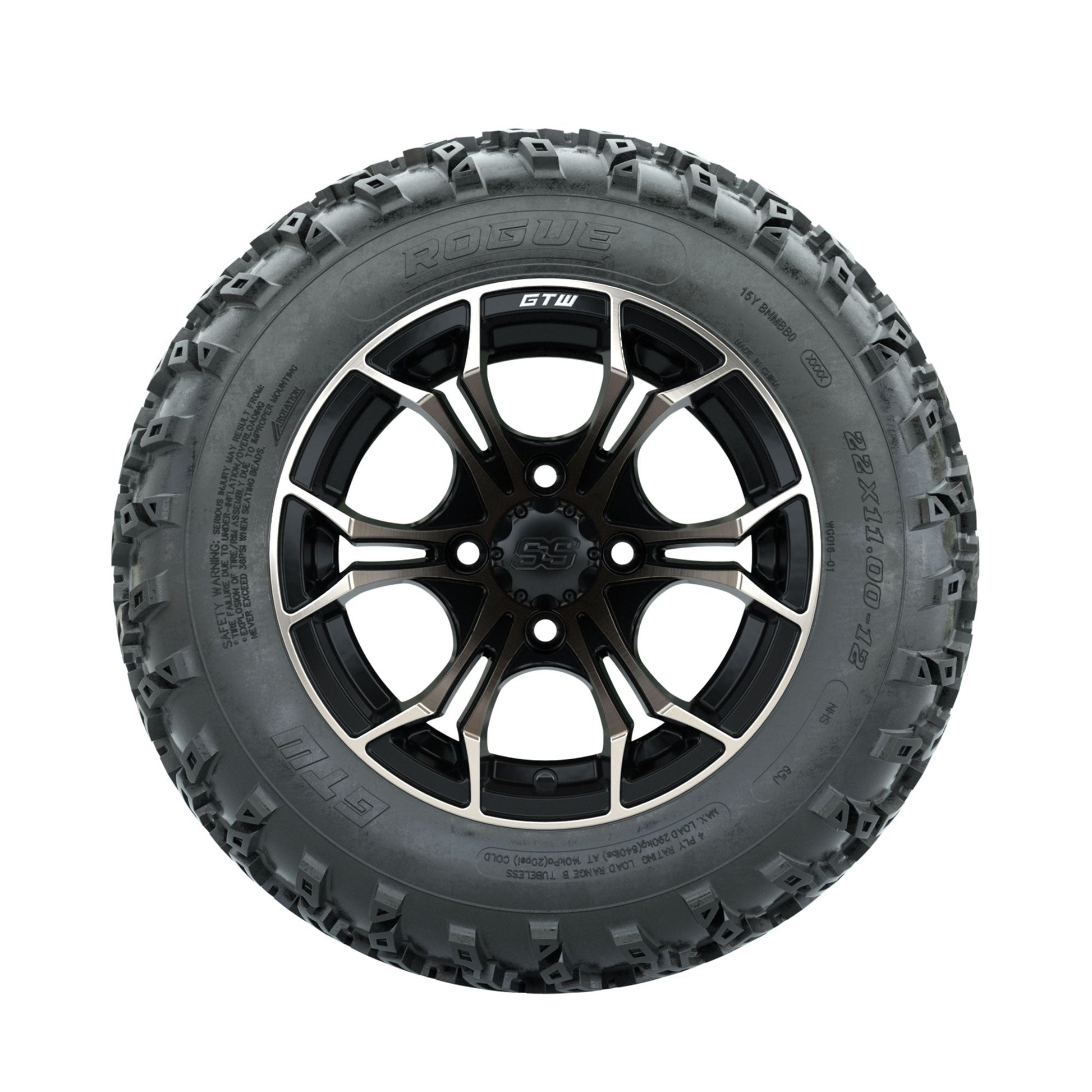 GTW Spyder Bronze/Matte Black 12 in Wheels with 22x11.00-12 Rogue All Terrain Tires Full Set
