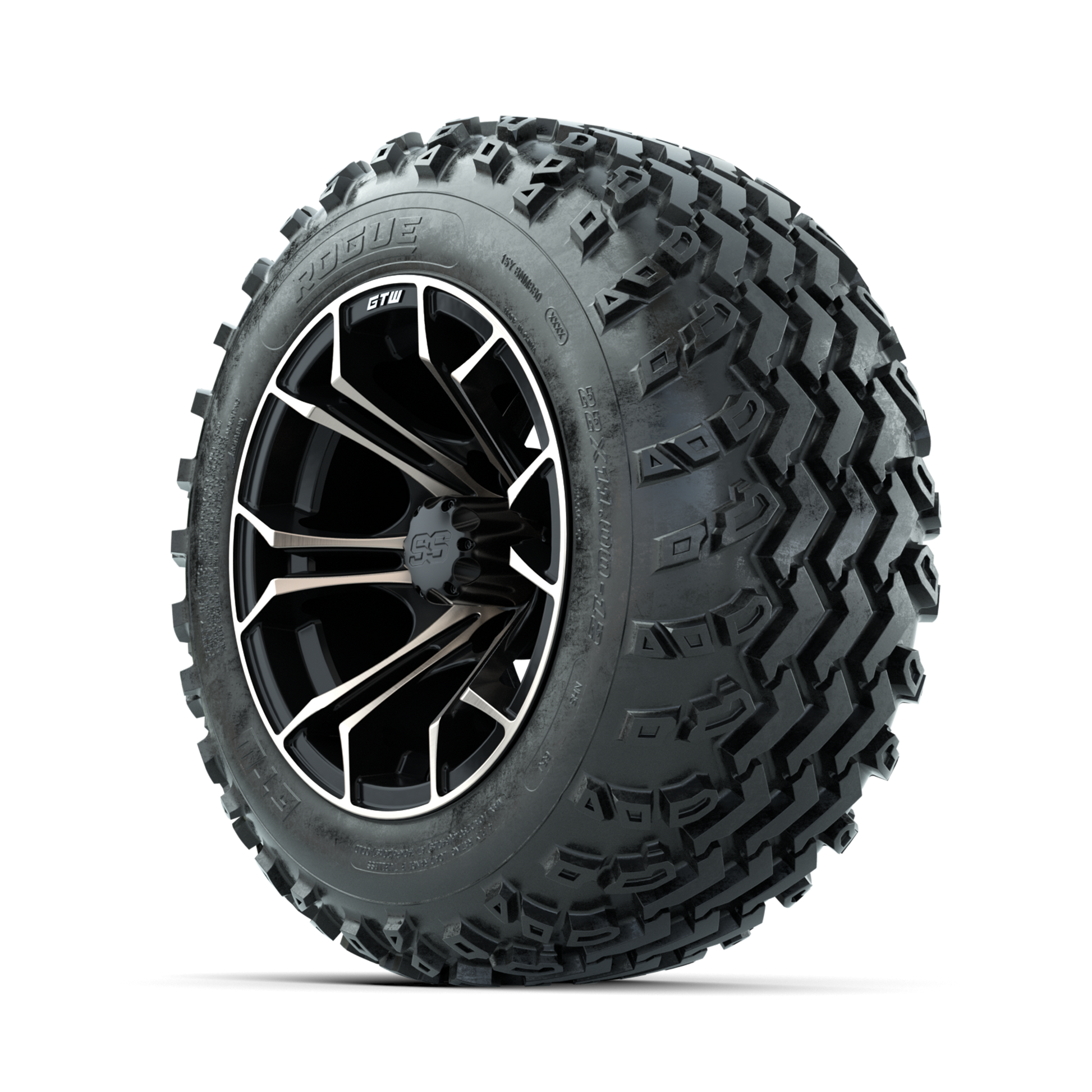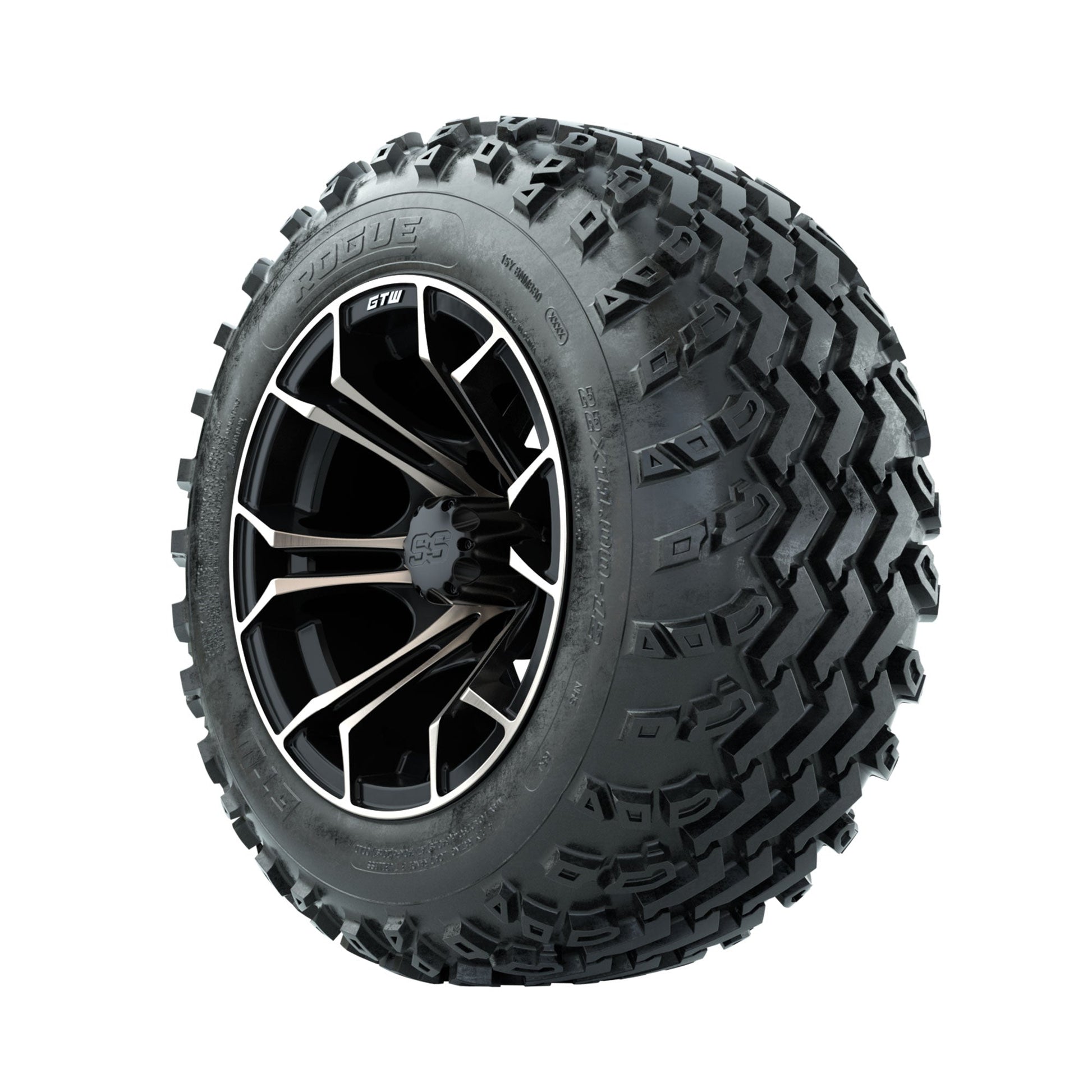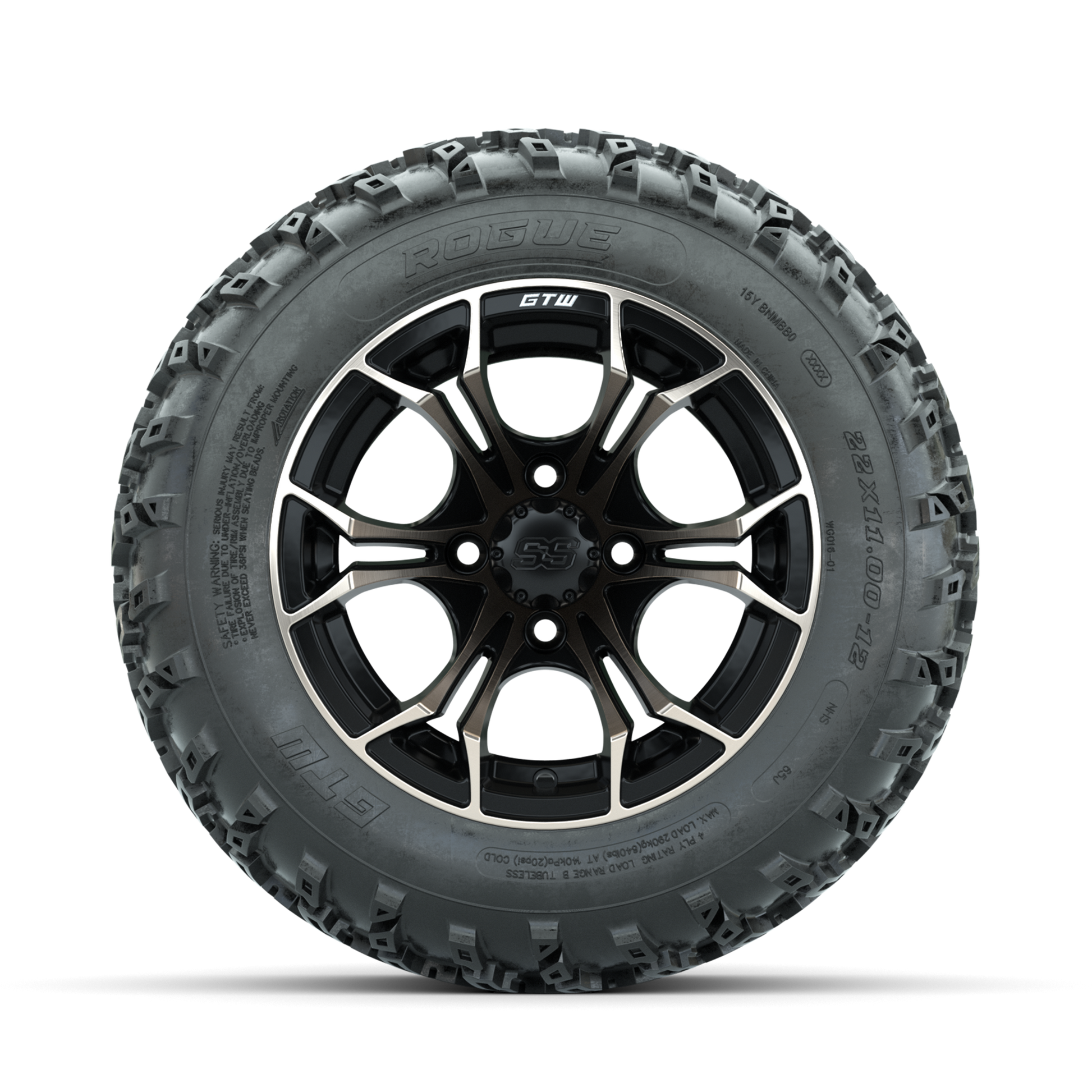 | Product Description: | A set of (4) 12-inch GTW-Spyder Bronze/Matte Black golf cart wheels Mounted on 22x11.00-12 Rogue All-Terrain Tires Tread Classification: All-Terrain Full Tire & Wheel Combo Includes: (4) 12x7 GTW-Spyder Wheels / Bronze/Matte Black finish / Offset: 3:4 (ET -.25) (4) 22x11.00-12 GTW Rogue All-Terrain Tires / Tire is approx. 22- tall (4-Ply) (4) Center caps Please Note: All Wheels are 4 on 4 Hole / Lug Pattern unless otherwise specified. Tech Tips: We Recommend a Minimum 3- Lift Kit for This Tire & Wheel Combo (Tire is approx. 22- OD) Please Check and Adjust PSI in Tires Before Operation (Recommended Inflation Can Be Found on Sidewall of Tire) Tire & Wheel Combos are mounted and Inflated Before Shipping, Free of Charge All Wheels Have a lug pattern of "4x101.6mm" Lug Nuts Sold Separately: Standard Chrome Lug Nuts #LUG4S Metric Chrome Lug Nuts #LUG4M (Yamaha Models) |