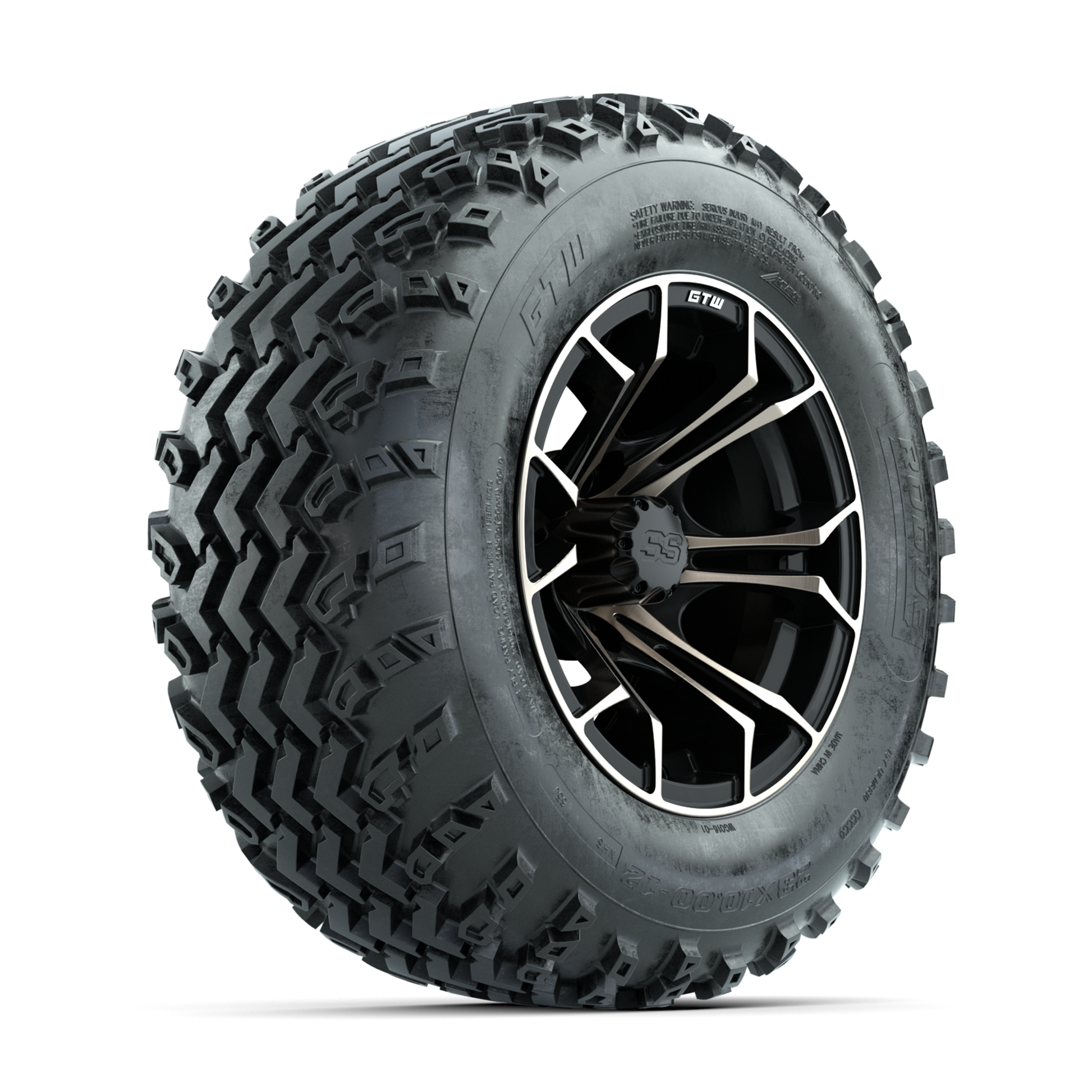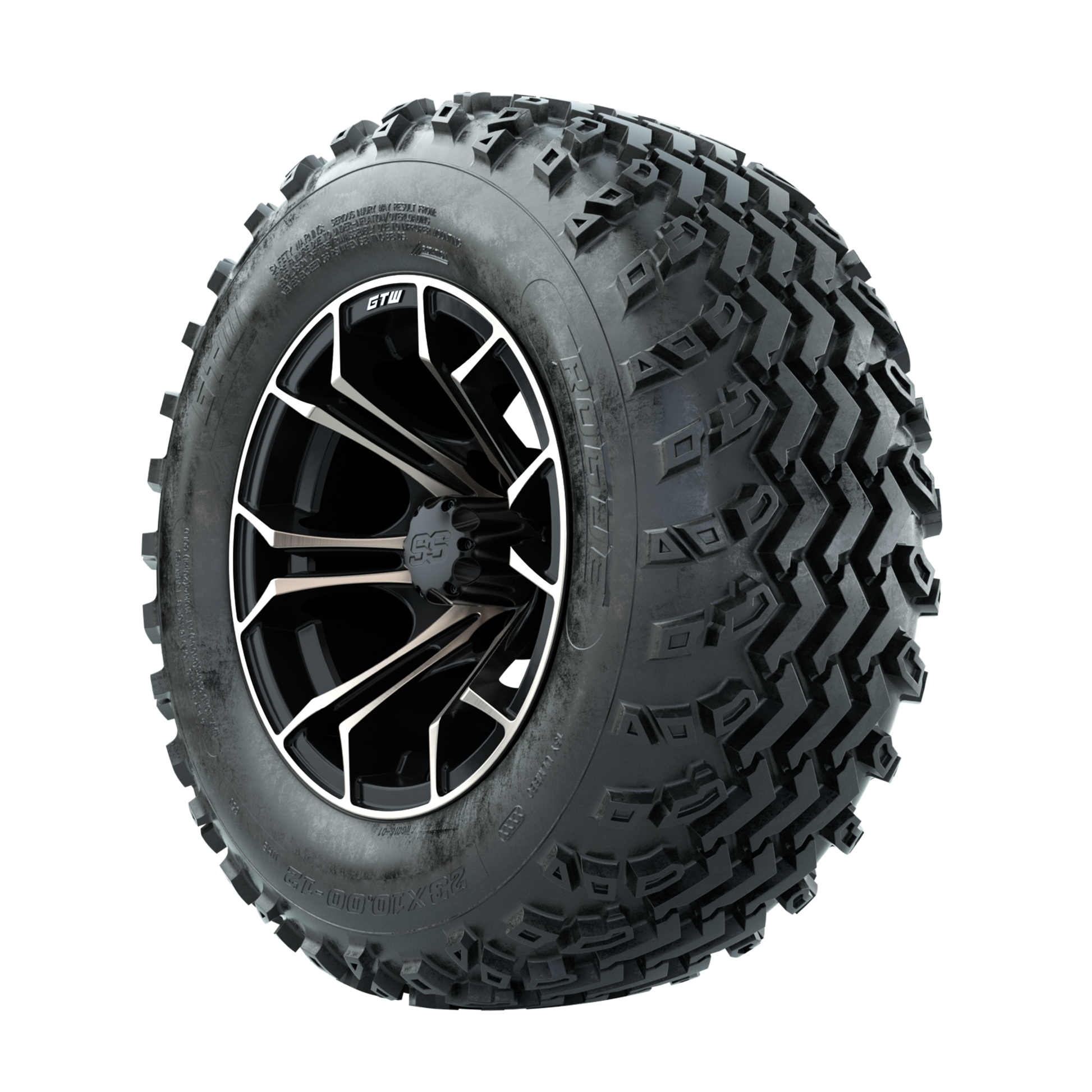 | Product Description: | A set of (4) 12-inch GTW-Spyder Bronze/Matte Black golf cart wheels Mounted on 23x10.00-12 Rogue All-Terrain Tires Tread Classification: All-Terrain Full Tire & Wheel Combo Includes: (4) 12x7 GTW-Spyder Wheels / Bronze/Matte Black finish / Offset: 3:4 (ET -.25) (4) 23x10.00-12 GTW Rogue All-Terrain Tires / Tire is approx. 23- tall (4-Ply) (4) Center caps Please Note: All Wheels are 4 on 4 Hole / Lug Pattern unless otherwise specified. Tech Tips: We Recommend a Minimum 3- Lift Kit for This Tire & Wheel Combo (Tire is approx. 23- OD) Please Check and Adjust PSI in Tires Before Operation (Recommended Inflation Can Be Found on Sidewall of Tire) Tire & Wheel Combos are mounted and Inflated Before Shipping, Free of Charge All Wheels Have a lug pattern of "4x101.6mm" Lug Nuts Sold Separately: Standard Chrome Lug Nuts #LUG4S Metric Chrome Lug Nuts #LUG4M (Yamaha Models) |