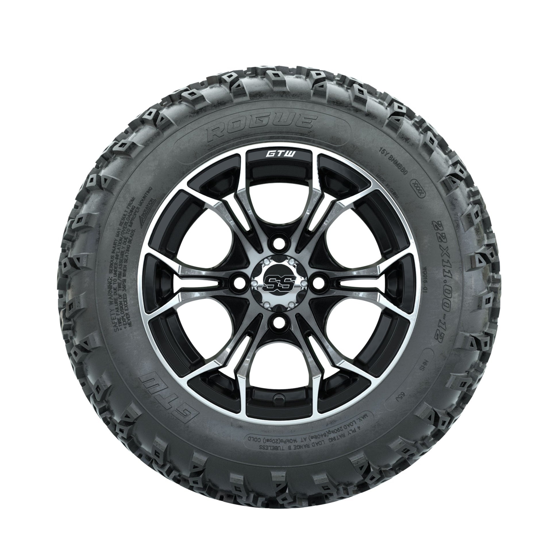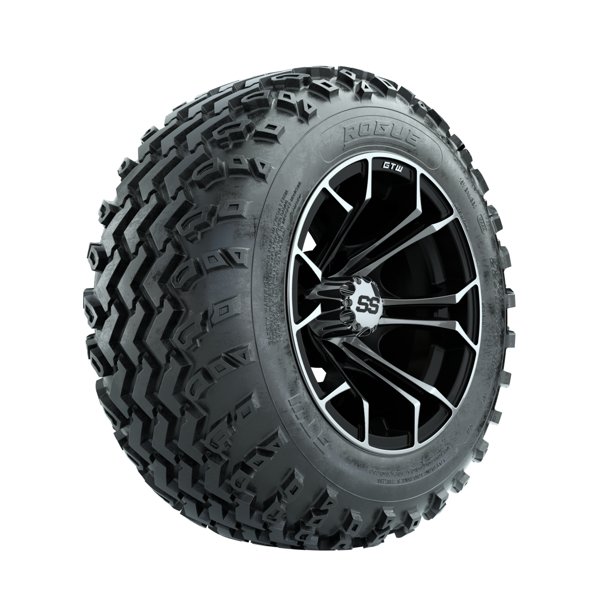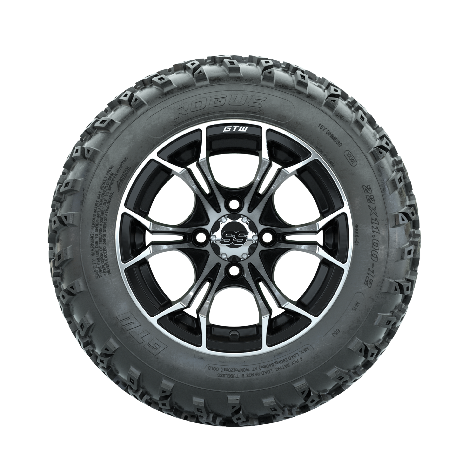 GTW Spyder Machined/Black 12 in Wheels with 22x11.00-12 Rogue All Terrain Tires Full Set
