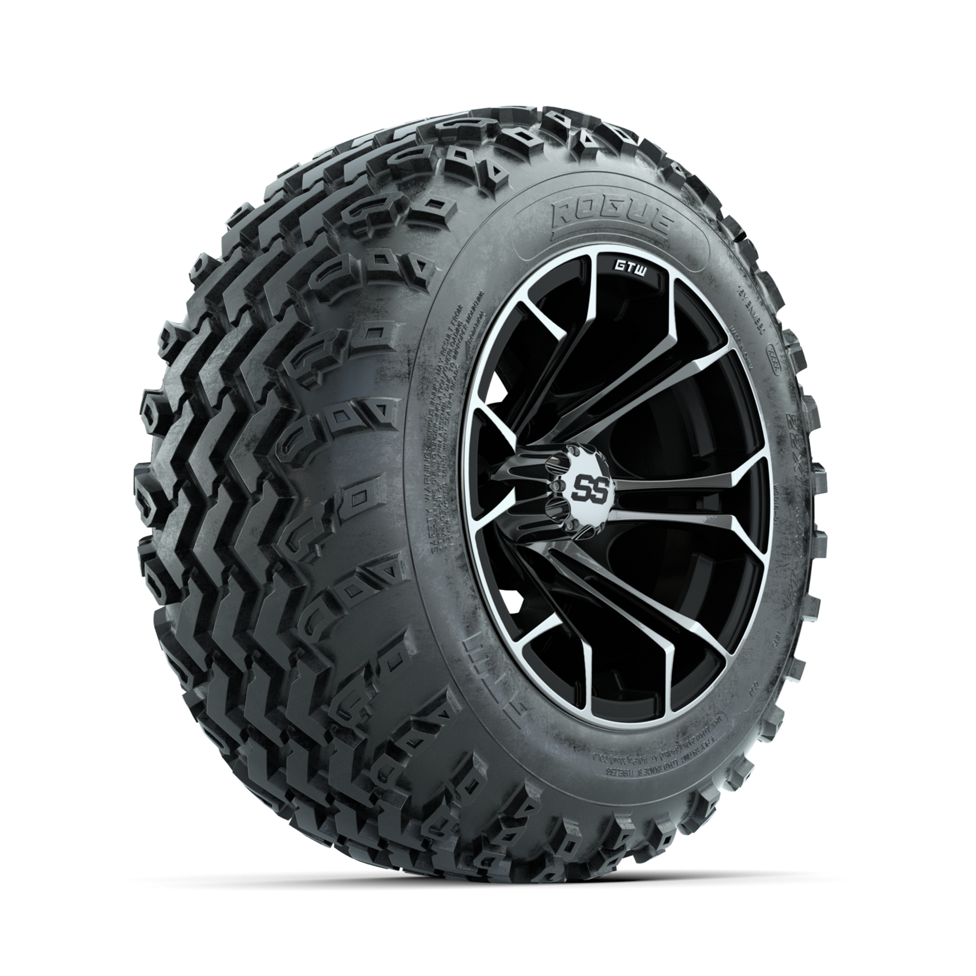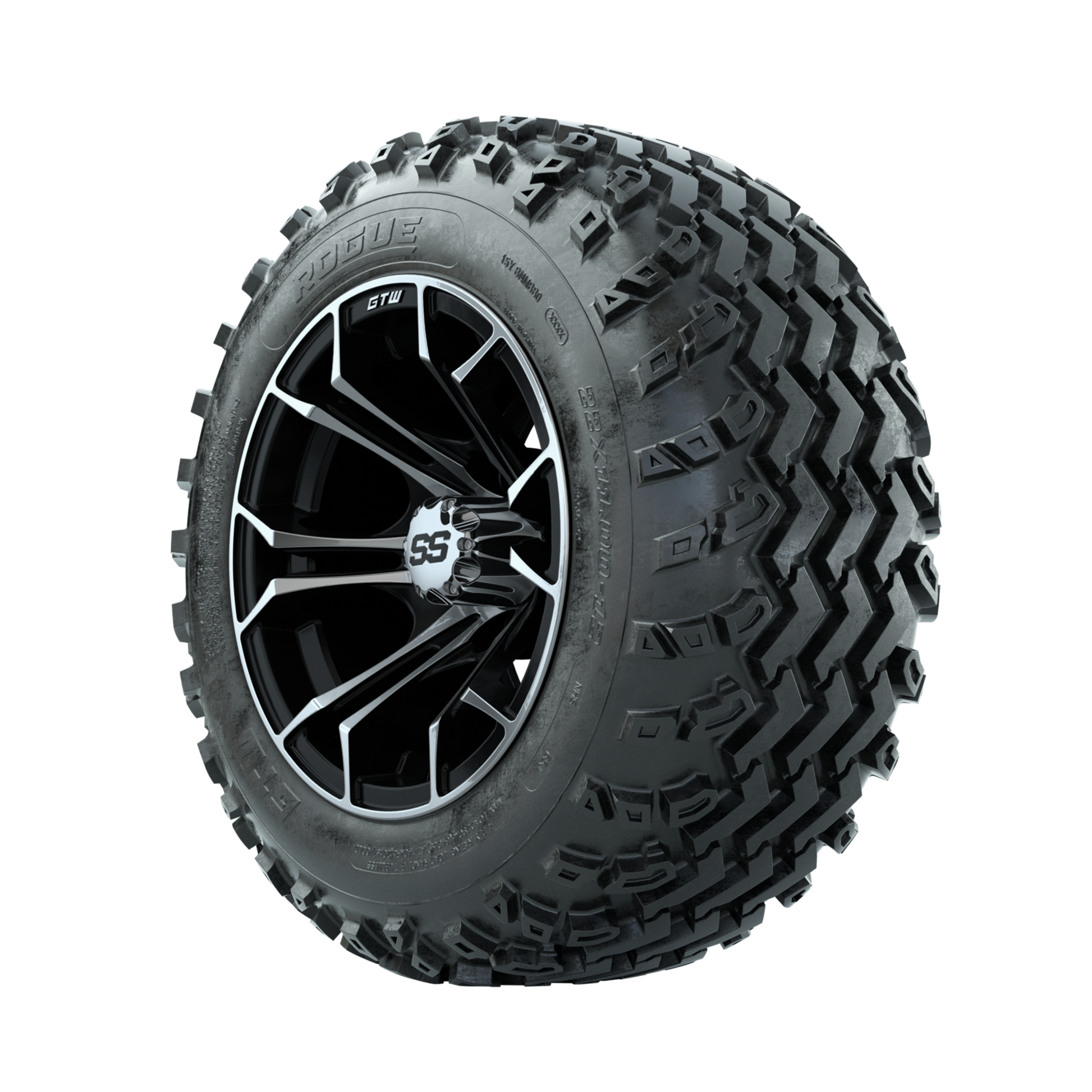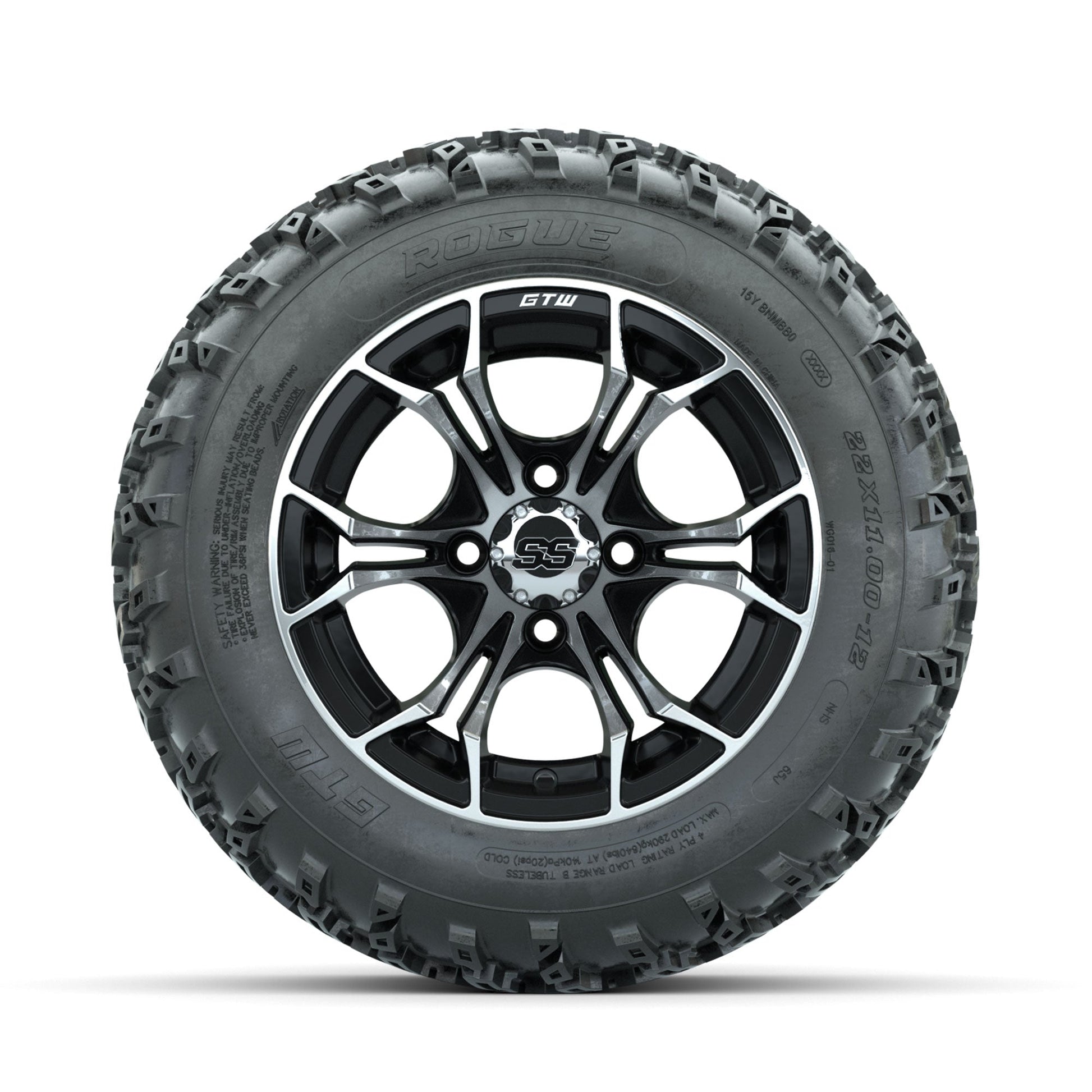 GTW Spyder Machined/Black 12 in Wheels with 22x11.00-12 Rogue All Terrain Tires Full Set