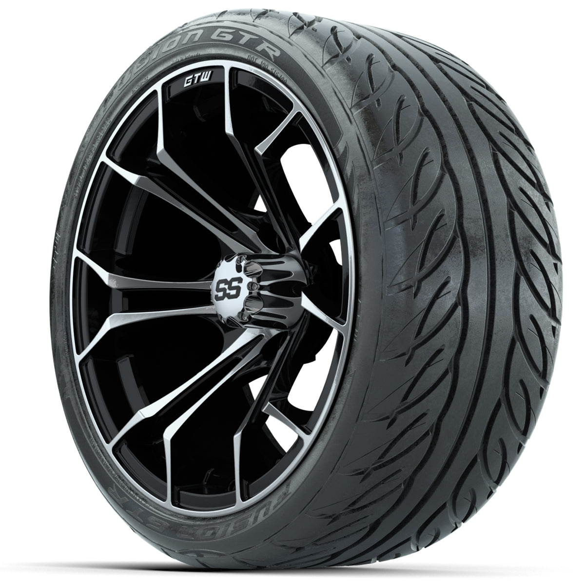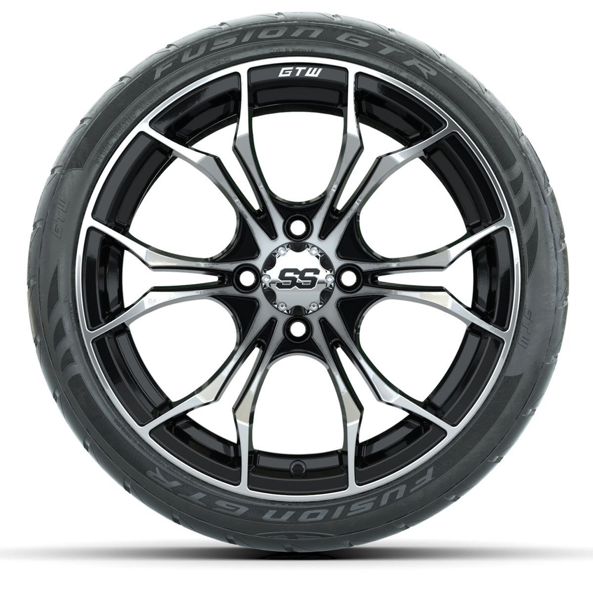 GTW Spyder Machined/Black 15 inch Wheels with 215/40-R15 Fusion GTR Street Tires Full Set