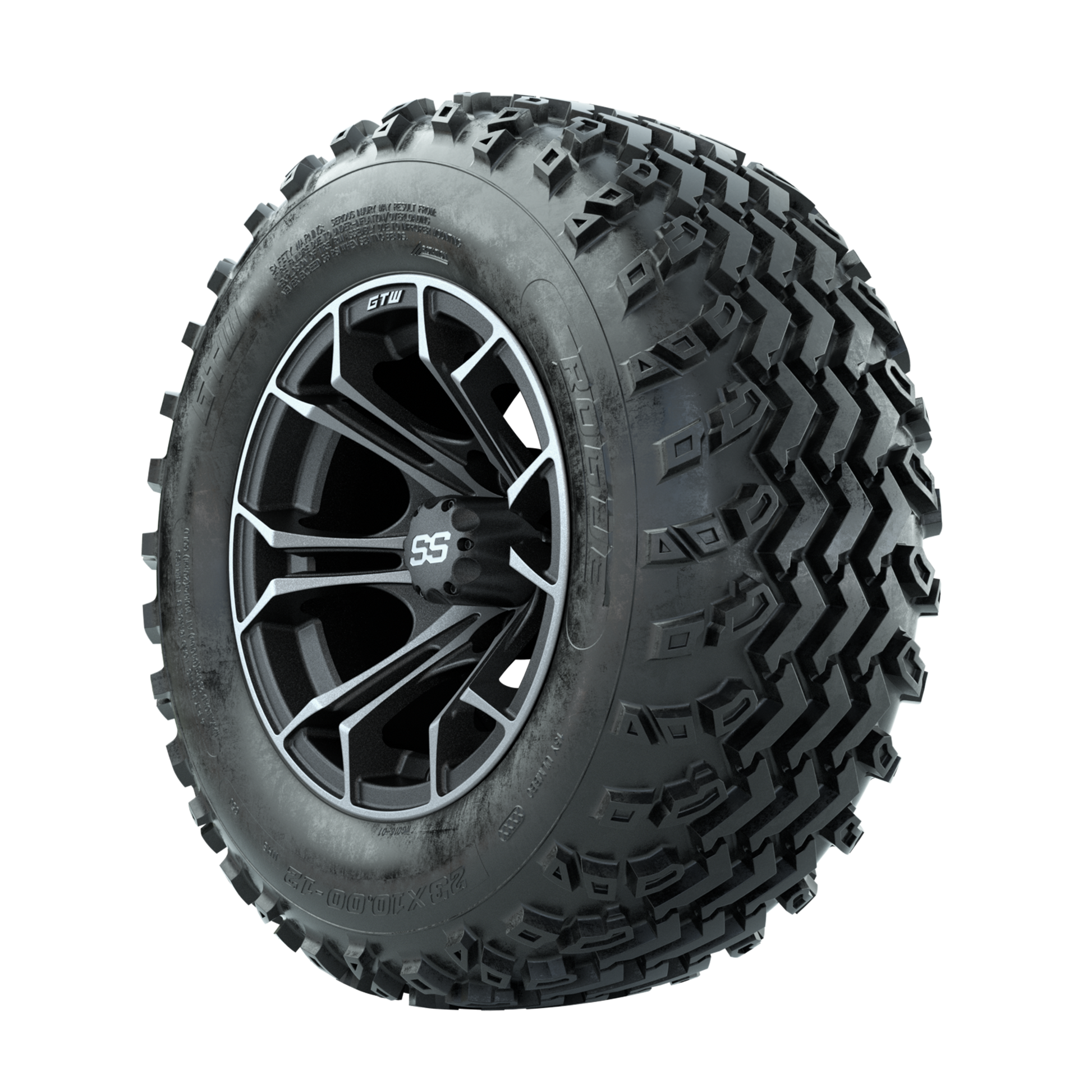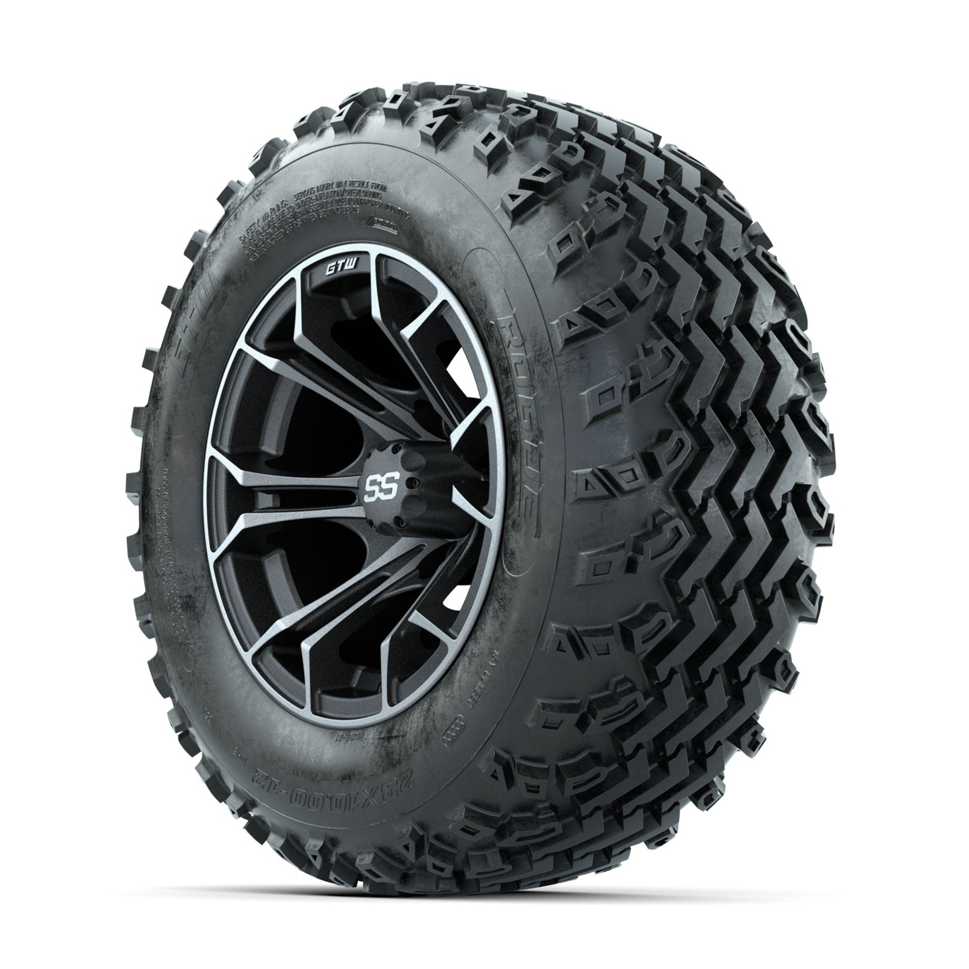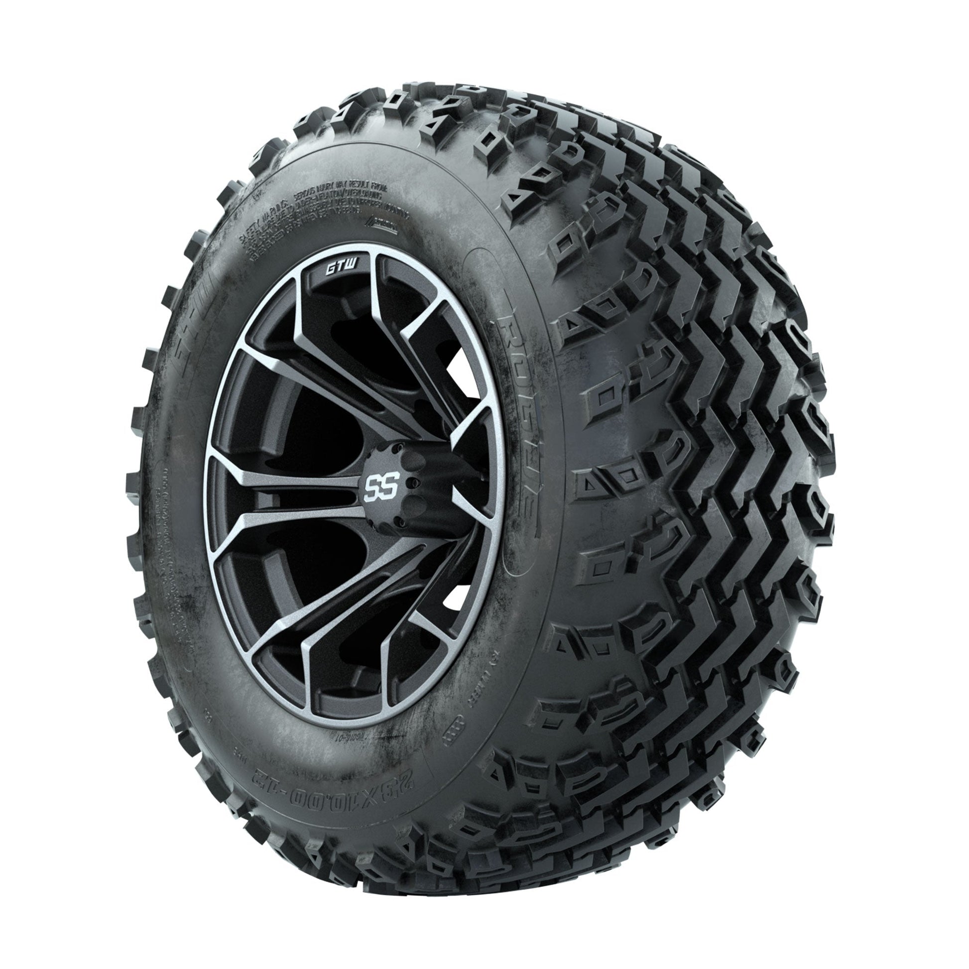 GTW Spyder Machined/Grey 12 in Wheels with 23x10.00-12 Rogue All Terrain Tires Full Set