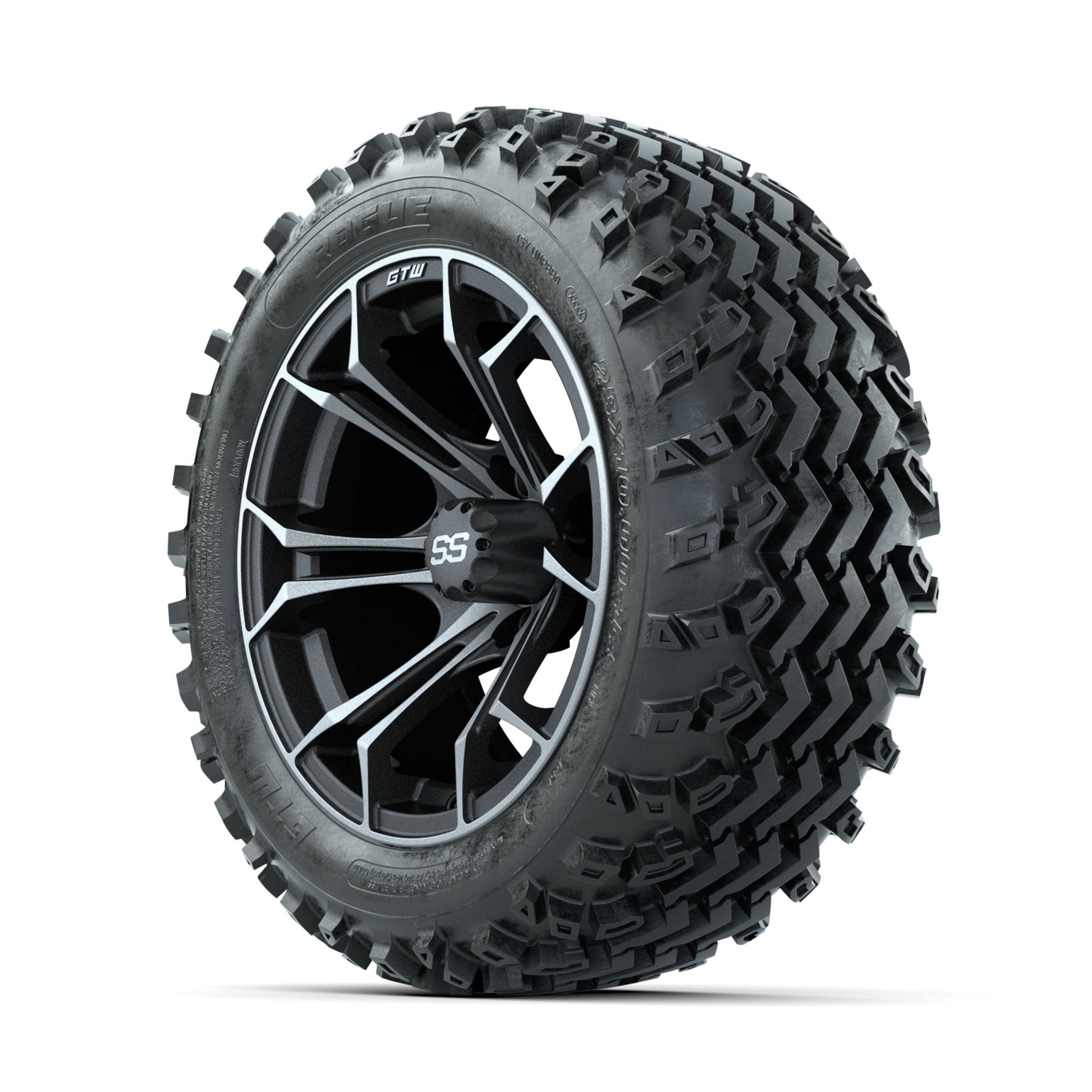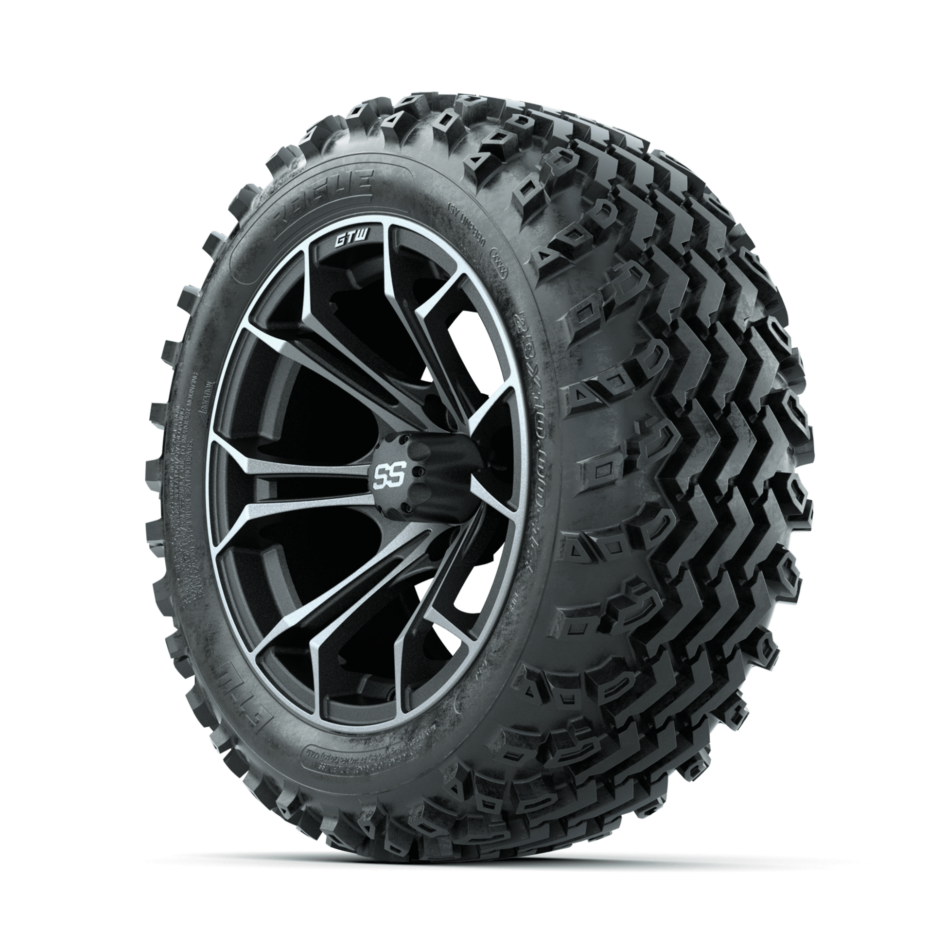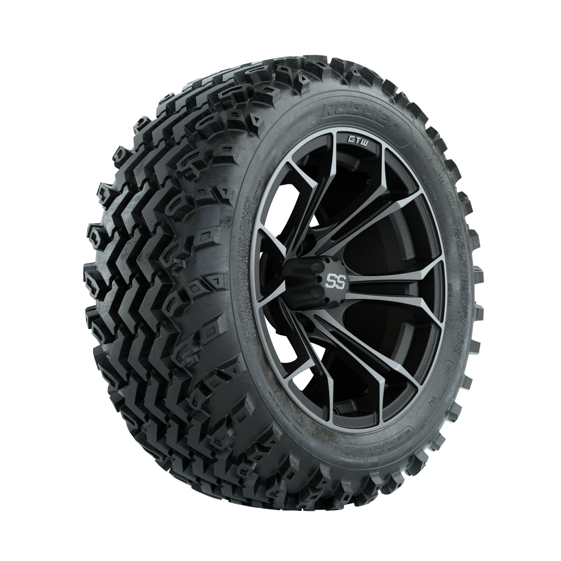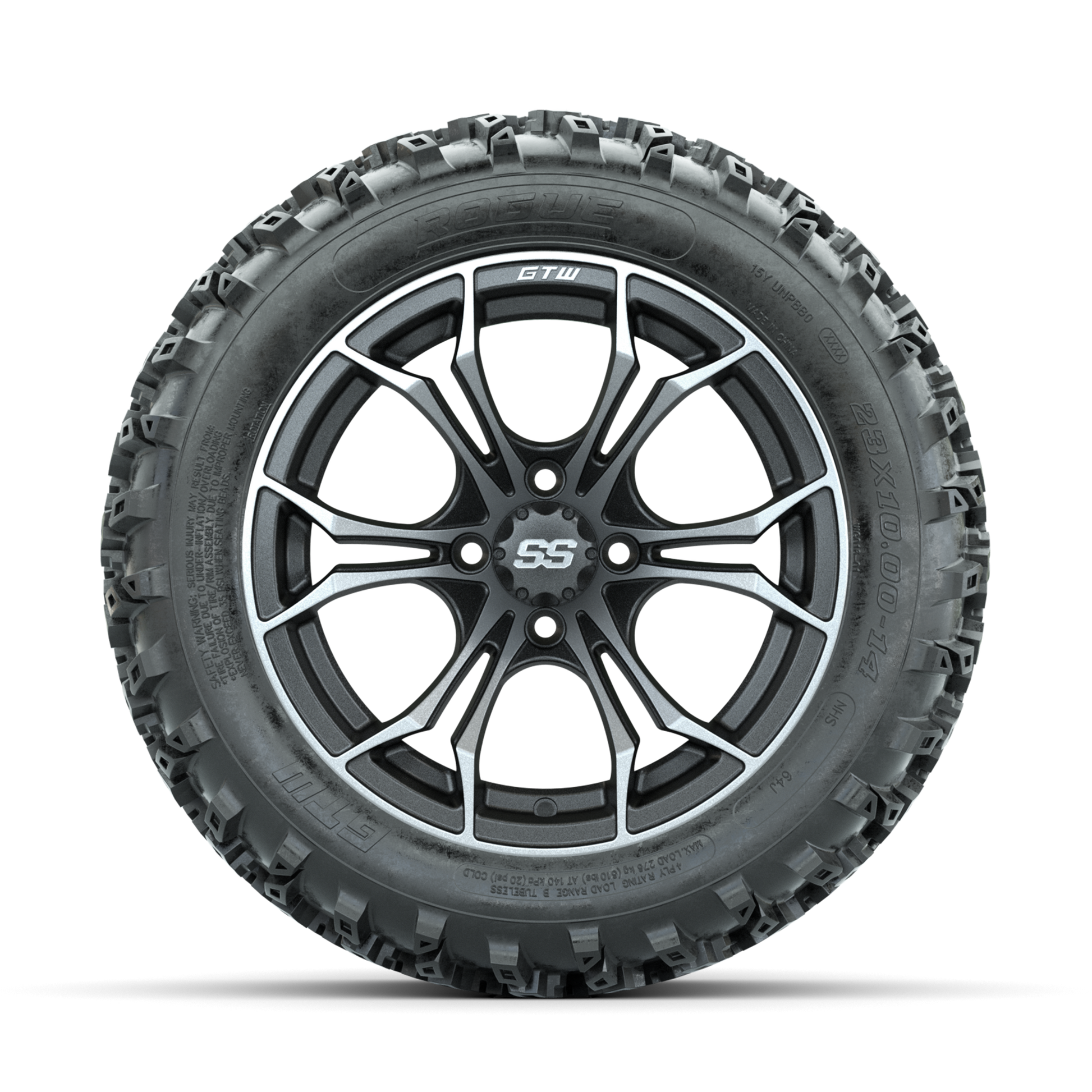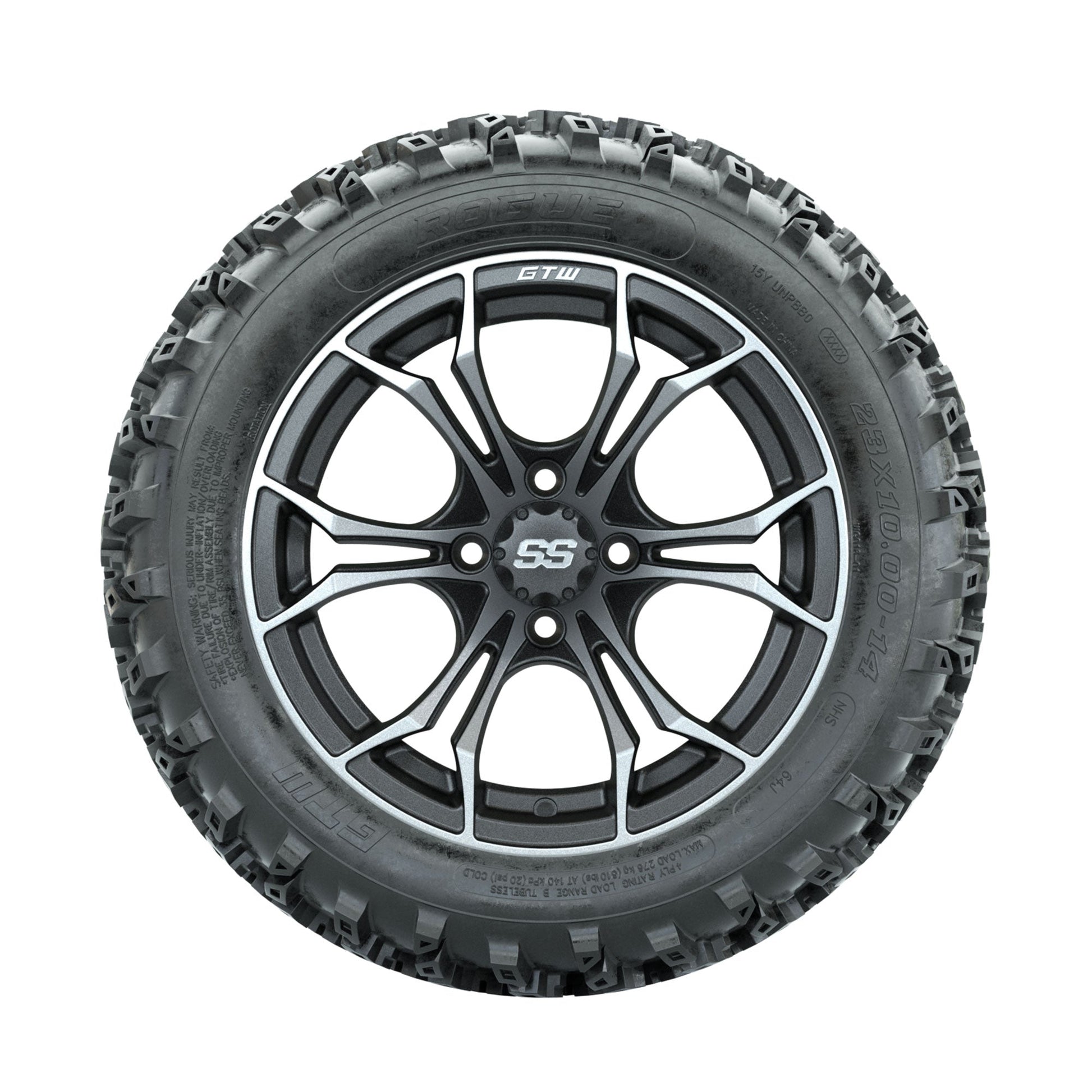GTW Spyder Machined/Grey 14 in Wheels with 23x10.00-14 Rogue All Terrain Tires Full Set