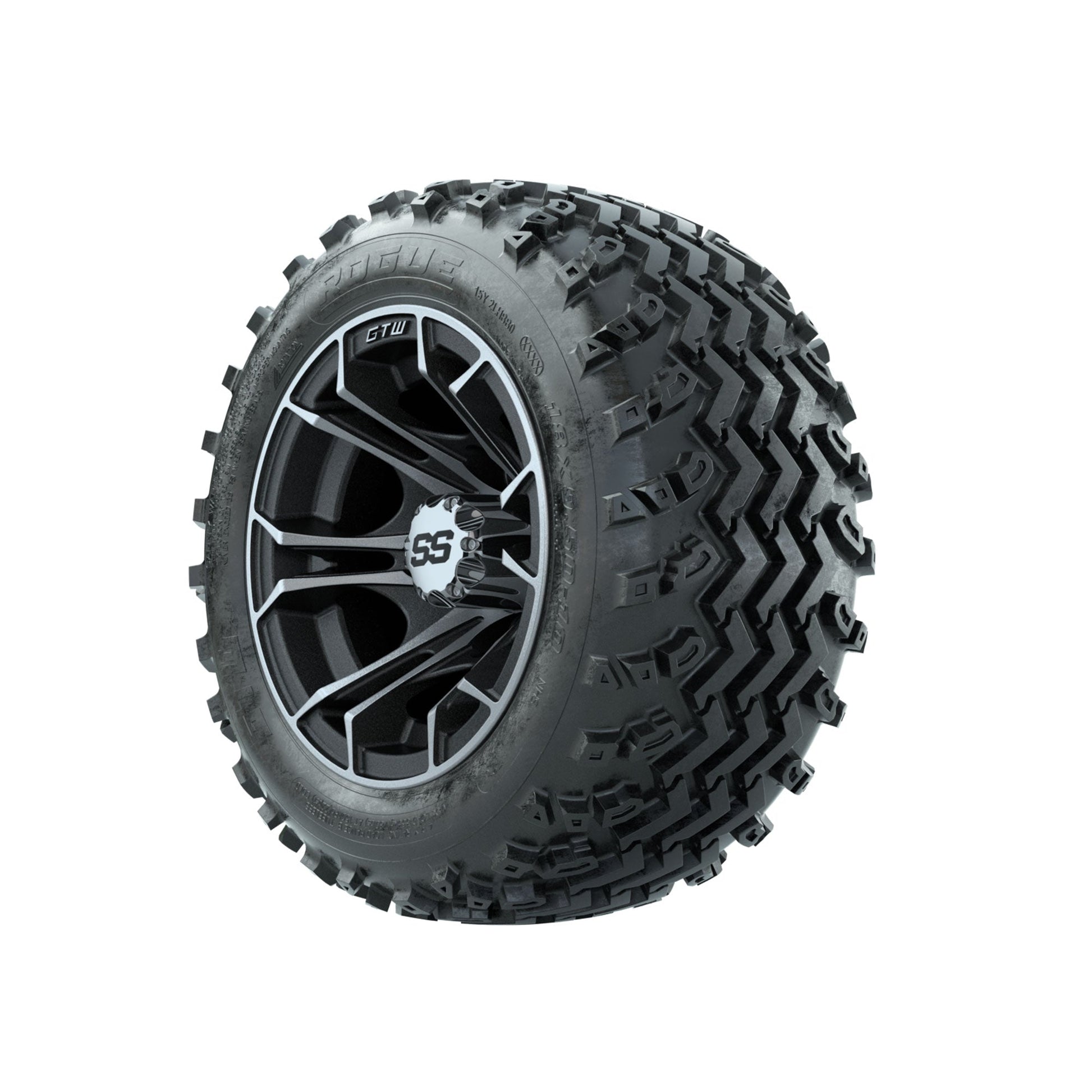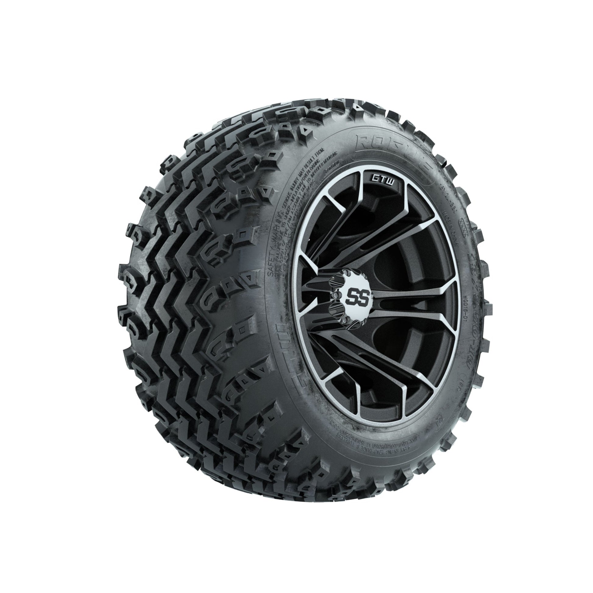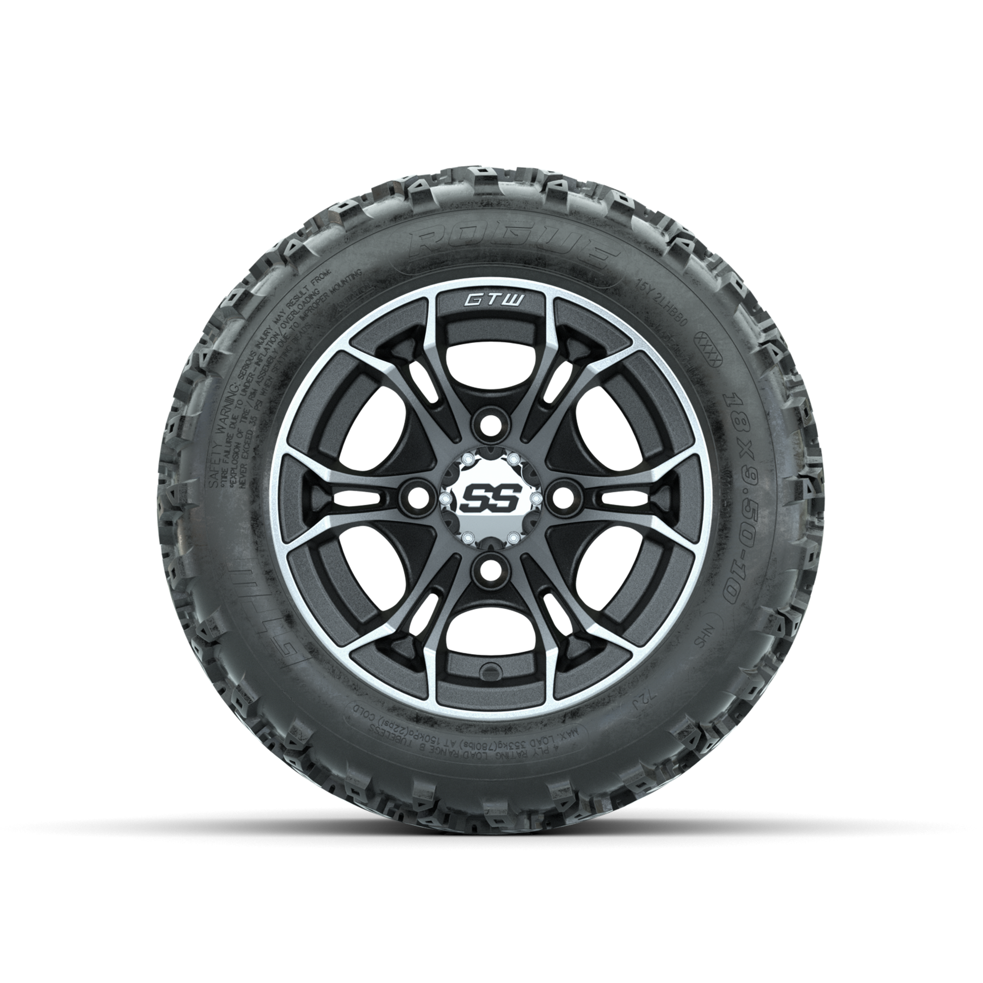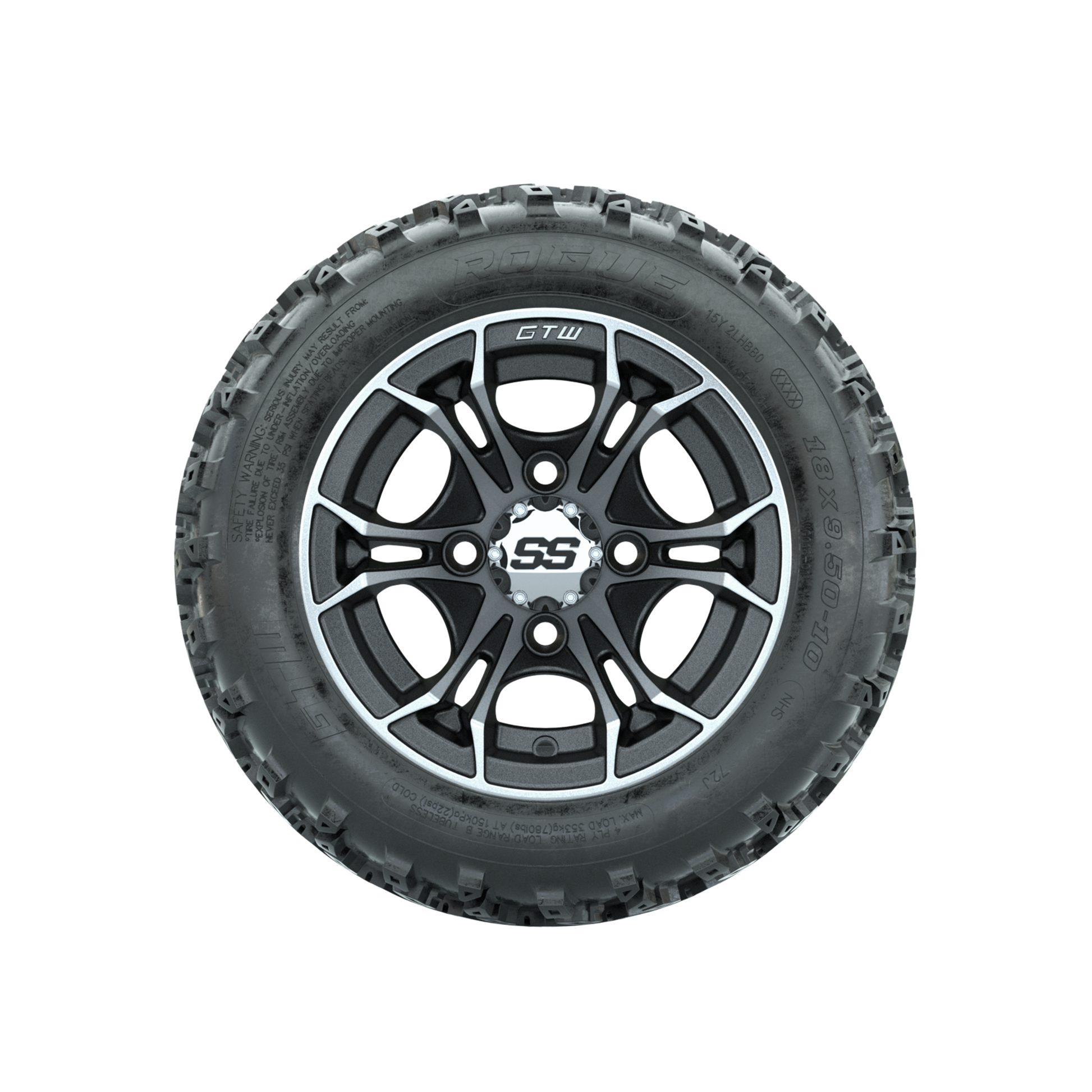 GTW Spyder Machined/Matte Grey 10 in Wheels with 18x9.50-10 Rogue All Terrain Tires Full Set
