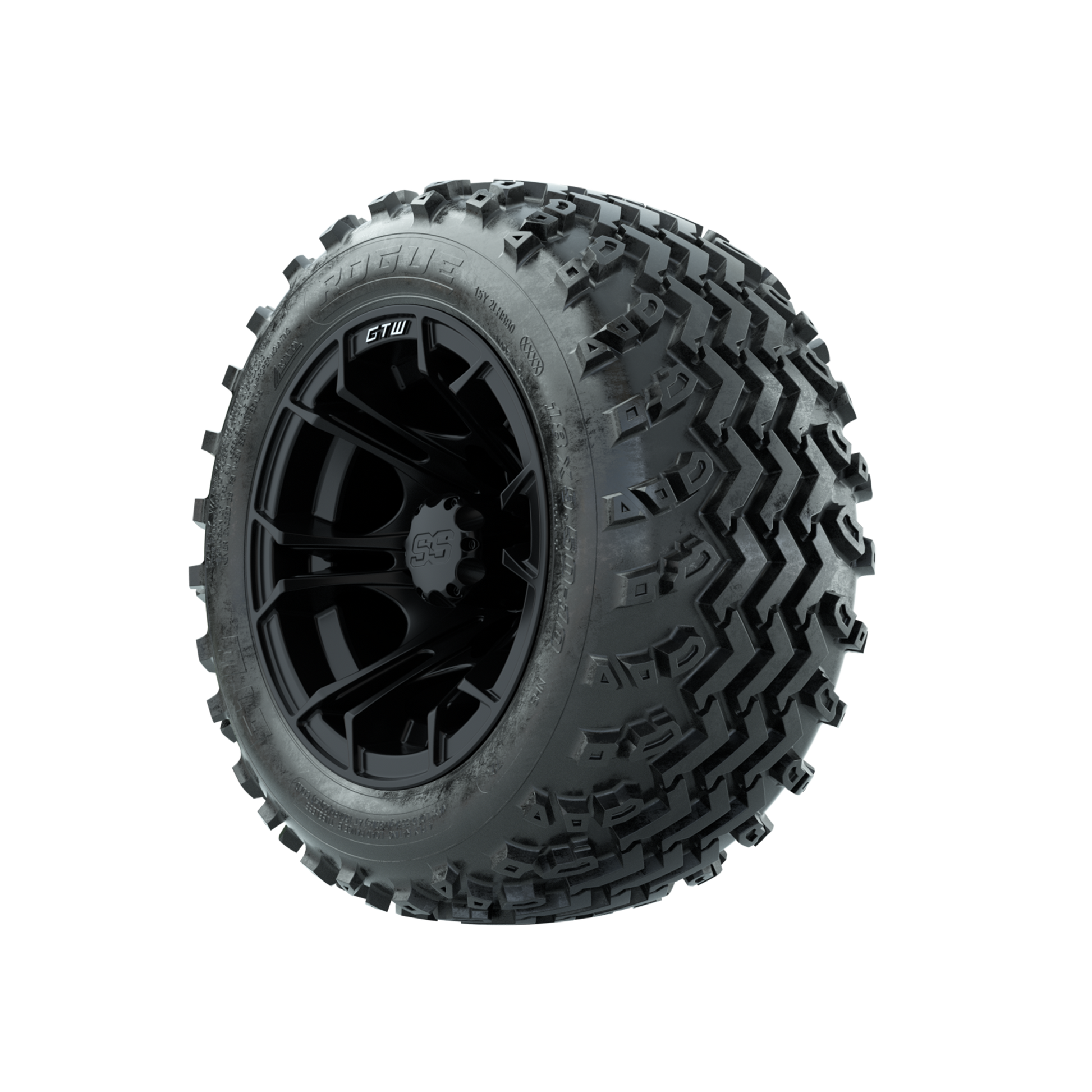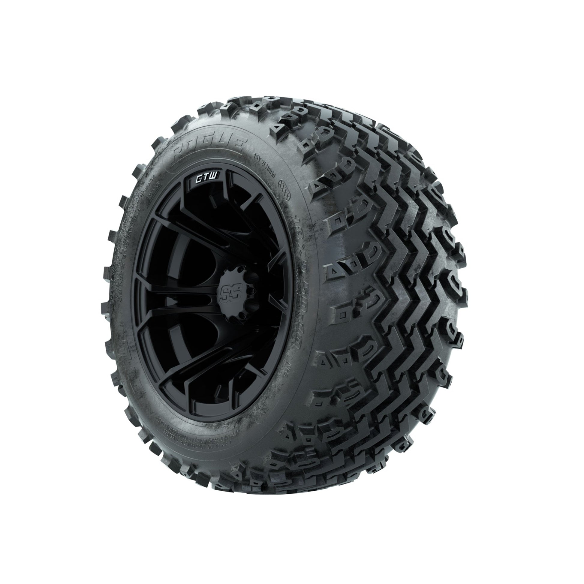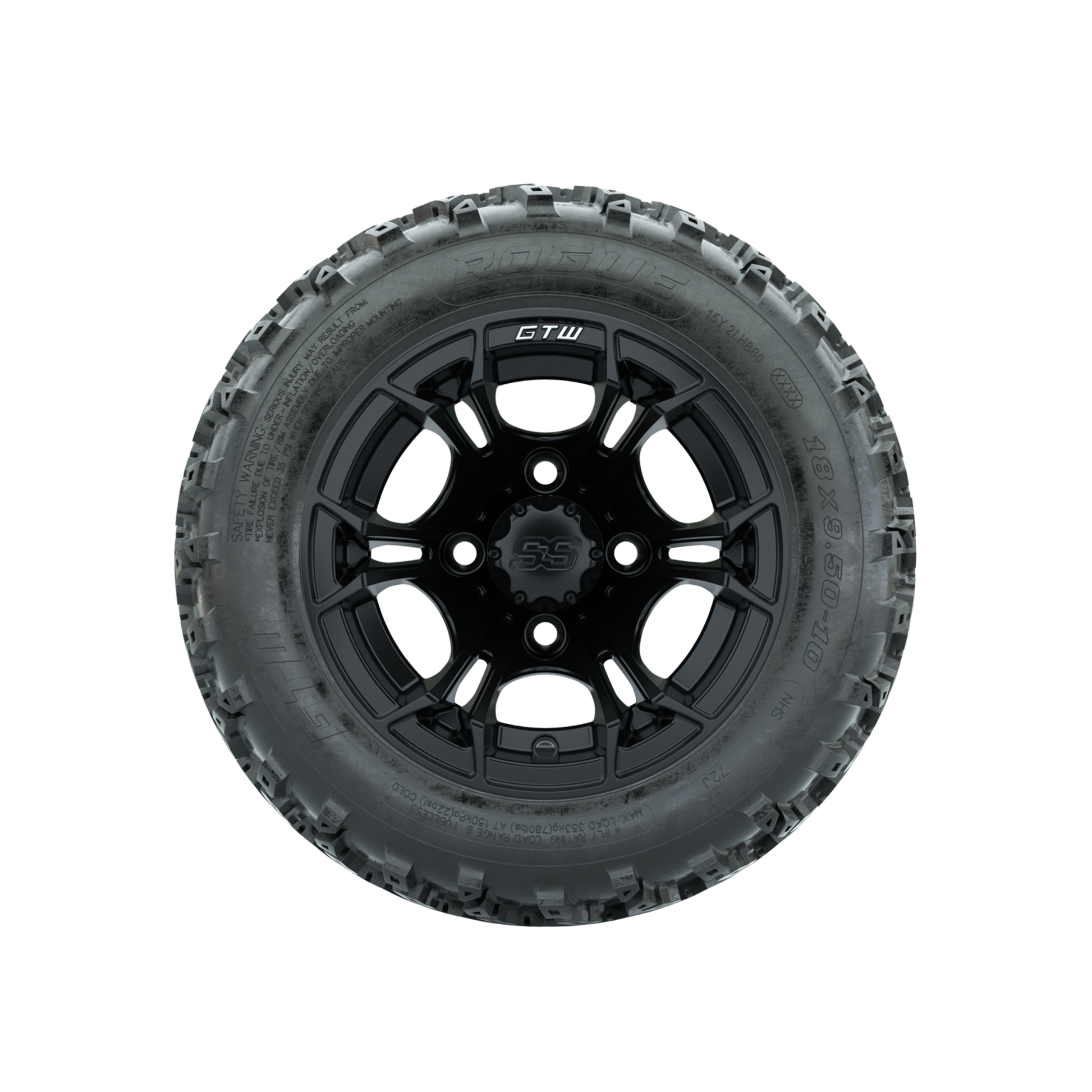 GTW Spyder Matte Black 10 in Wheels with 18x9.50-10 Rogue All Terrain Tires Full Set