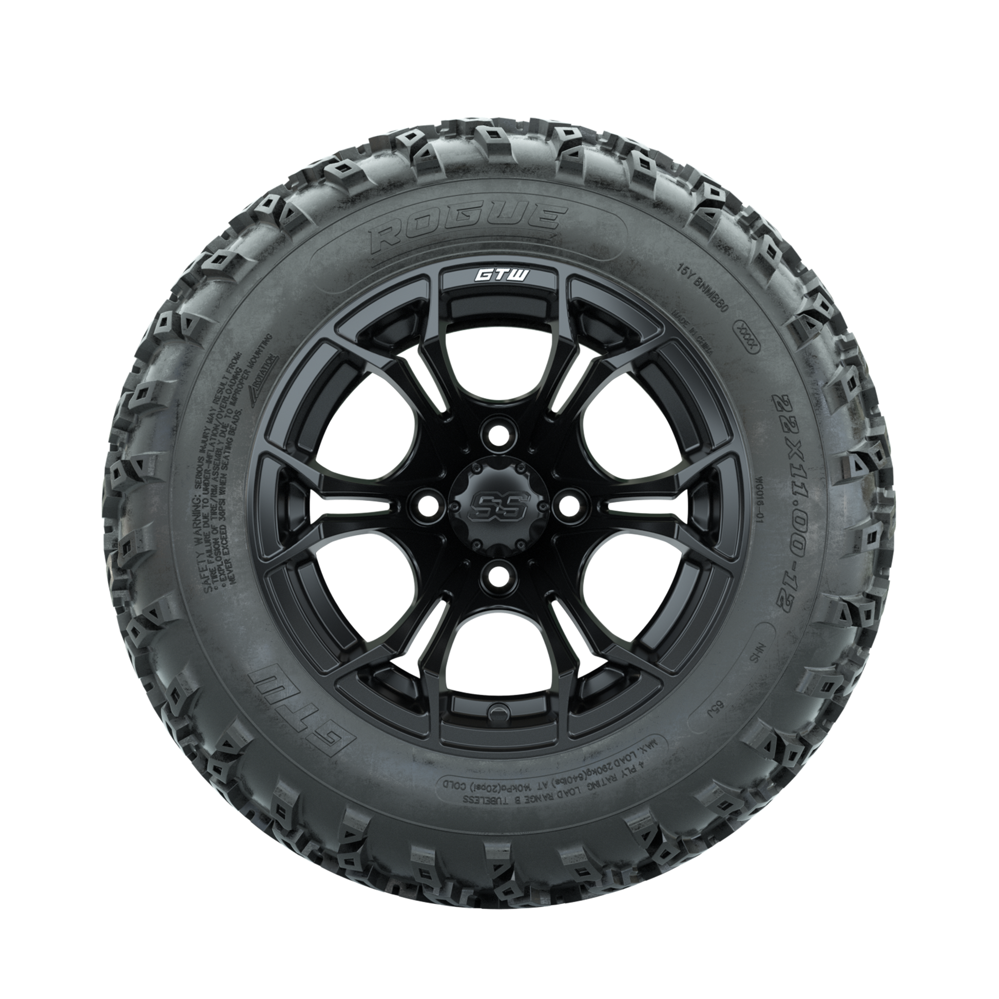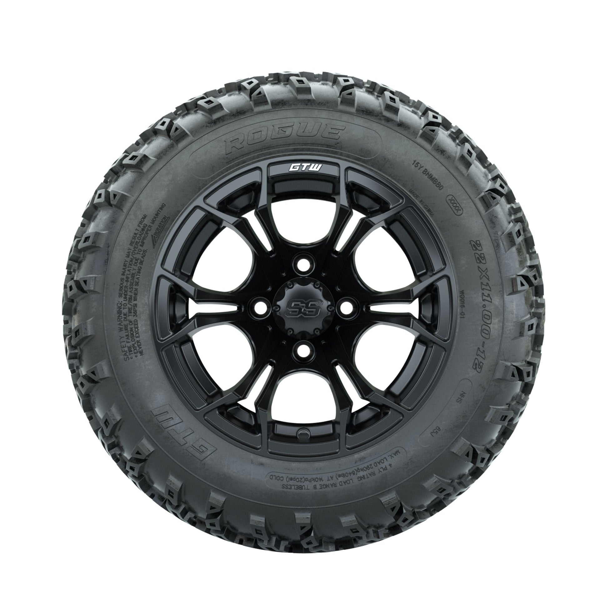 GTW Spyder Matte Black 12 in Wheels with 22x11.00-12 Rogue All Terrain Tires Full Set
