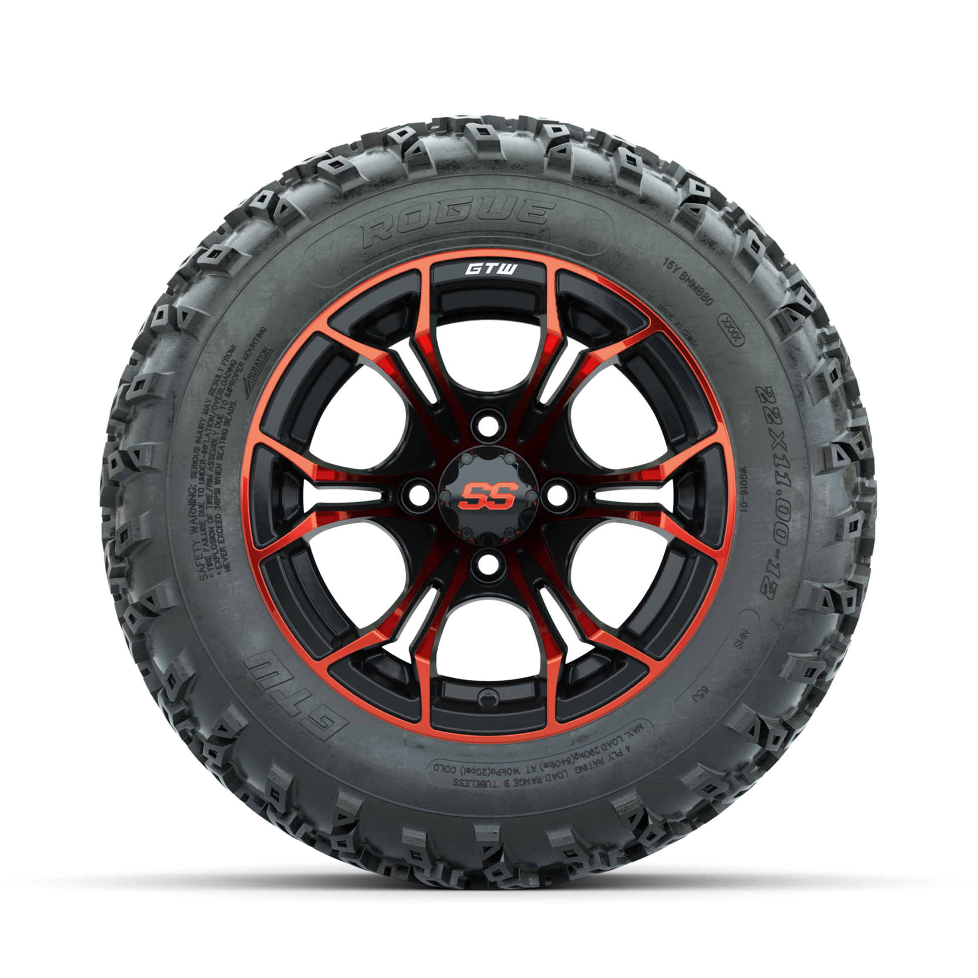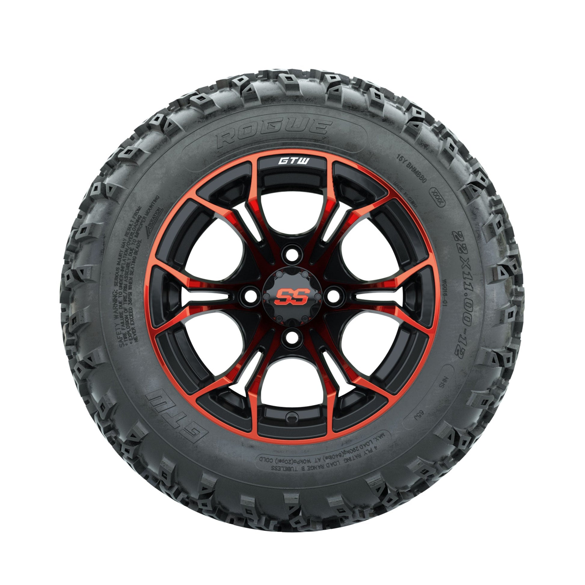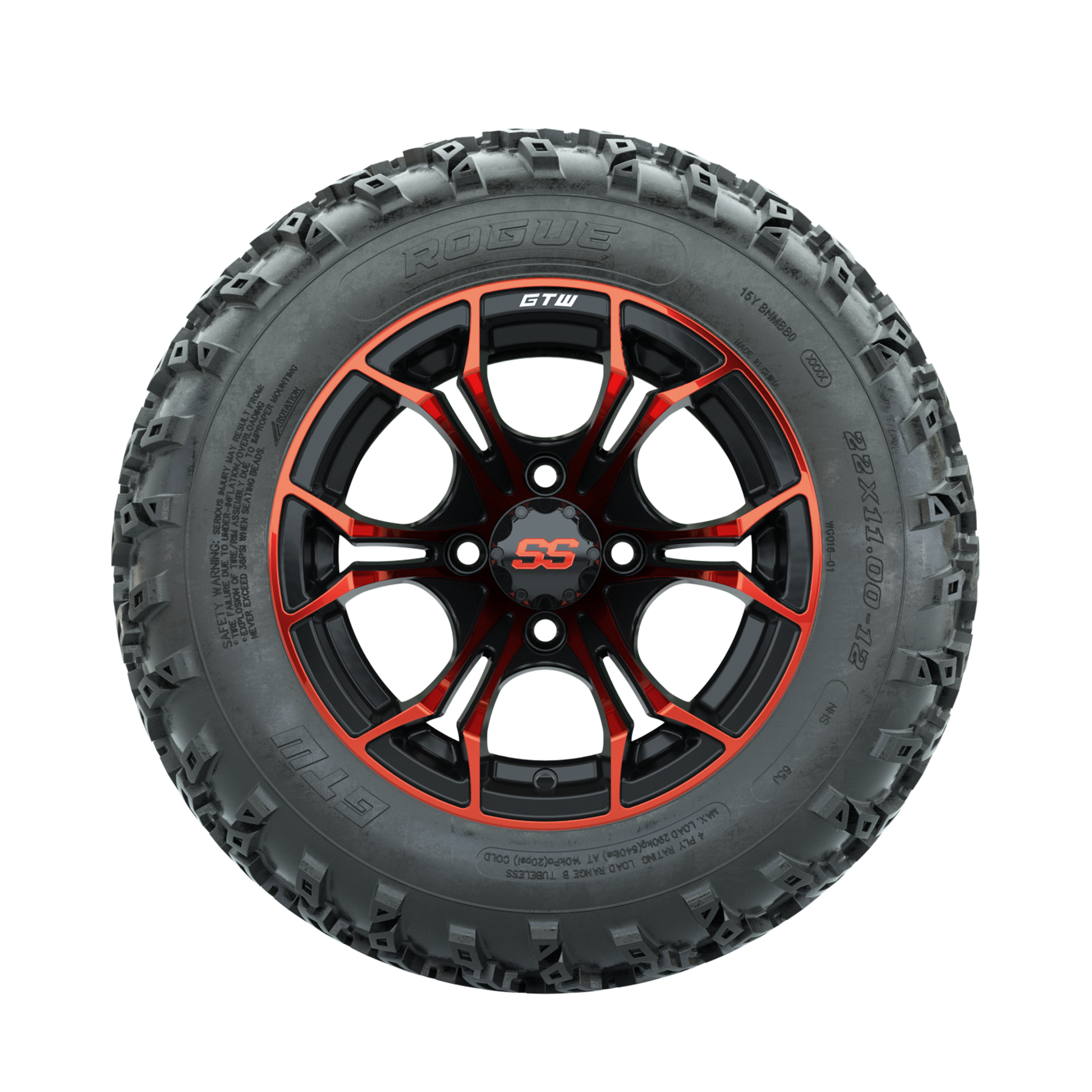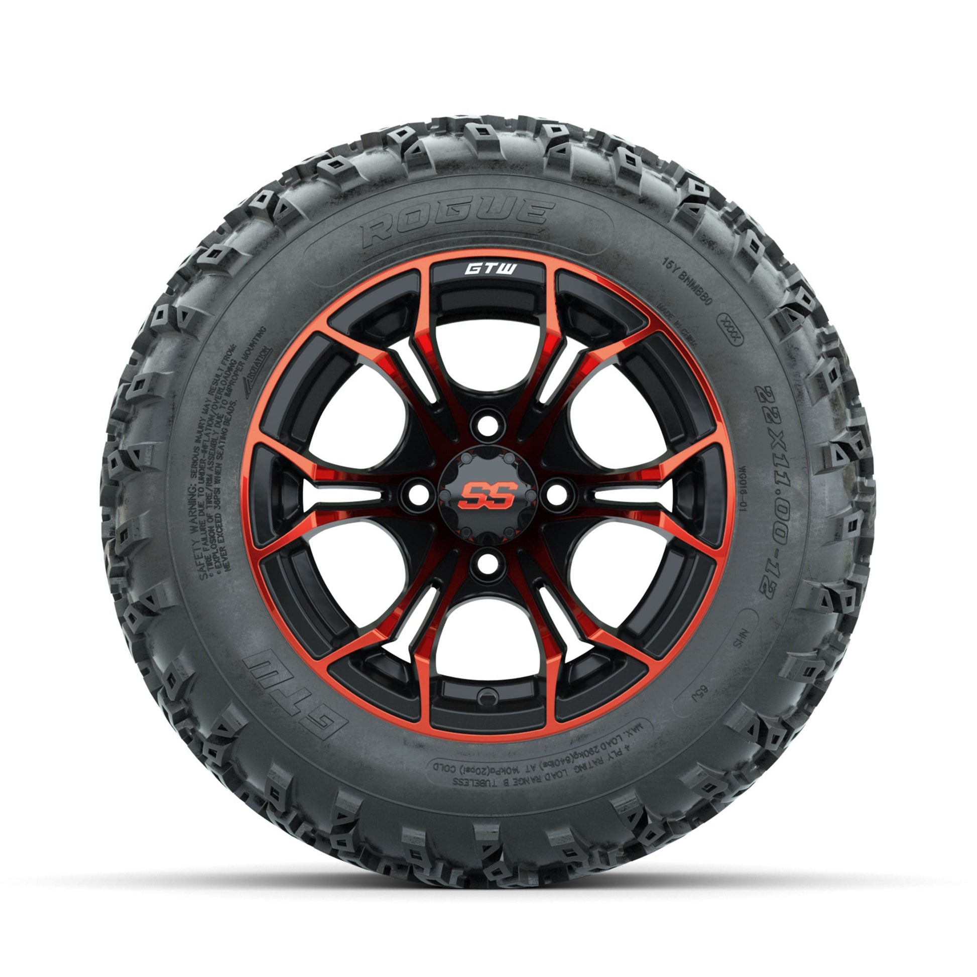 GTW Spyder Red/Black 12 in Wheels with 22x11.00-12 Rogue All Terrain Tires Full Set