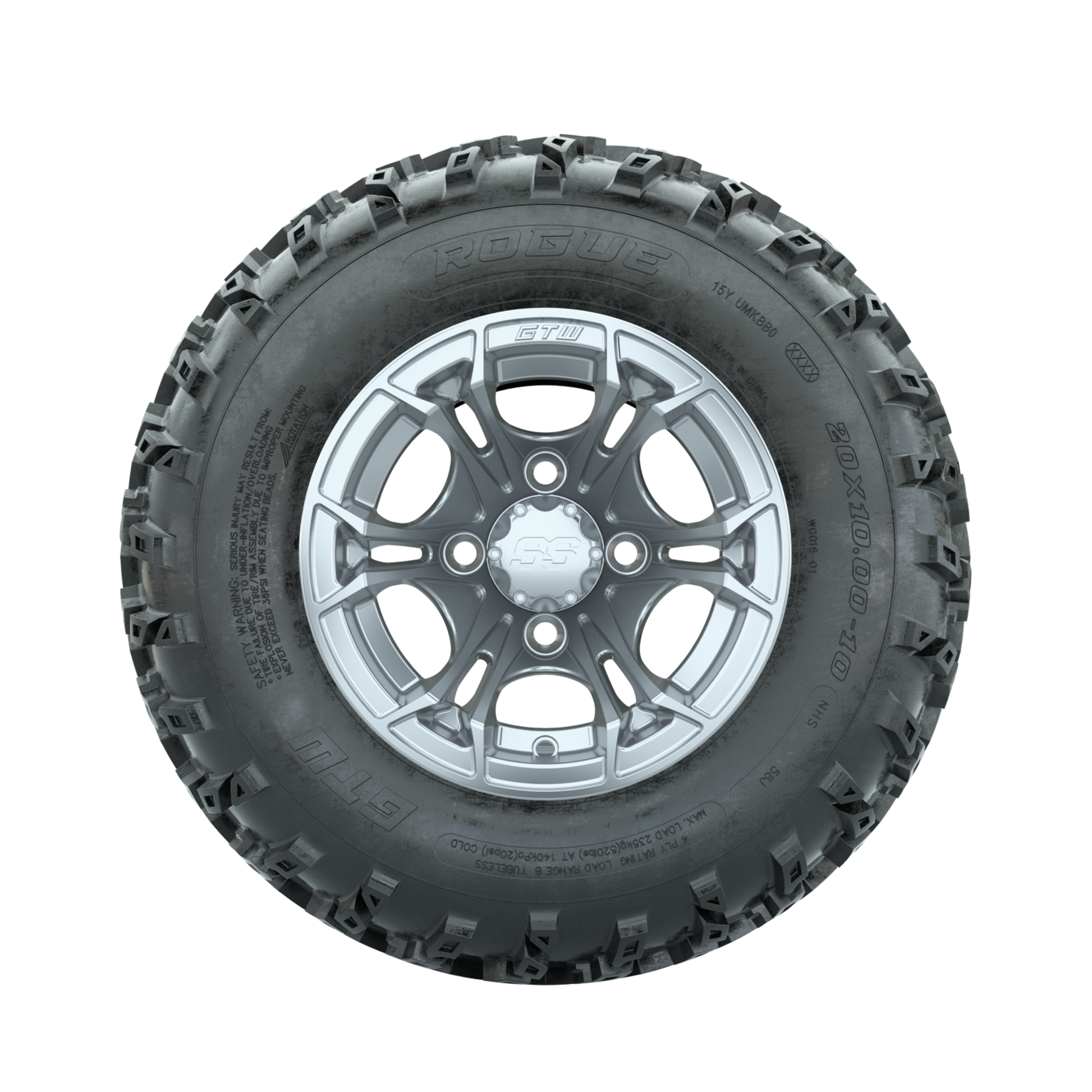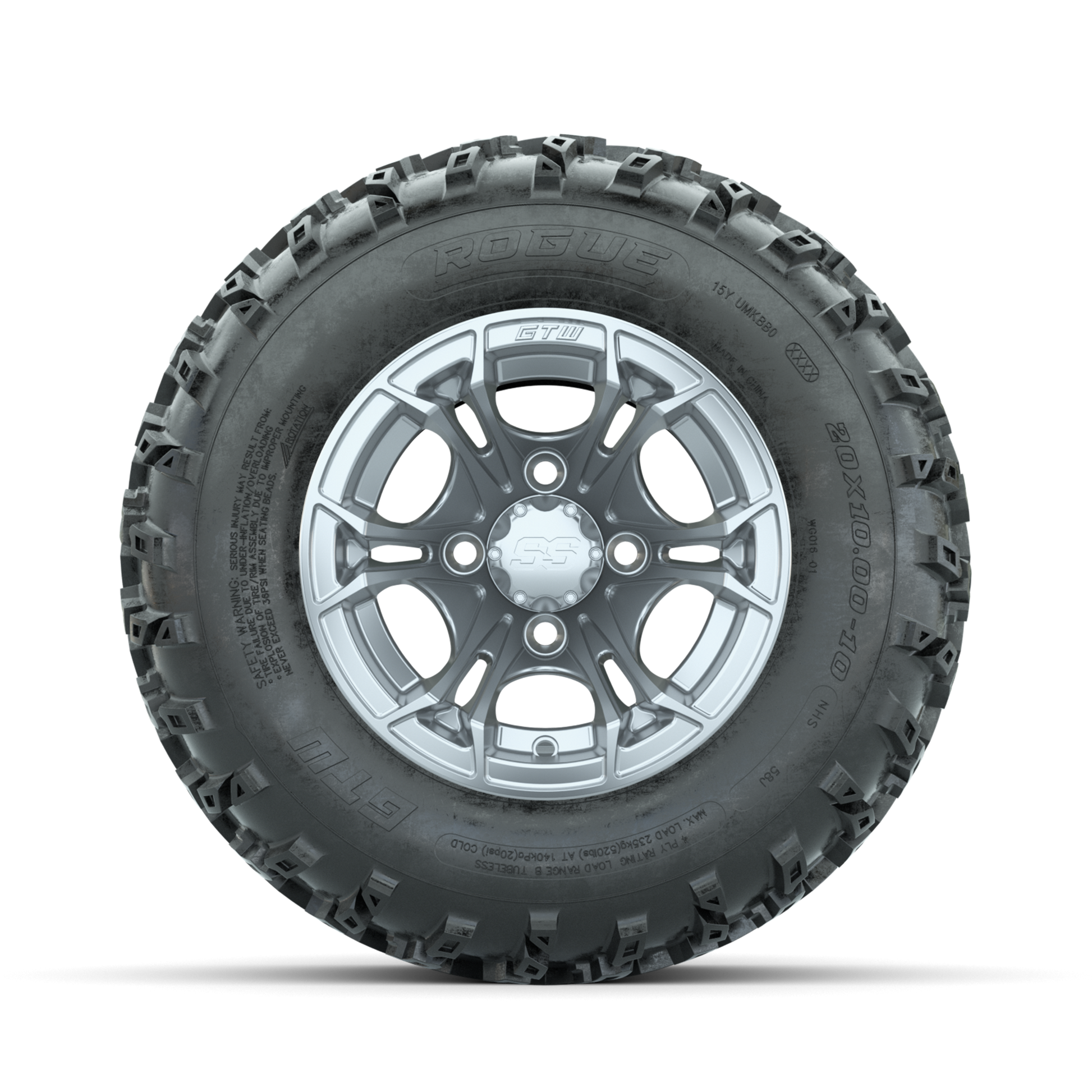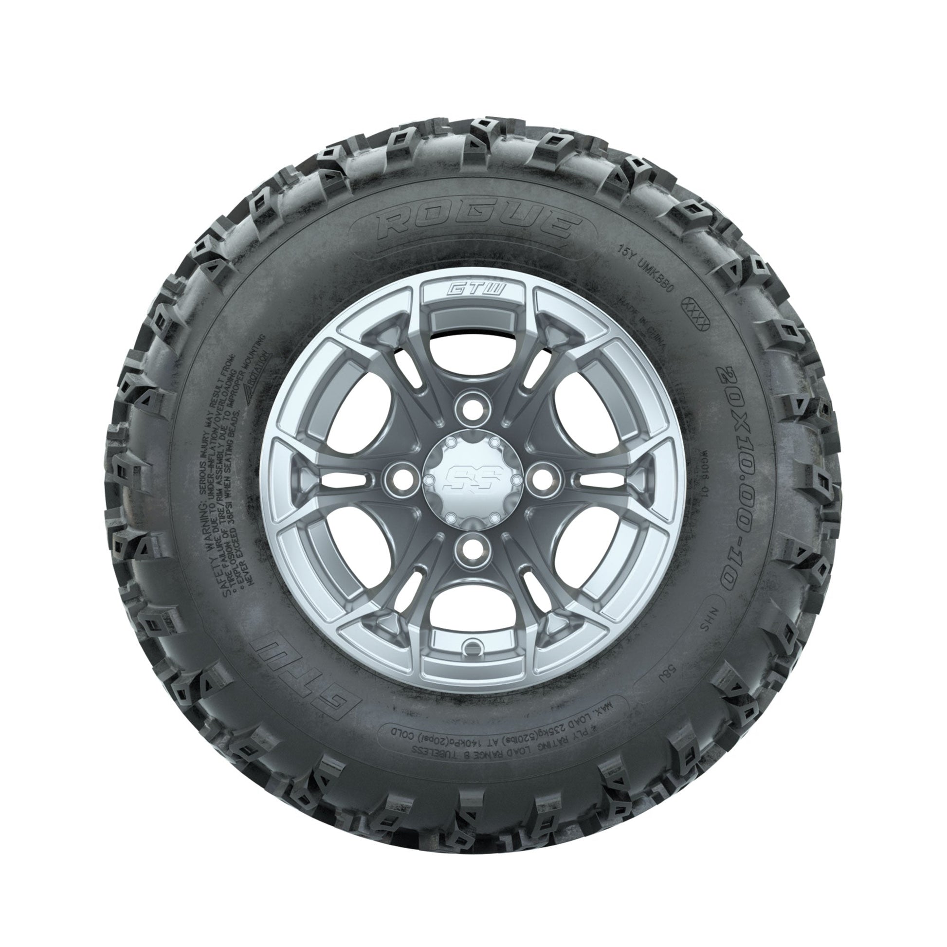 GTW Spyder Silver 10 in Wheels with 20x10.00-10 Rogue All Terrain Tires Full Set
