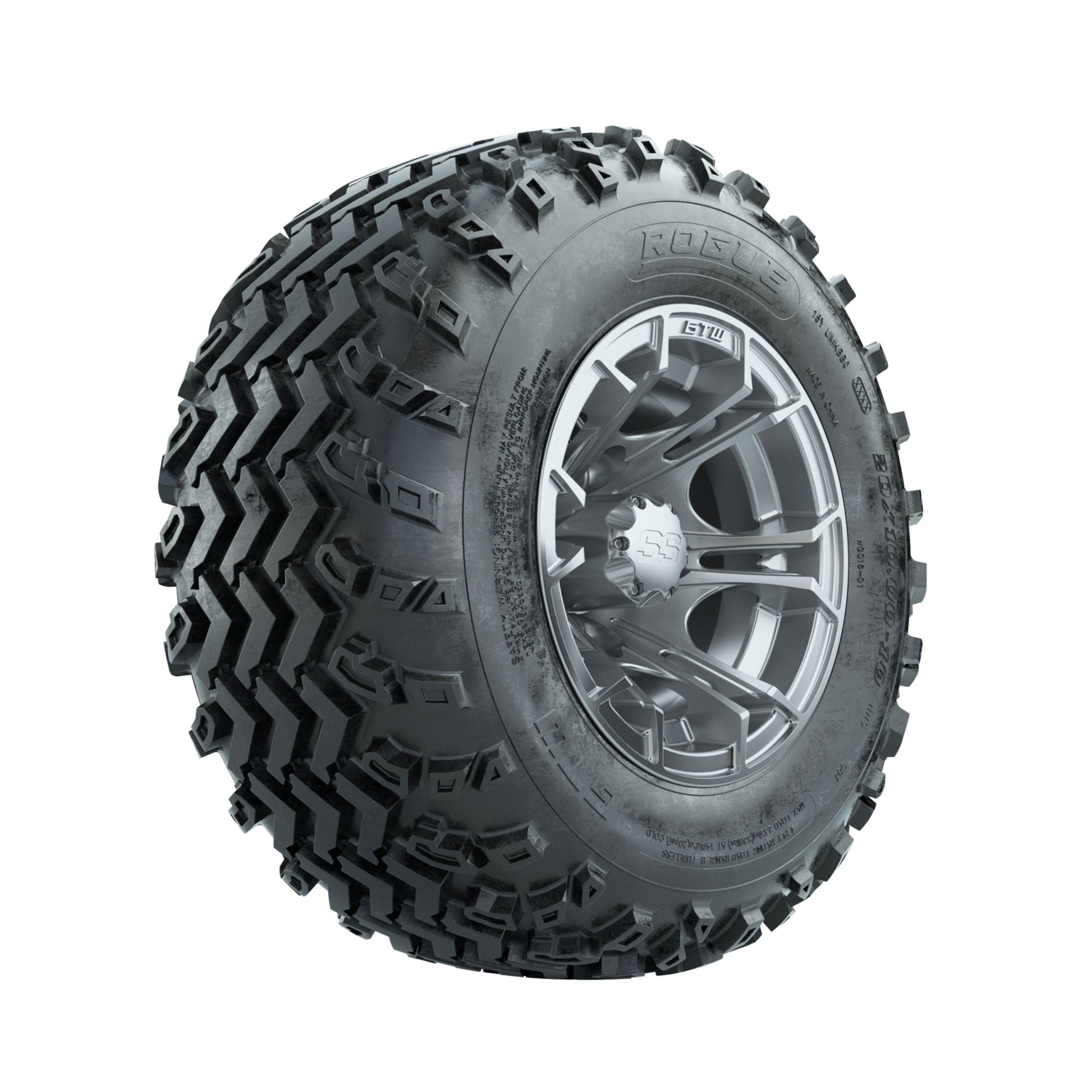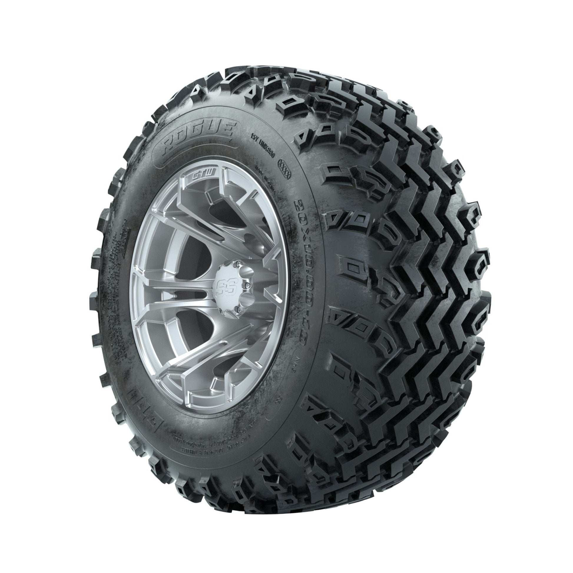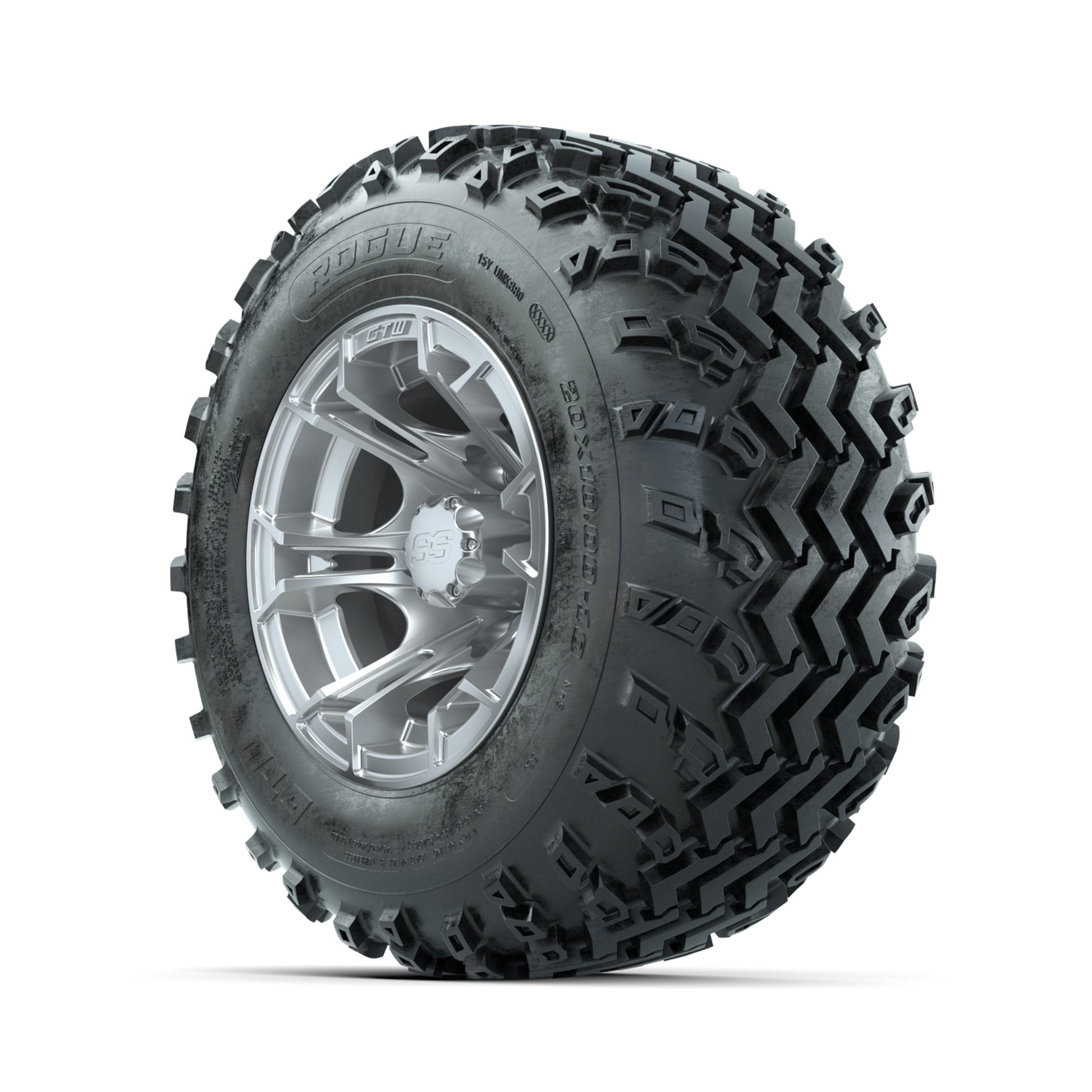 GTW Spyder Silver 10 in Wheels with 20x10.00-10 Rogue All Terrain Tires Full Set