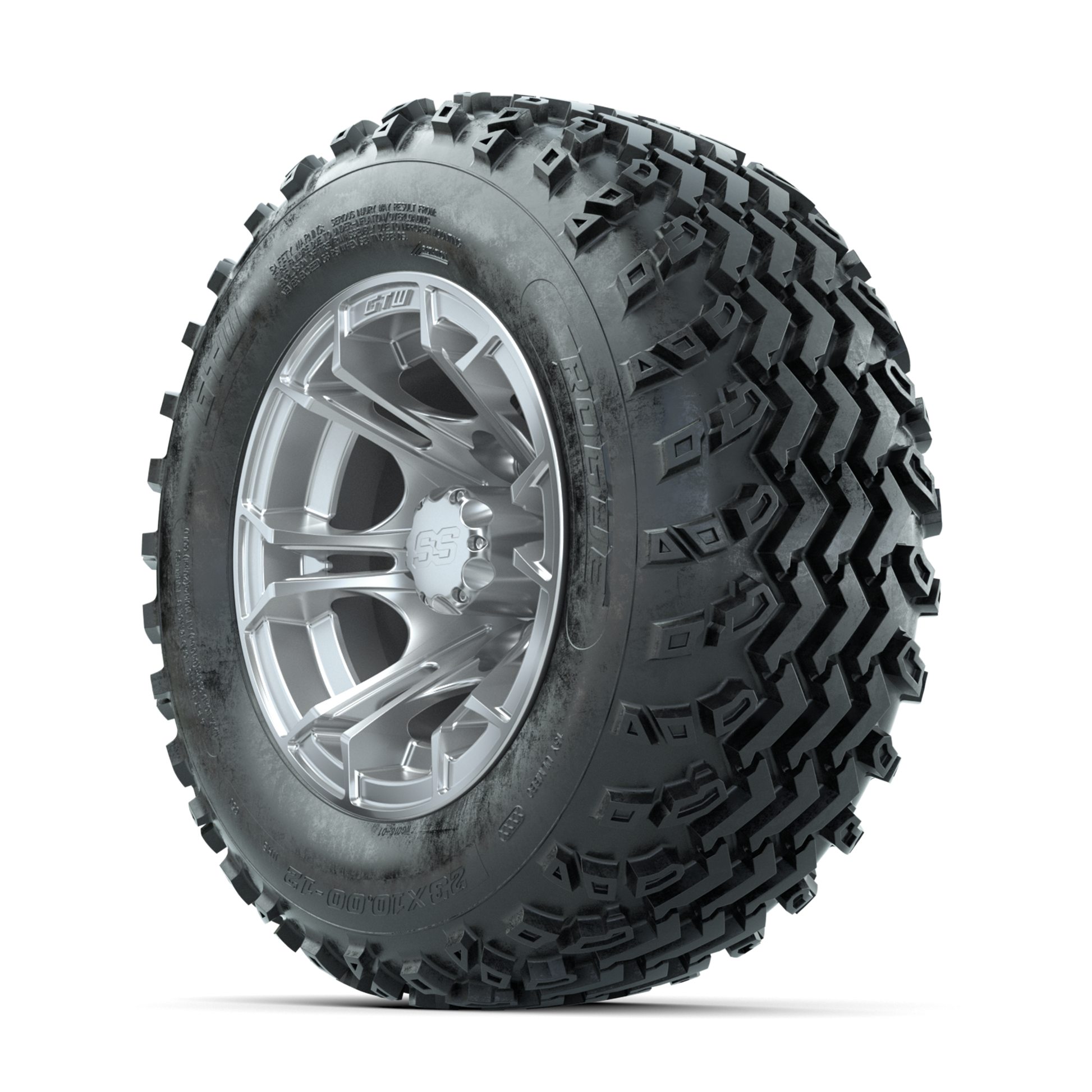 GTW Spyder Silver 12 in Wheels with 23x10.00-12 Rogue All Terrain Tires Full Set