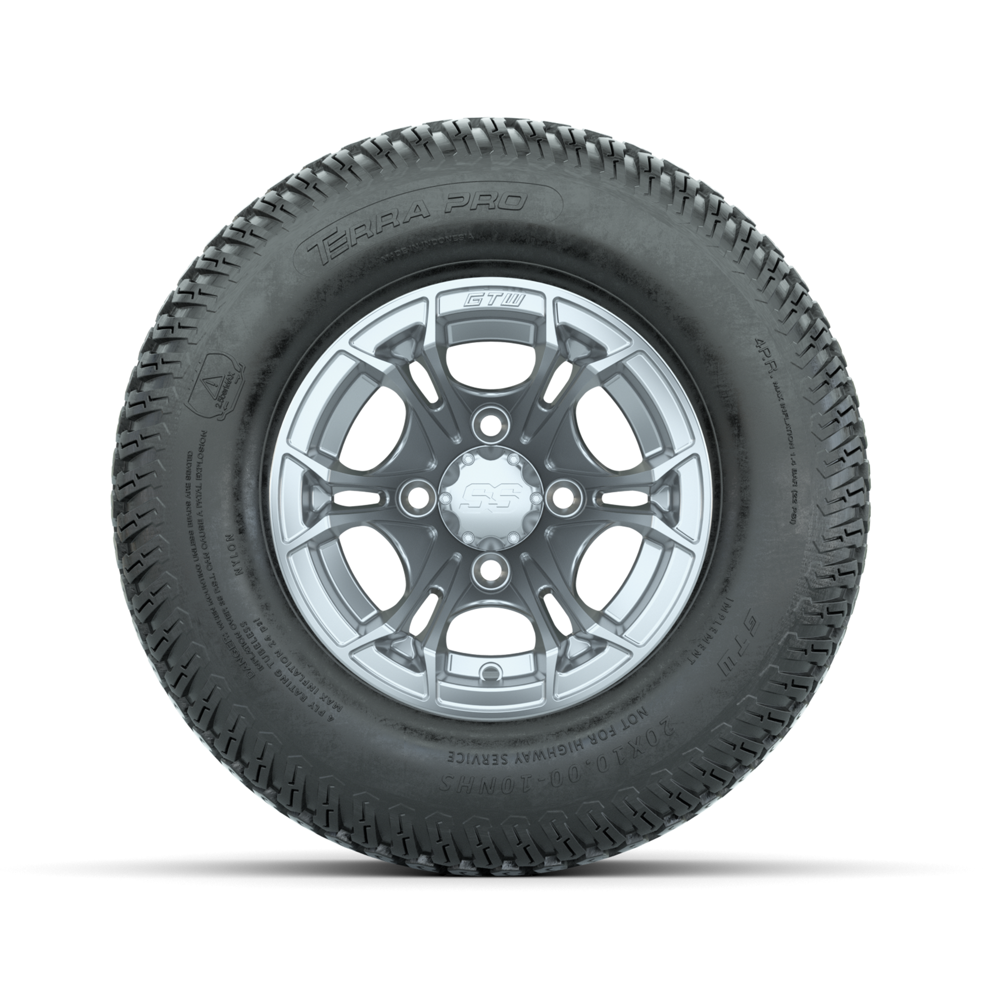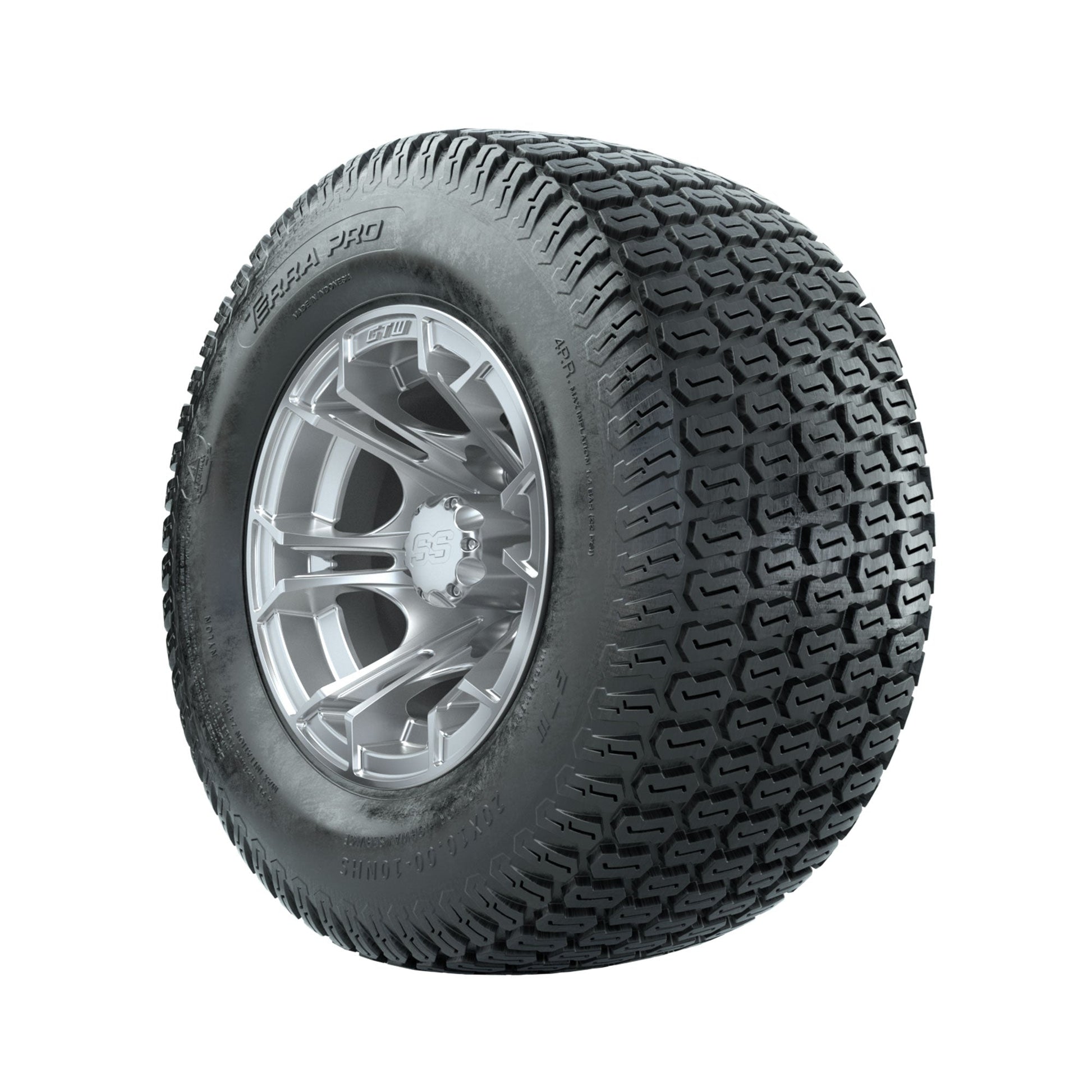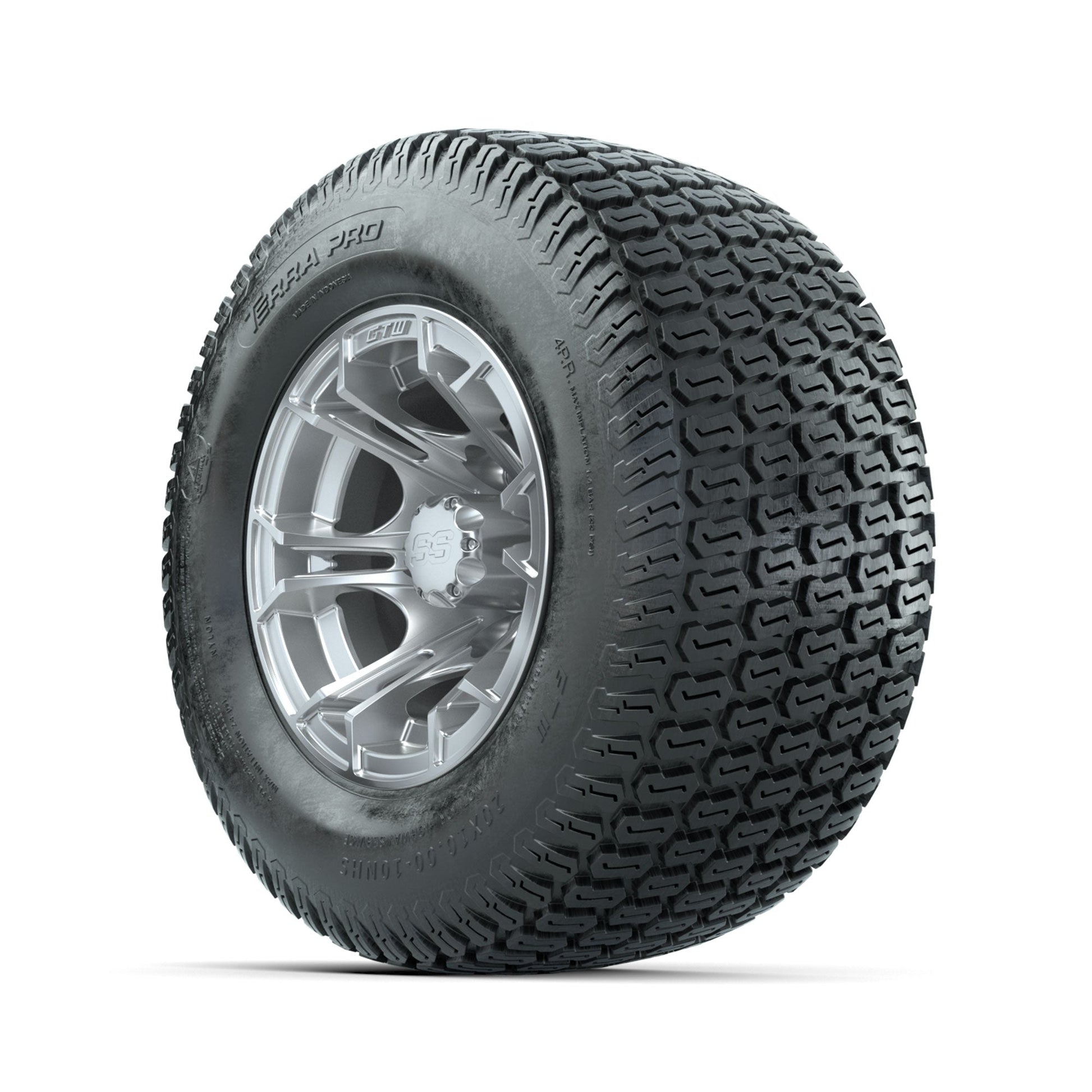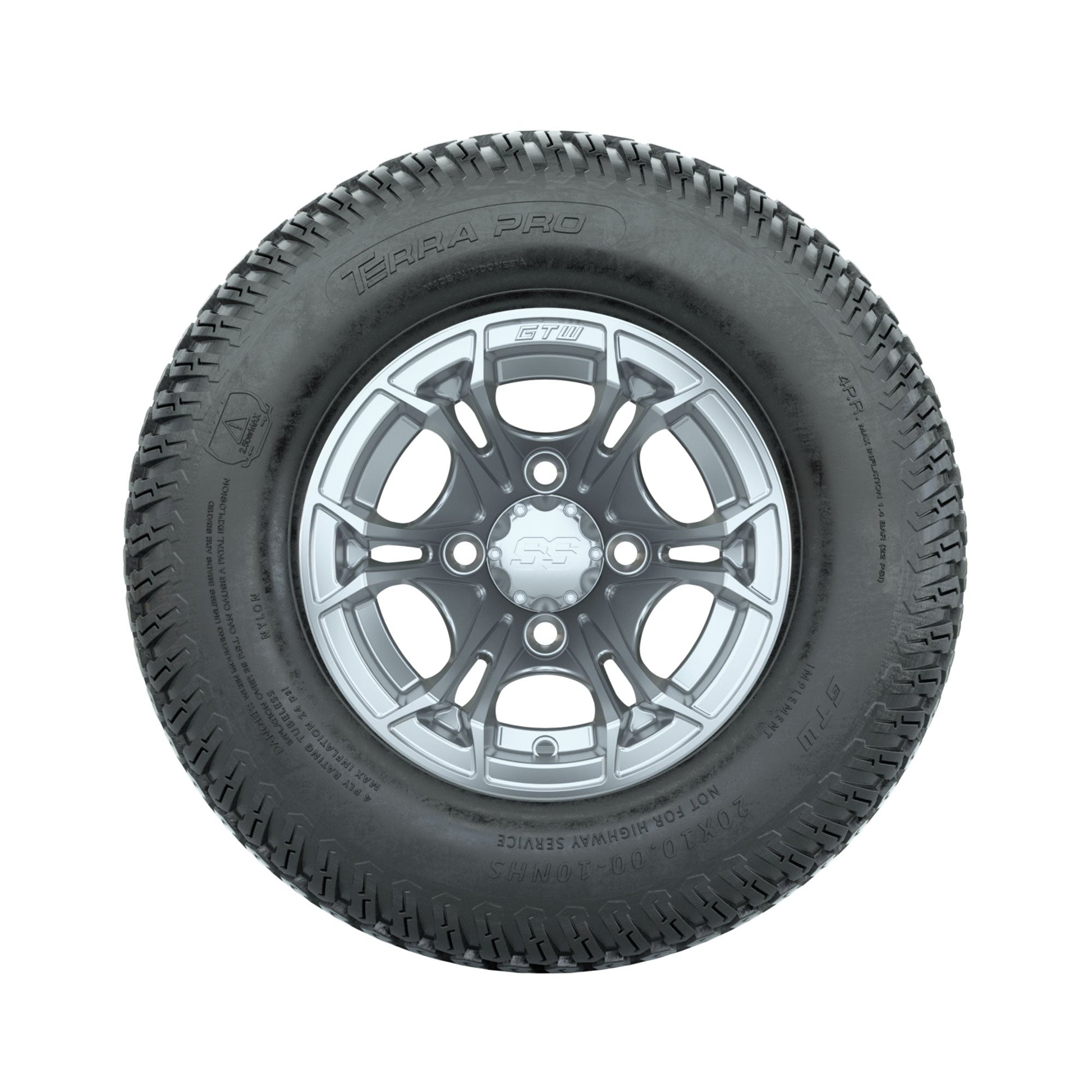 GTW Spyder Silver Brush 10 in Wheels with 20x10-10 Terra Pro S-Tread Traction Tires Full Set