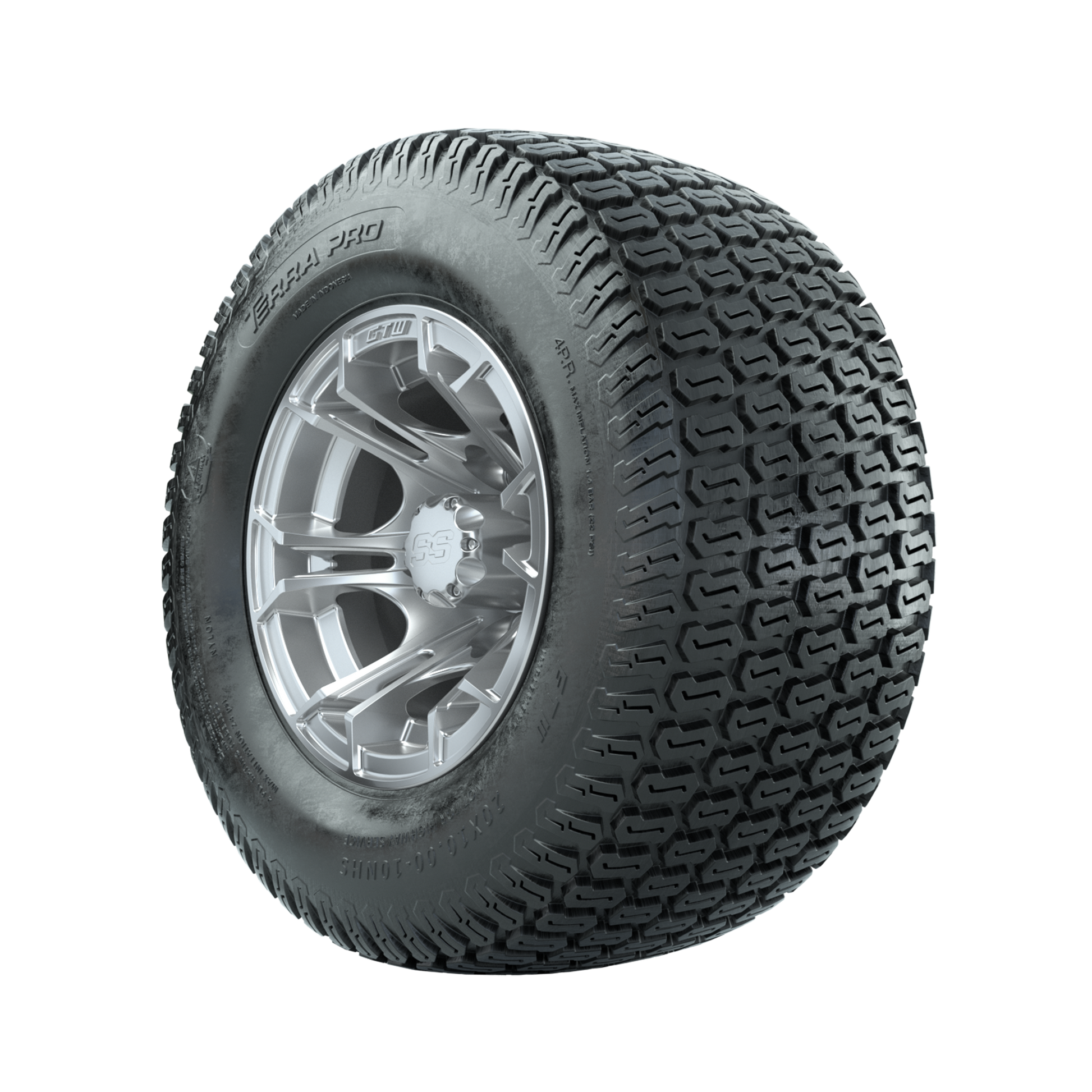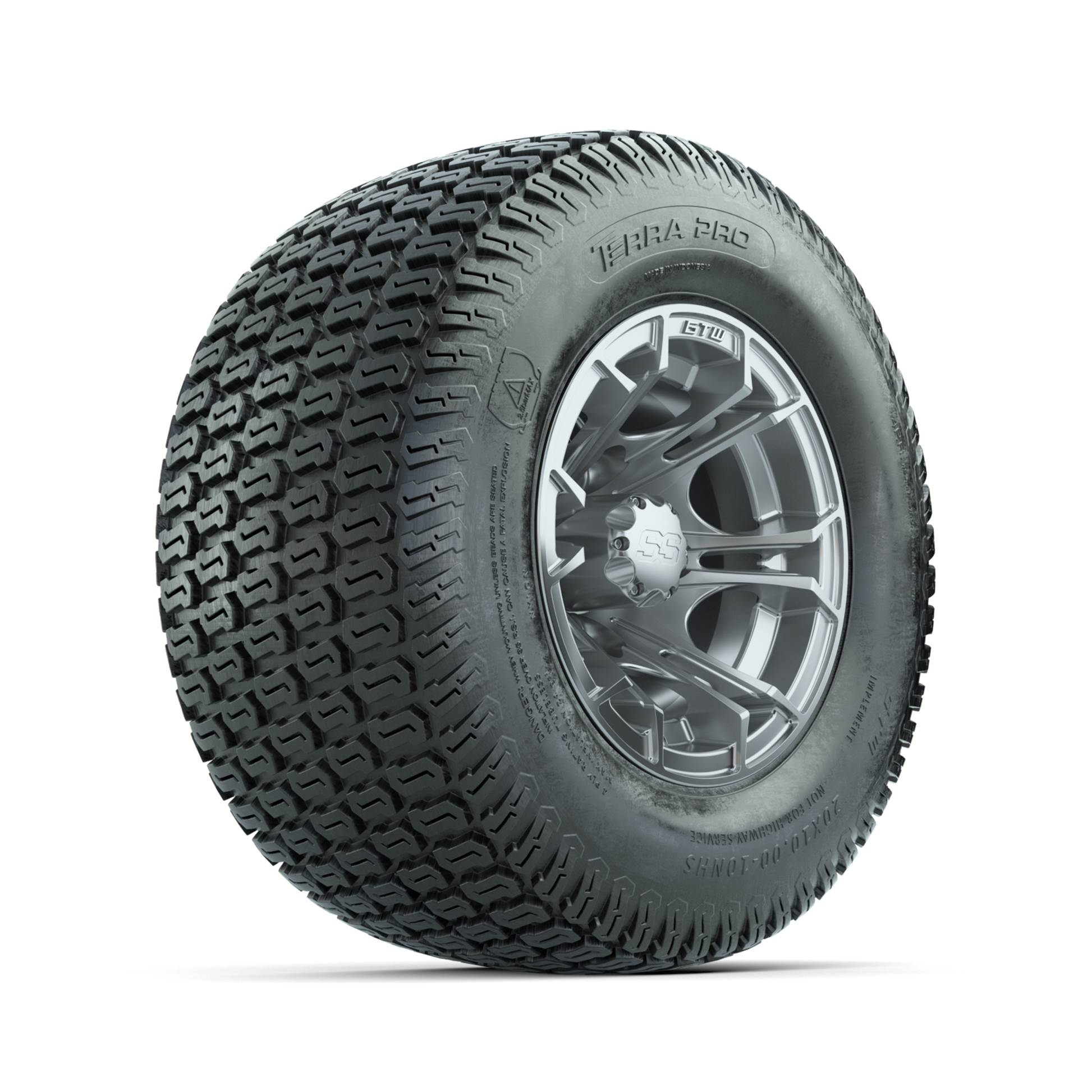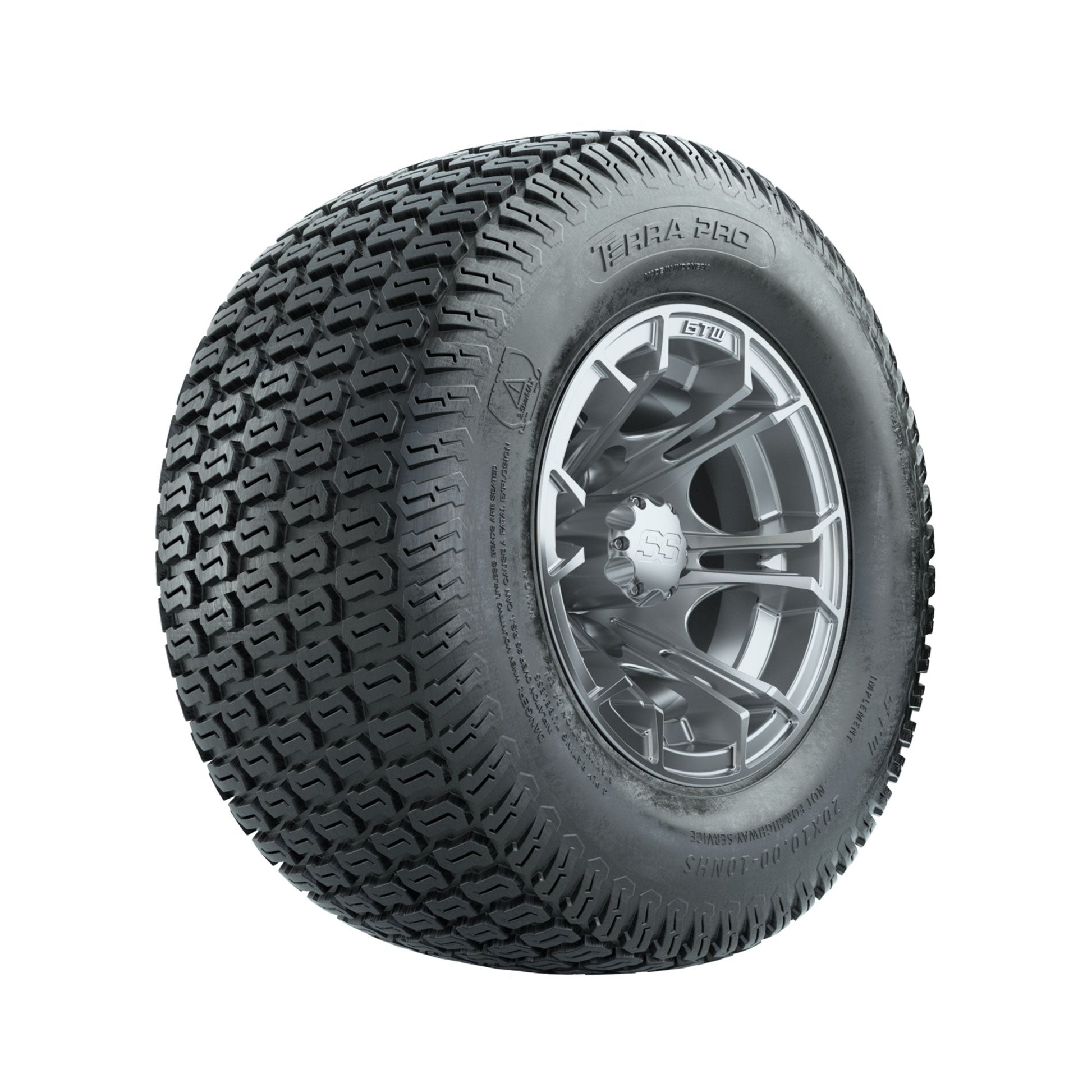 | Product Description: | A set of (4) 10-inch GTW-Spyder Silver Brush golf cart wheels Mounted on 20x10-10 Terra Pro S-Tread Traction Tires Tread Classification: Street / Golf Course Full Tire & Wheel Combo Includes: (4) 10x7 GTW Spyder Wheels / Silver Brush finish / Offset: 3:4 (ET -.25) (4) 20x10-10 GTW Terra Pro S-Tread Traction Tires / Tire is approx. 20- tall (4-Ply) (4) Center caps Please Note: All Wheels are 4 on 4 Hole / Lug Pattern unless otherwise specified. Tech Tips: We Recommend a Minimum 3- Lift Kit for This Tire & Wheel Combo (Tire is approx. 20- OD) Please Check and Adjust PSI in Tires Before Operation (Recommended Inflation Can Be Found on Sidewall of Tire) Tire & Wheel Combos are mounted and Inflated Before Shipping, Free of Charge All Wheels Have a lug pattern of "4x101.6mm" Lug Nuts Sold Separately: Standard Chrome Lug Nuts #LUG4S Metric Chrome Lug Nuts #LUG4M (Yamaha Models) |