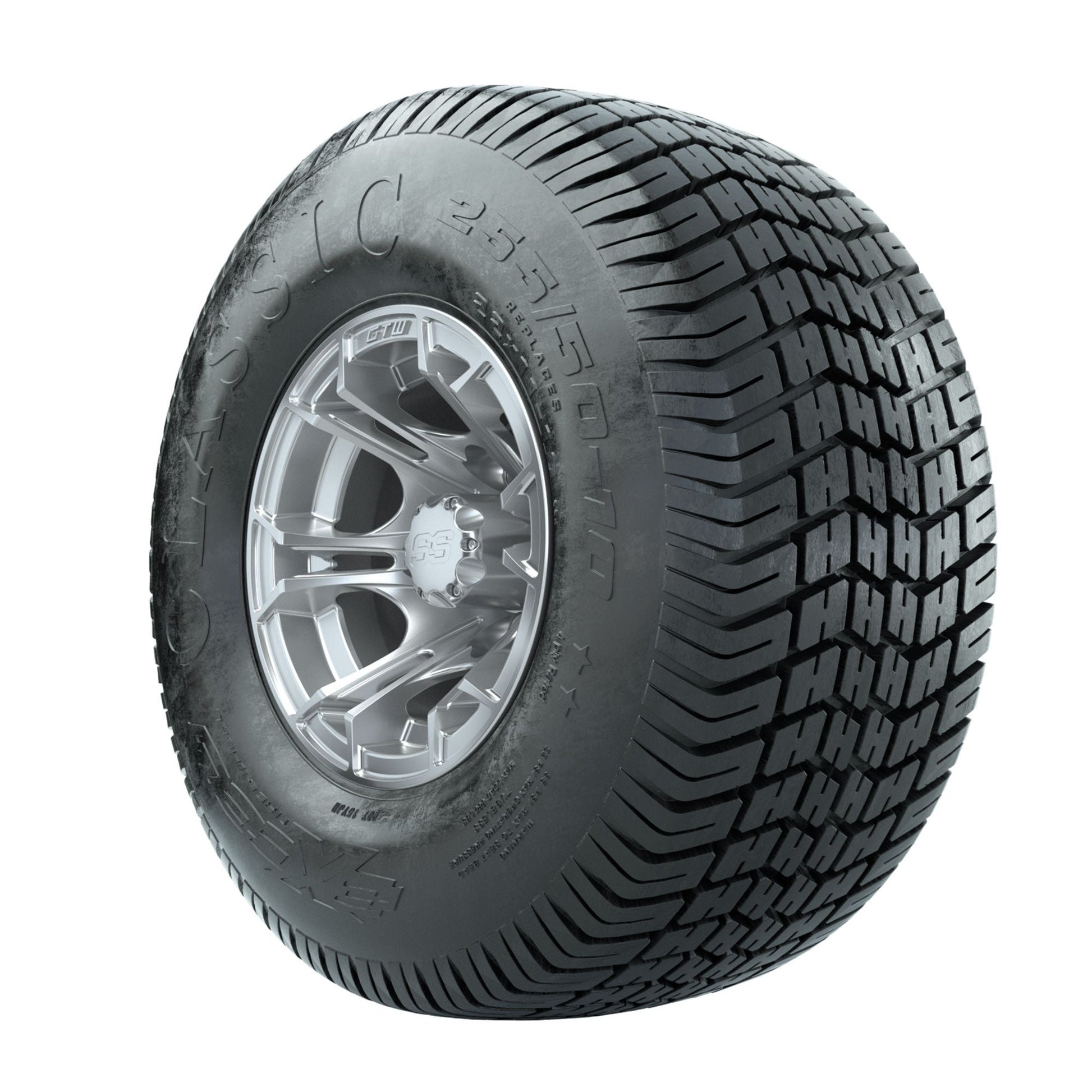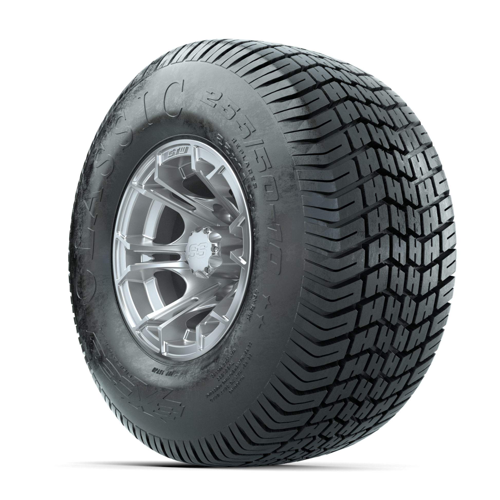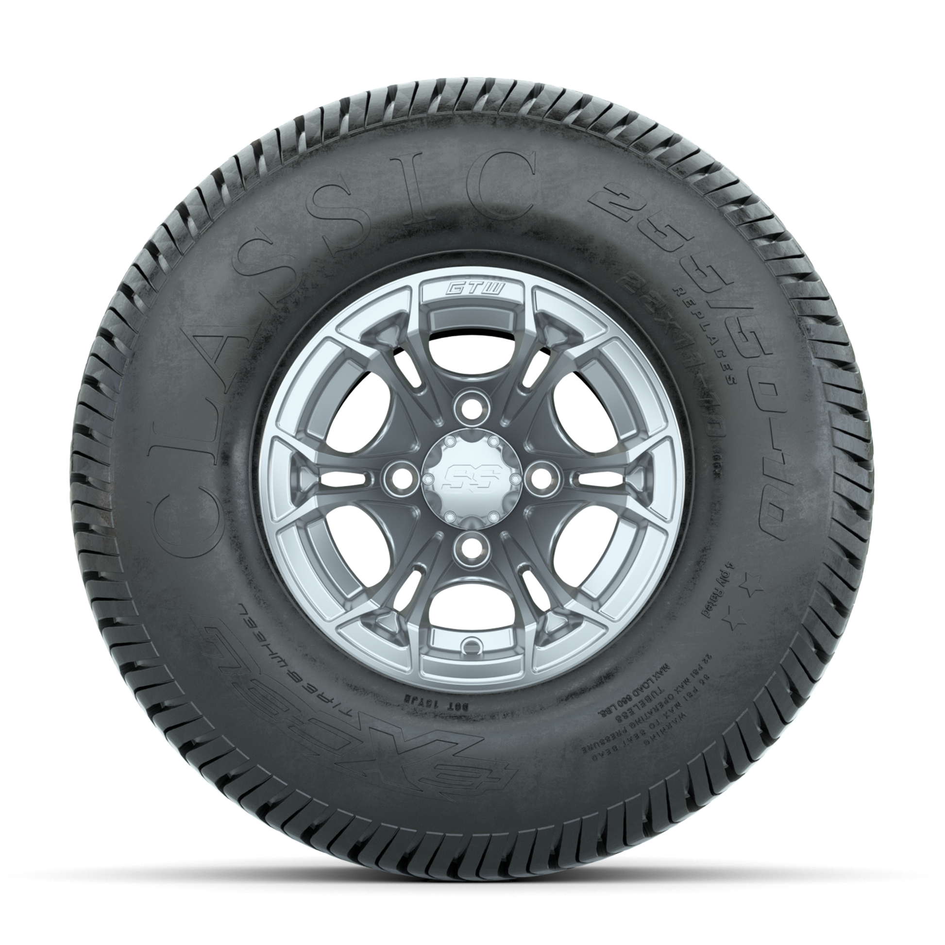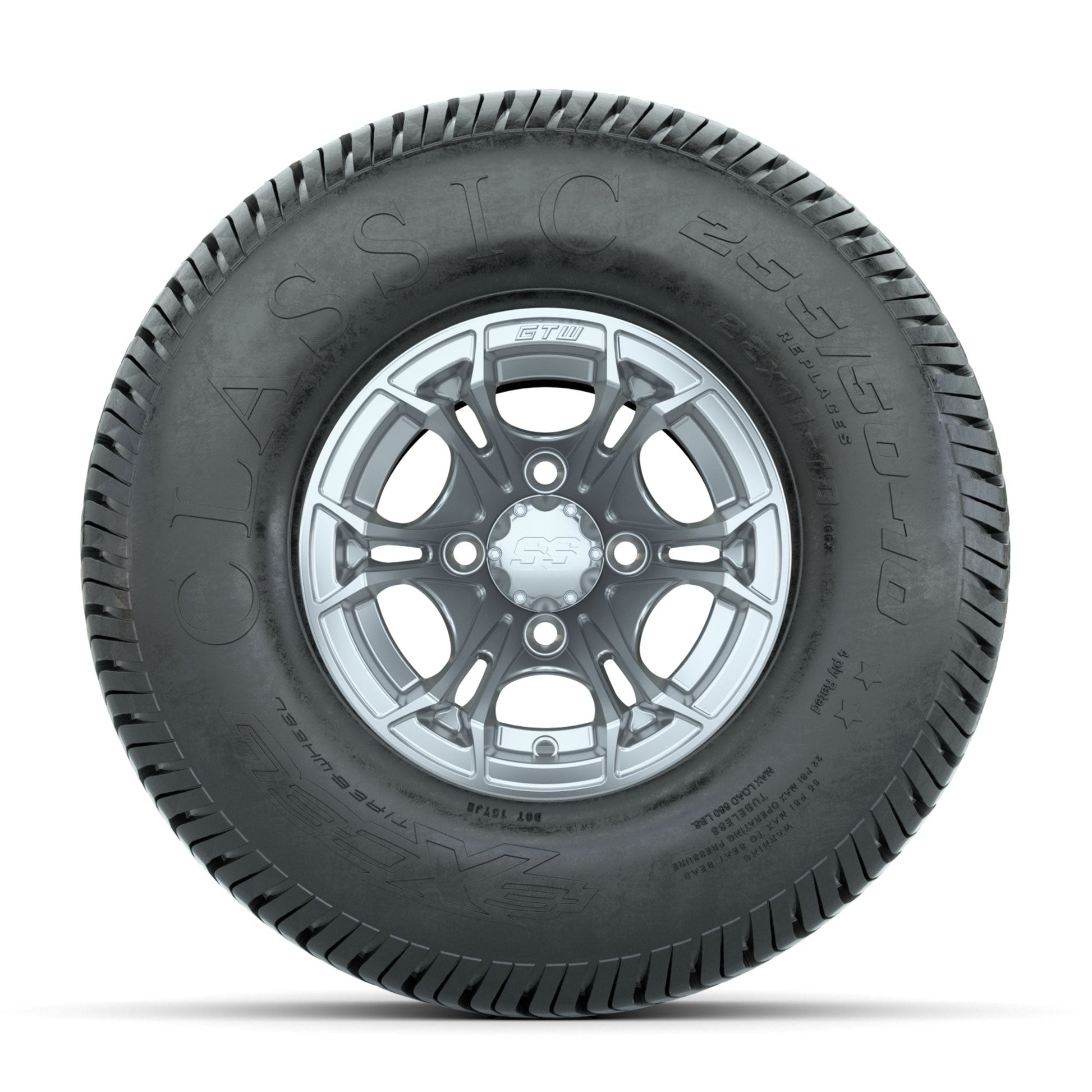 GTW Spyder Silver Brush 10 in Wheels with 22x11-10 Excel Classic Street Tires Full Set