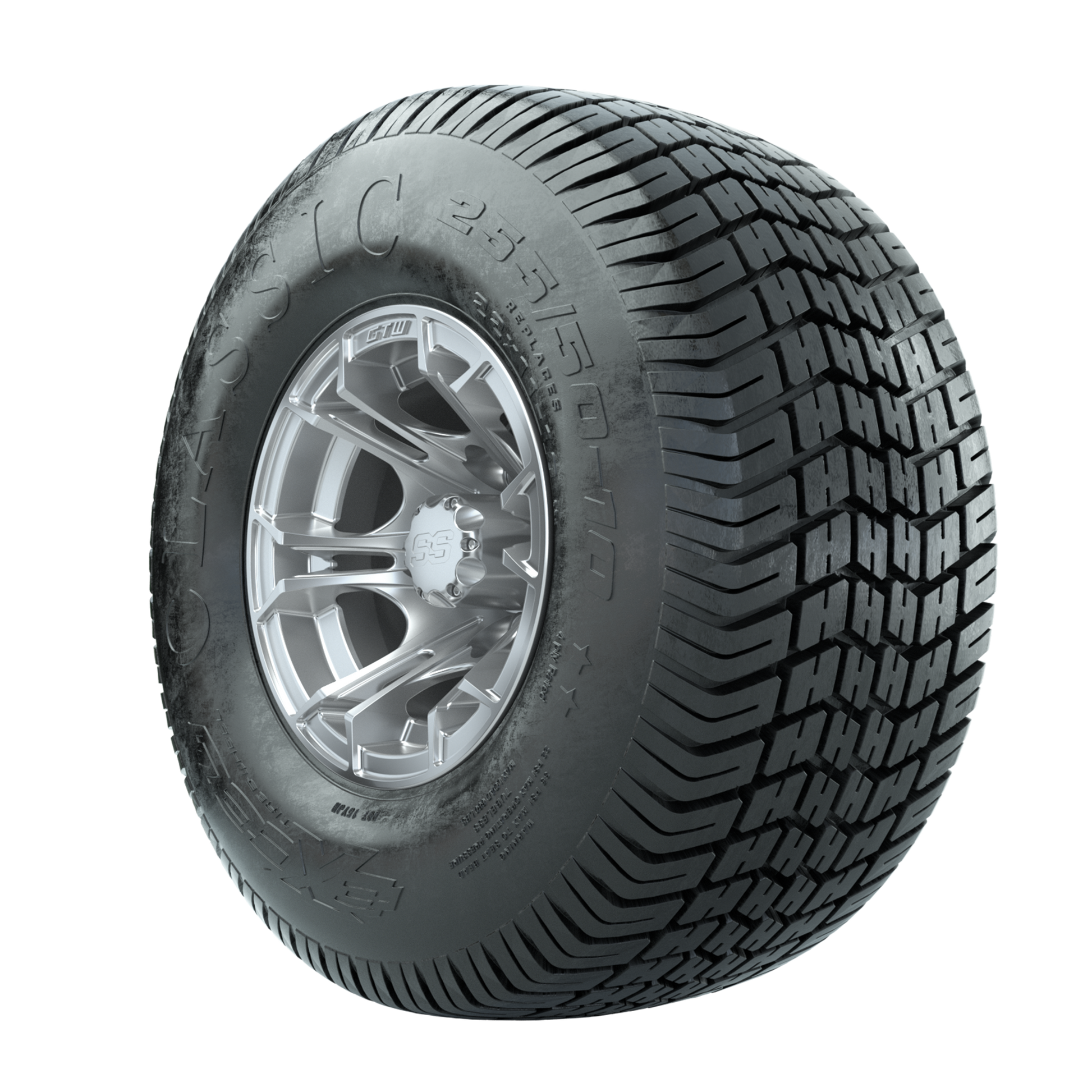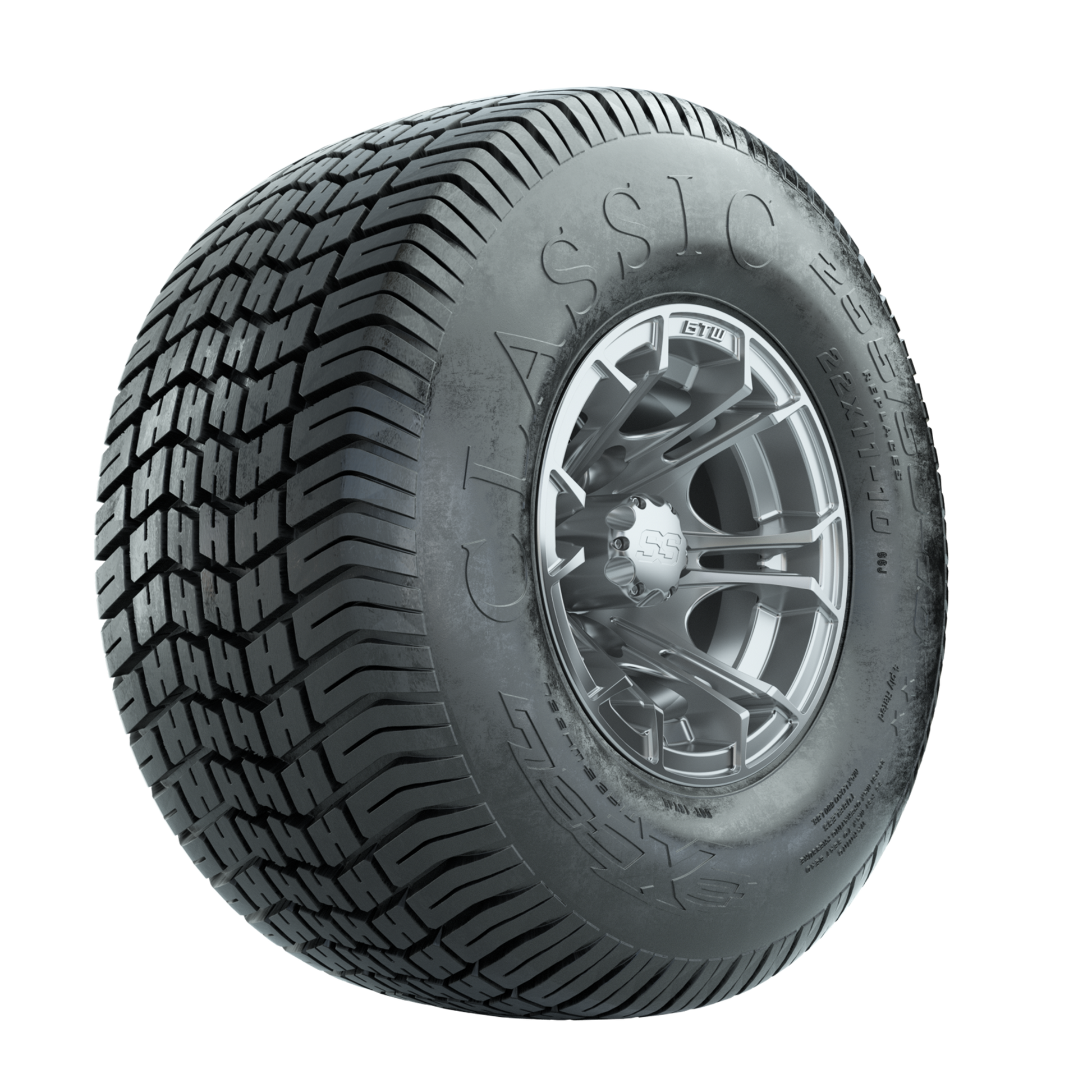 | Product Description: | A set of (4) 10-inch GTW-Spyder Silver Brush golf cart wheels Mounted on 22x11-10 Excel Classic Street Tires Tread Classification: Street / Golf Course Full Tire & Wheel Combo Includes: (4) 10x7 GTW Spyder Wheels / Silver Brush finish / Offset: 3:4 (ET -.25) (4) 22x11-10 Excel Classic Street Tires / Tire is approx. 22- tall (4-Ply) (4) Center caps Please Note: All Wheels are 4 on 4 Hole / Lug Pattern unless otherwise specified. Tech Tips: We Recommend a Minimum 3- Lift Kit for This Tire & Wheel Combo (Tire is approx. 22- OD) Please Check and Adjust PSI in Tires Before Operation (Recommended Inflation Can Be Found on Sidewall of Tire) Tire & Wheel Combos are mounted and Inflated Before Shipping, Free of Charge All Wheels Have a lug pattern of "4x101.6mm" Lug Nuts Sold Separately: Standard Chrome Lug Nuts #LUG4S Metric Chrome Lug Nuts #LUG4M (Yamaha Models) |