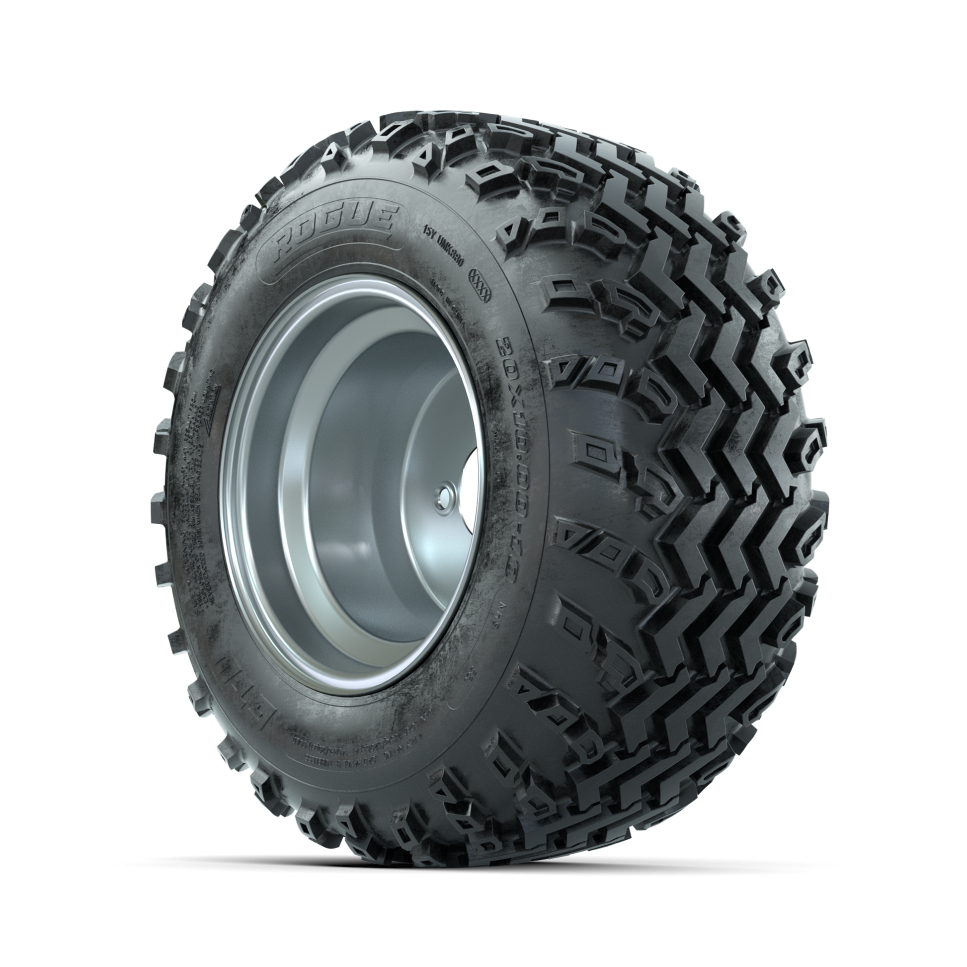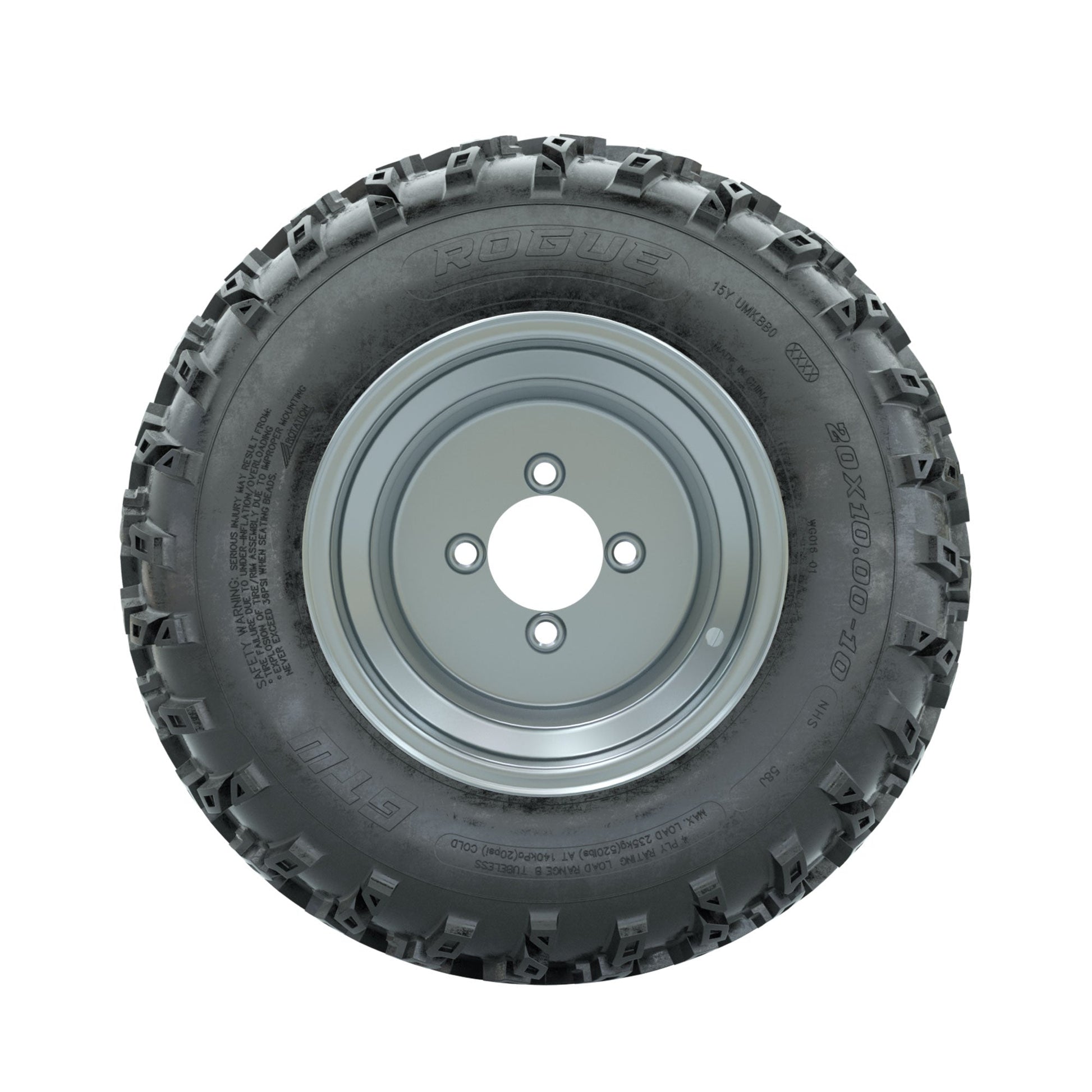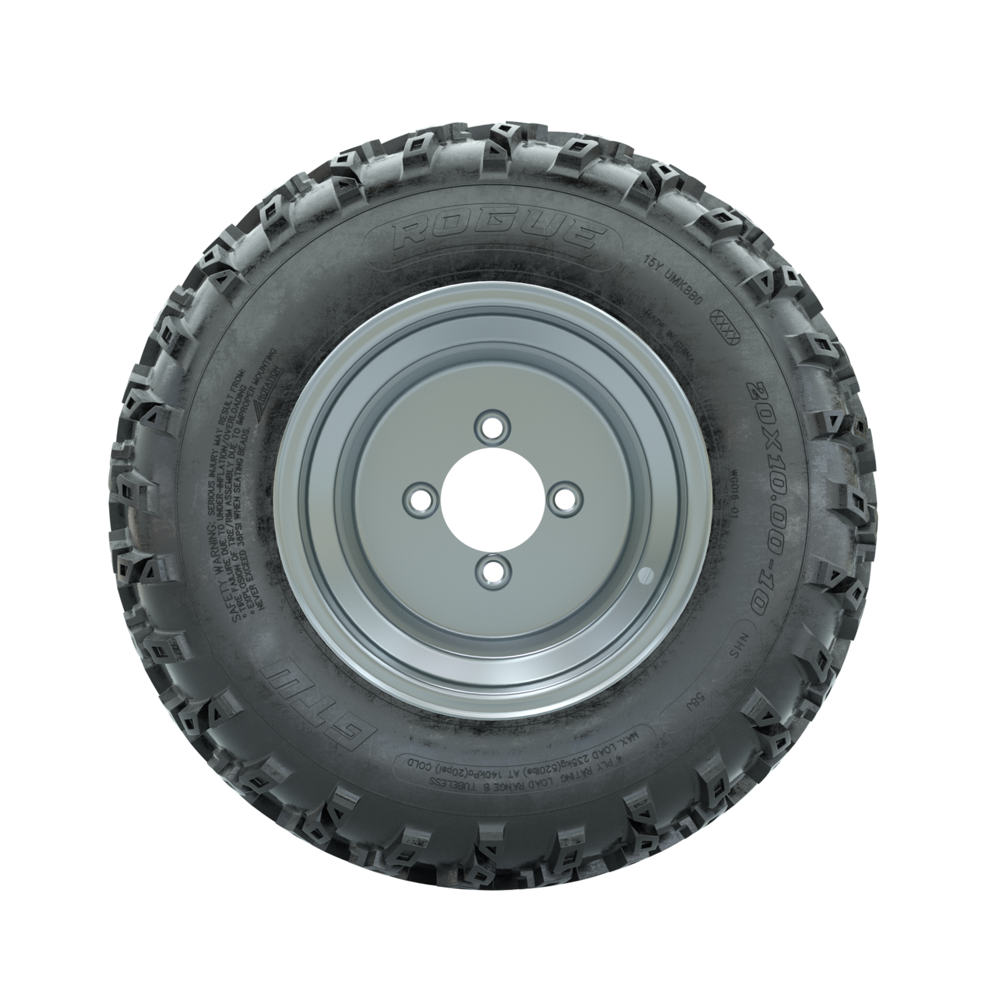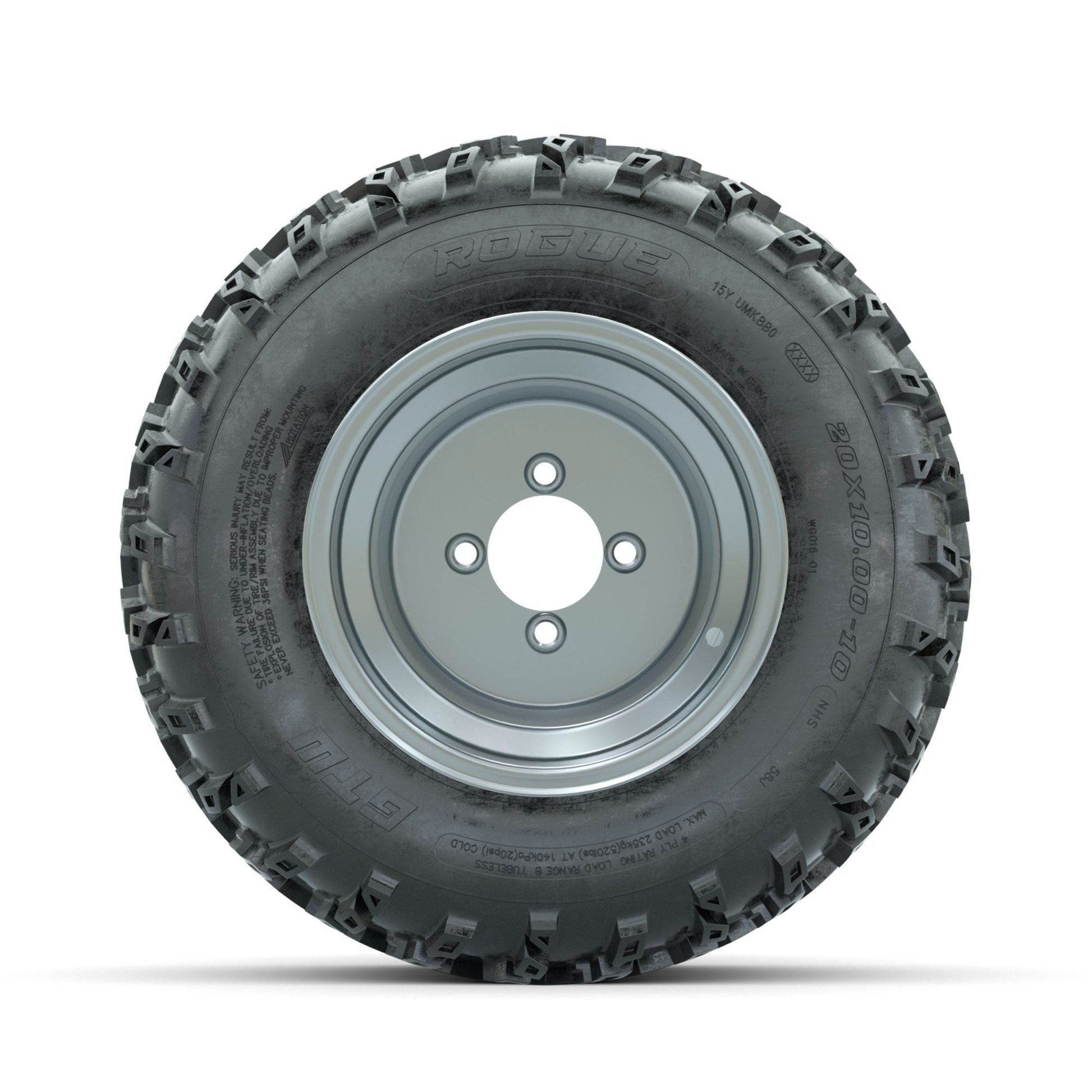 GTW Steel Silver 3:5 Offset 10 in Wheels with 20x10.00-10 Rogue All Terrain Tires Full Set