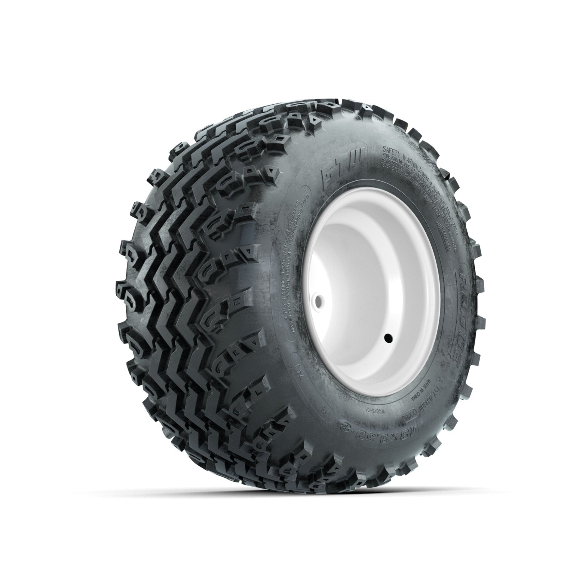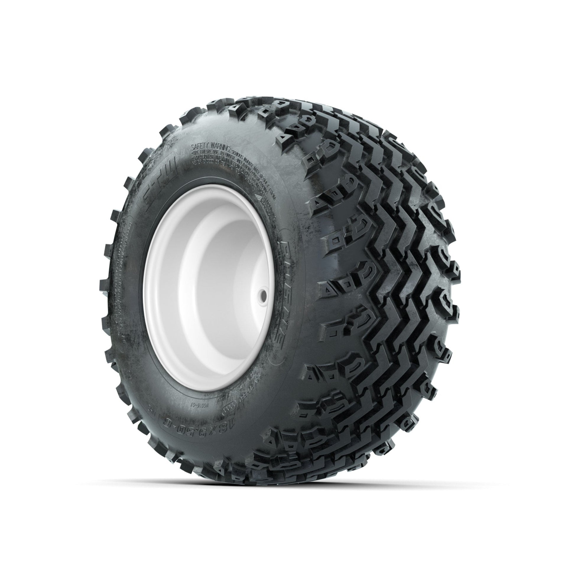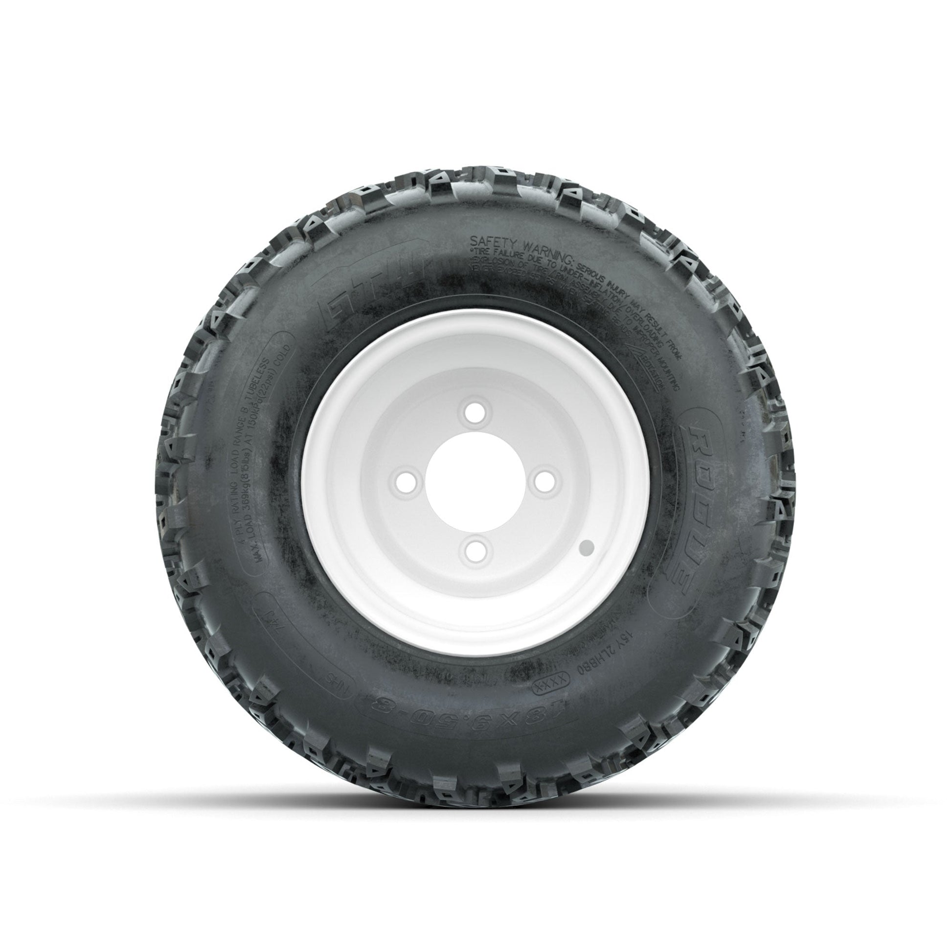 GTW Steel White 2:5 Offset 8 in Wheels with 18x9.50-8 Rogue All Terrain Tires Full Set