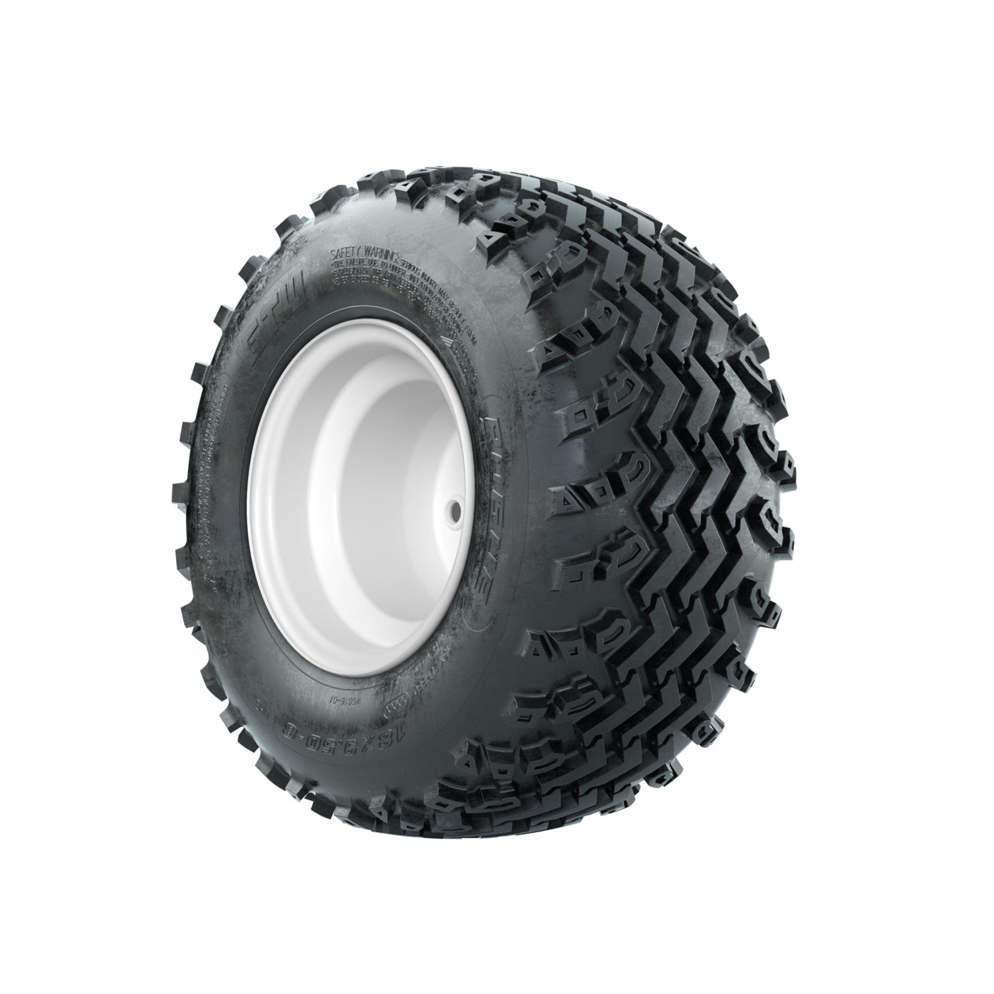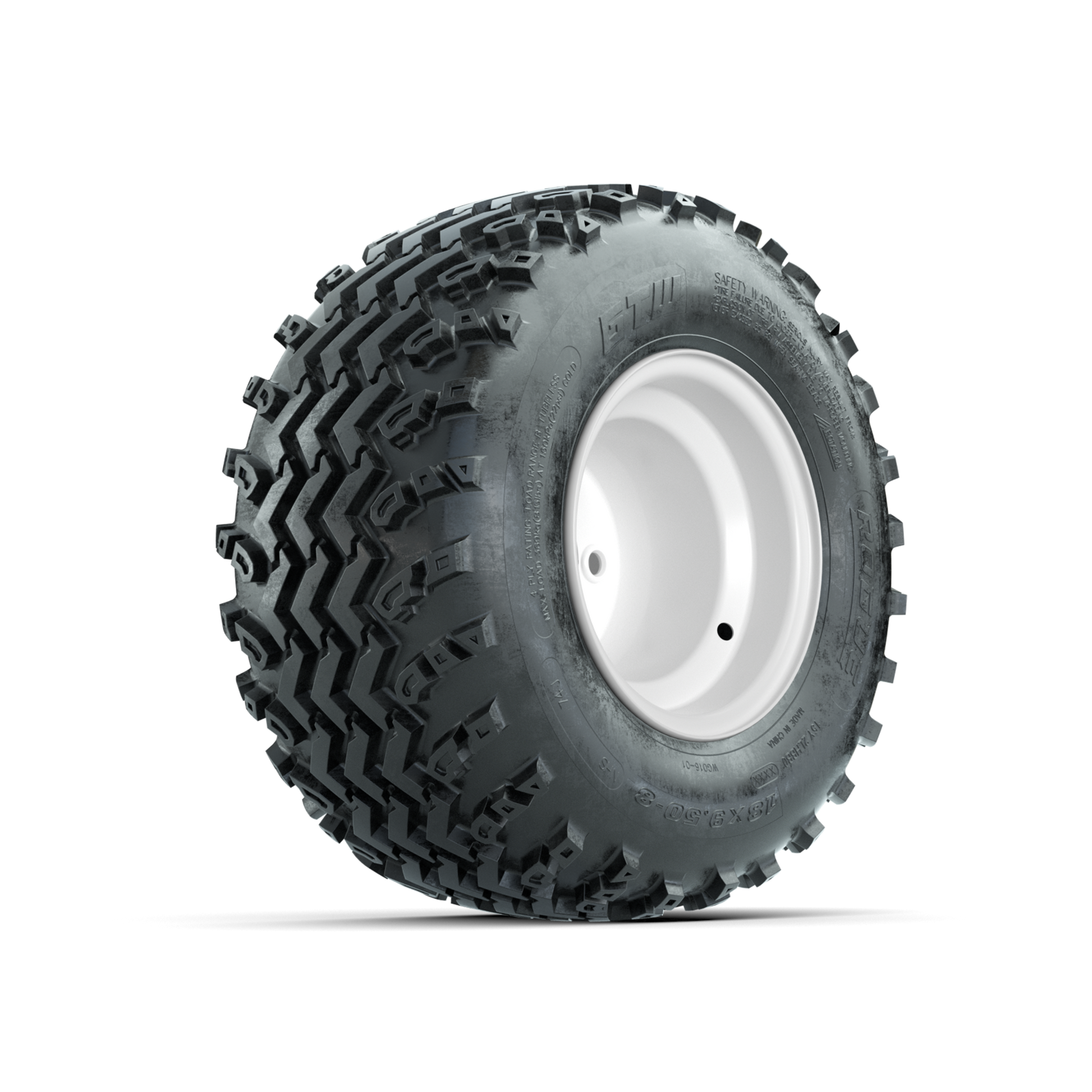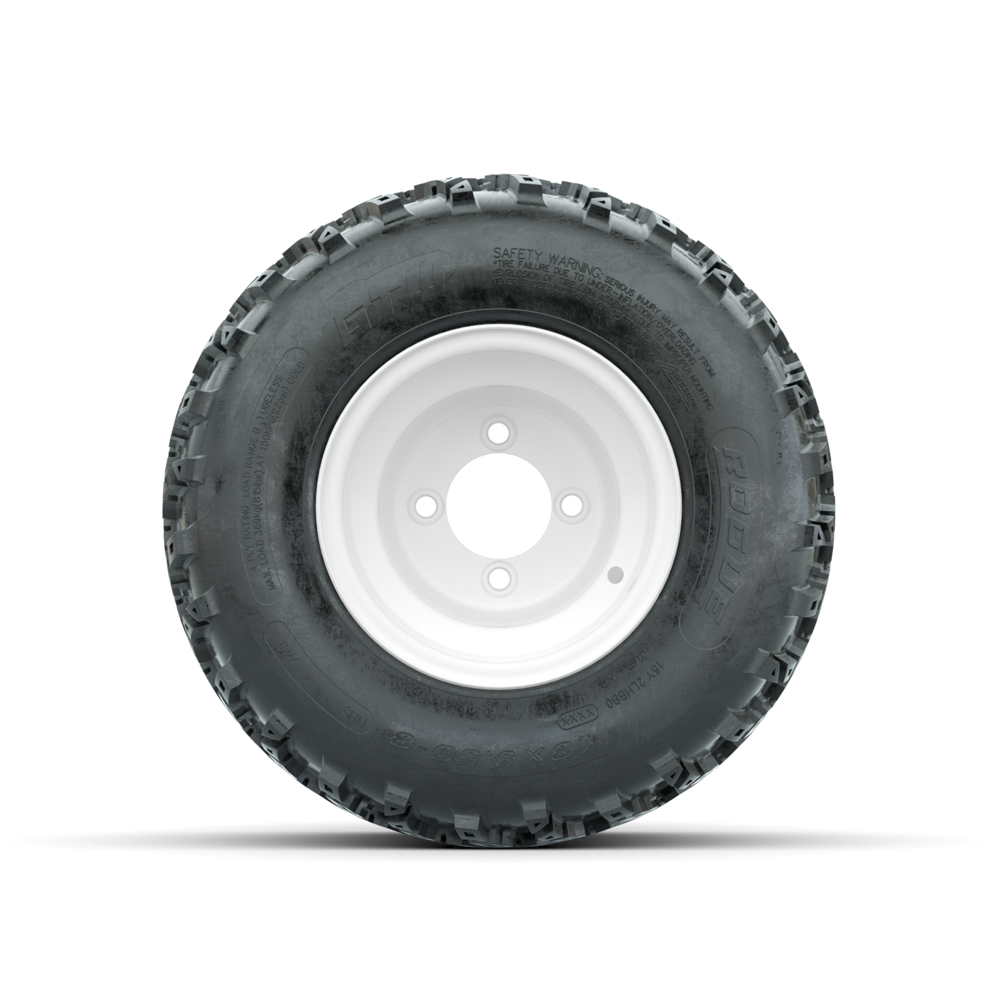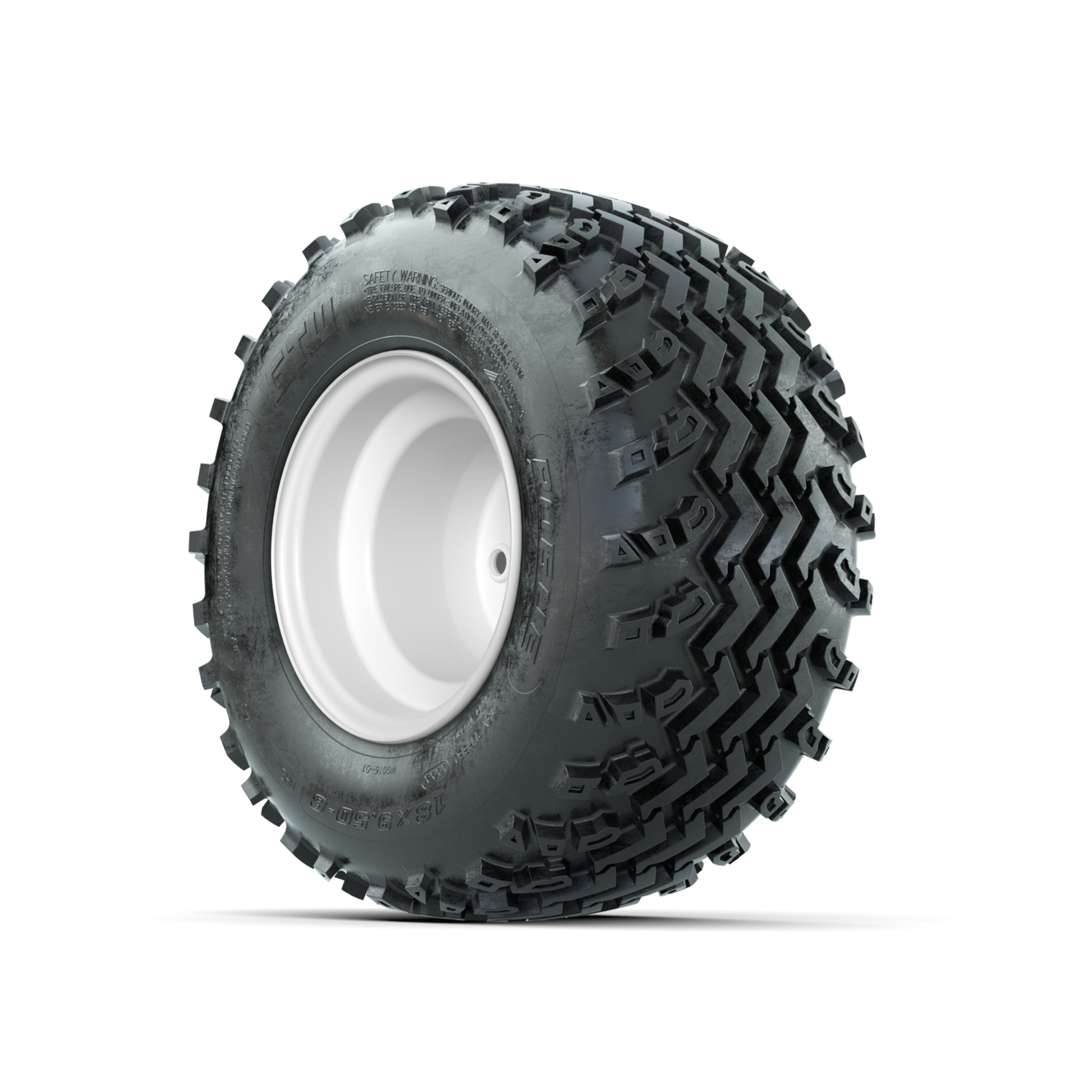 | Product Description: | A set of (4) 8-inch GTW-Steel White 2:5 Offset golf cart wheels Mounted on 18x9.50-8 Rogue All-Terrain Tires Tread Classification: All-Terrain Full Tire & Wheel Combo Includes: (4) 8x7 GTW-Steel Wheels / White finish / Offset: 2:5 (4) 18x9.50-8 GTW Rogue All-Terrain Tires / Tire is approx. 18- tall (4-Ply) Reuse Stock Lugs Please Note: All Wheels are 4 on 4 Hole / Lug Pattern unless otherwise specified. Tech Tips: No Lift Kit Required for This Tire & Wheel Combo (Tire is approx. 18- OD) Please Check and Adjust PSI in Tires Before Operation (Recommended Inflation Can Be Found on Sidewall of Tire) Tire & Wheel Combos are mounted and Inflated Before Shipping, Free of Charge All Wheels Have a lug pattern of "4x101.6mm" Lug Nuts Sold Separately: Standard Chrome Lug Nuts #LUG4S Metric Chrome Lug Nuts #LUG4M (Yamaha Models) |