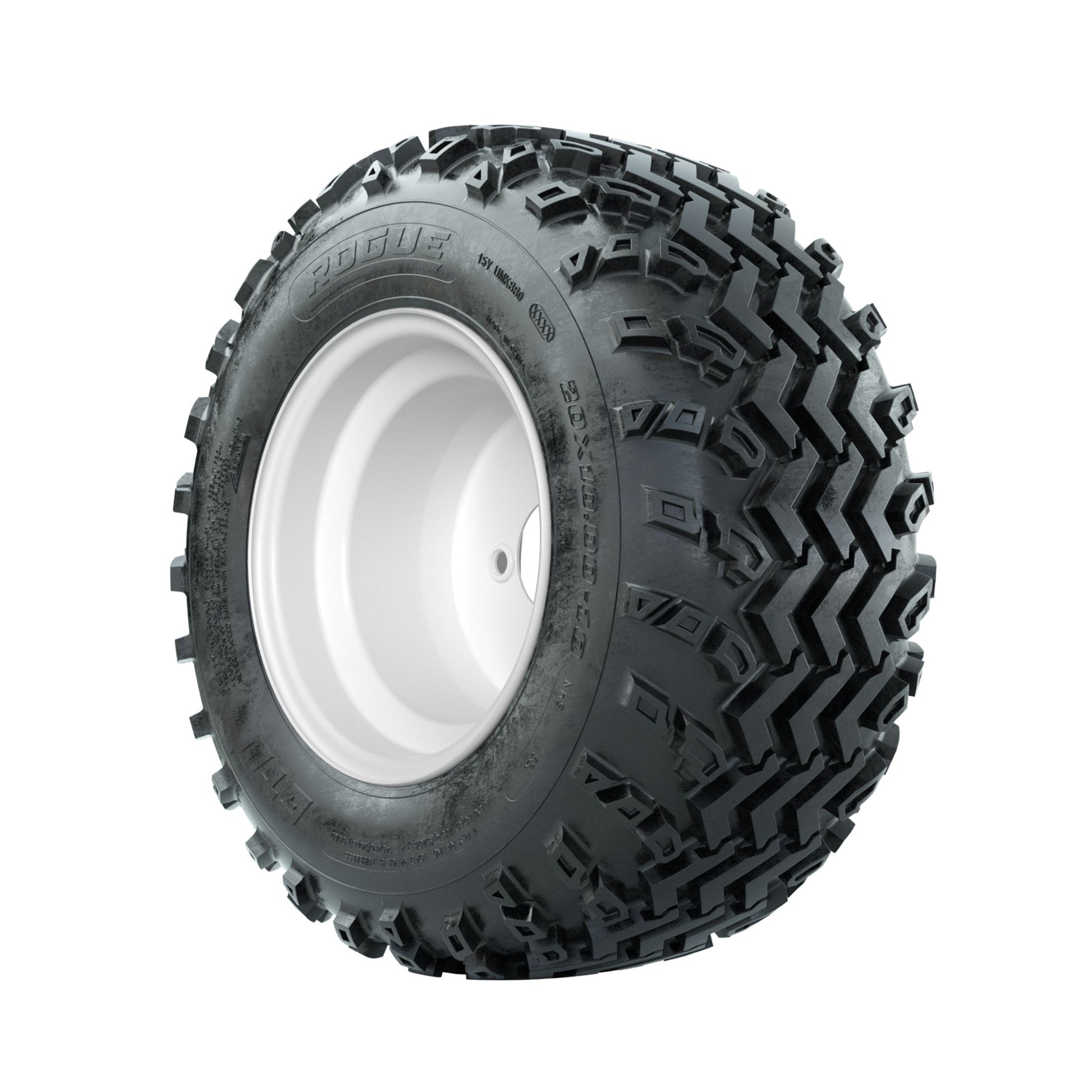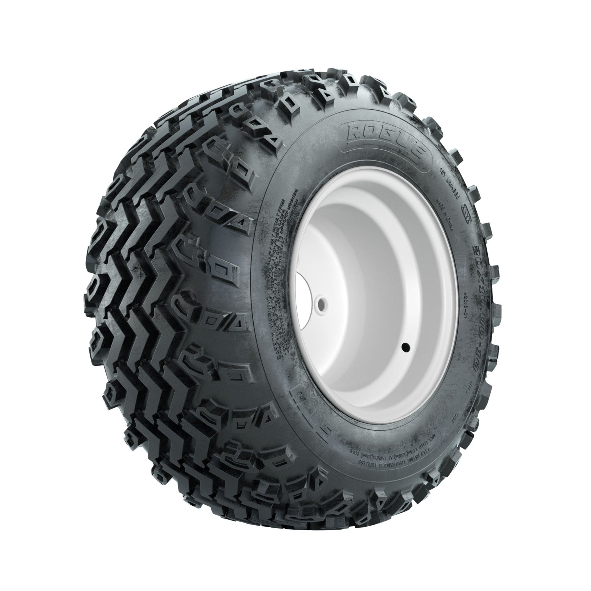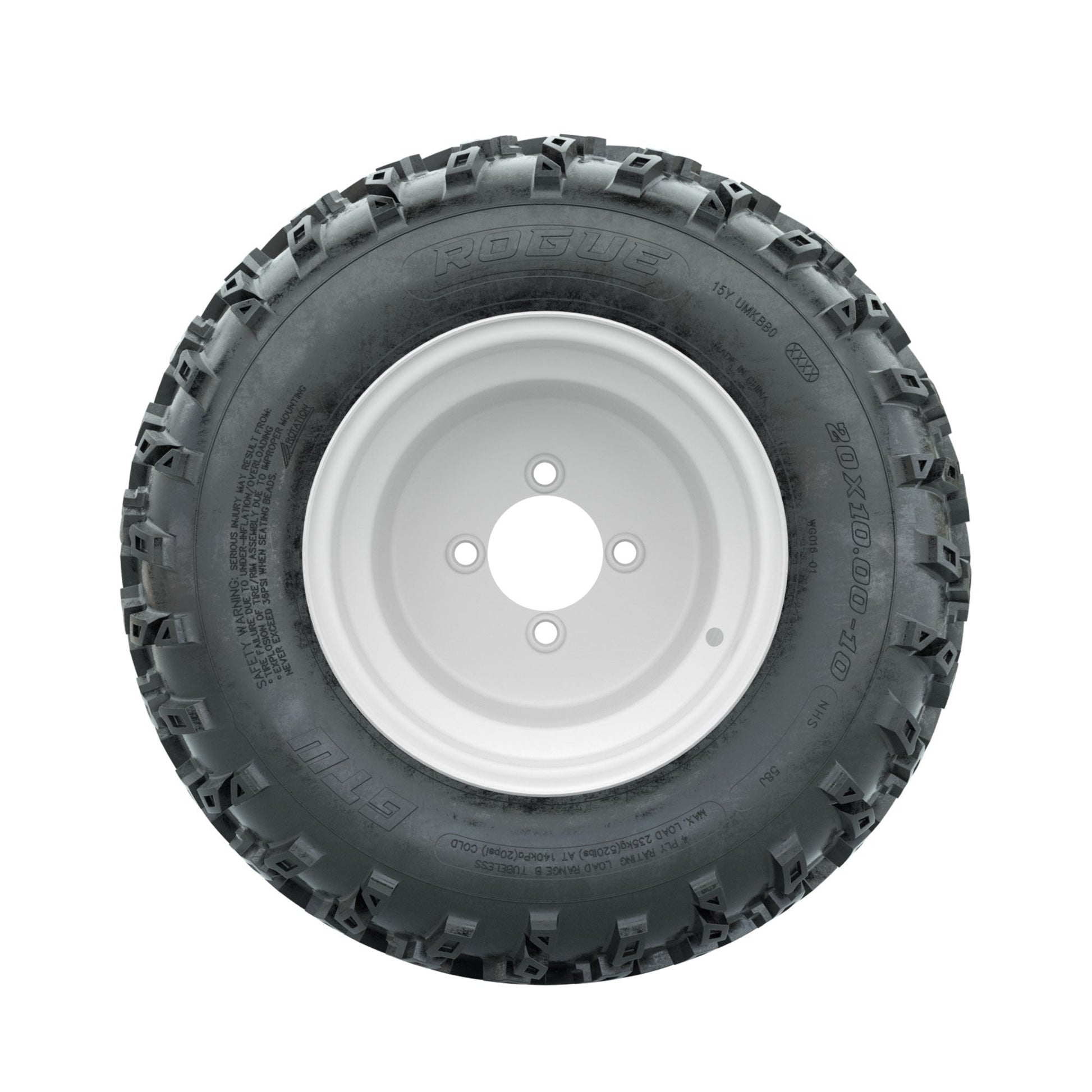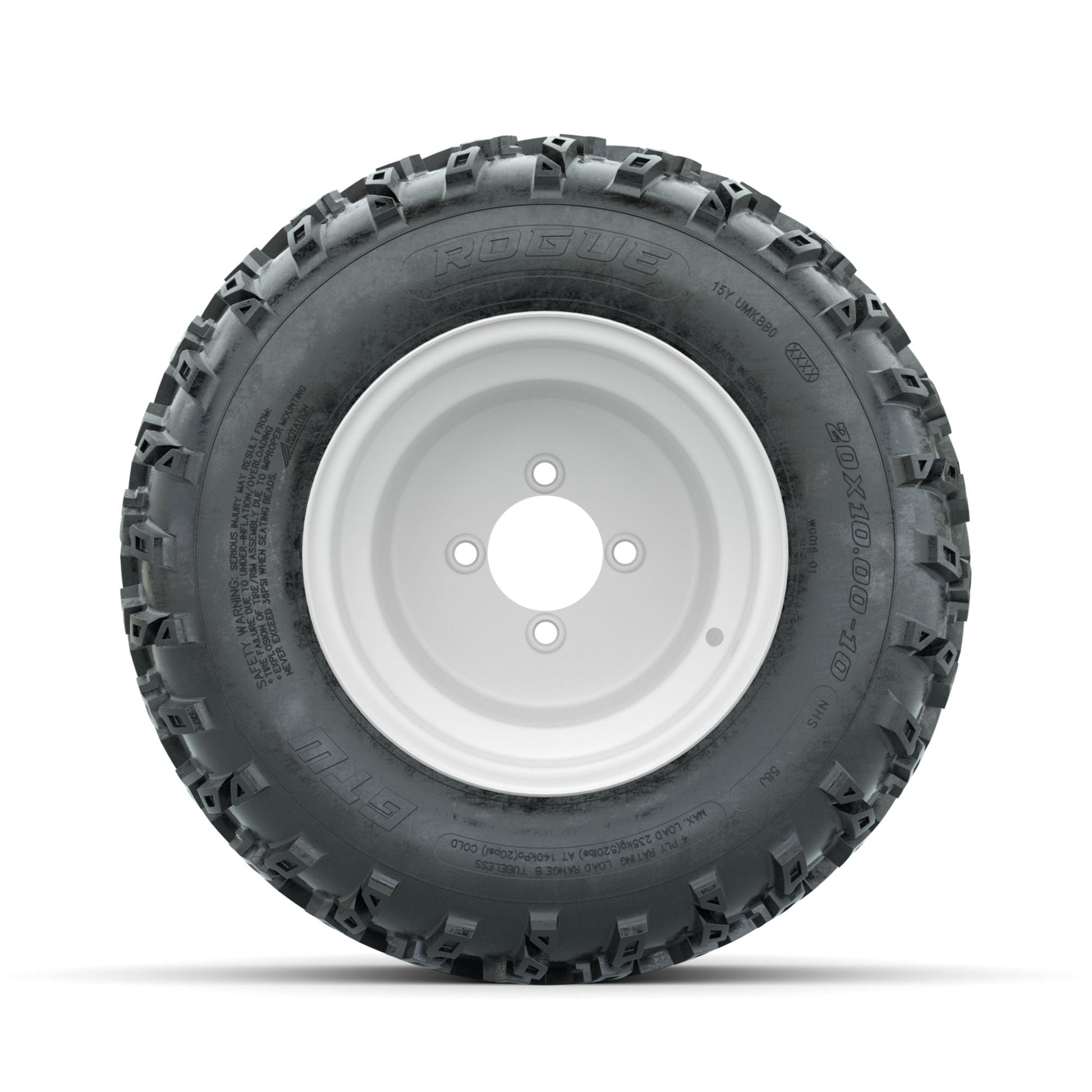 GTW Steel White 3:5 Offset 10 in Wheels with 20x10.00-10 Rogue All Terrain Tires Full Set