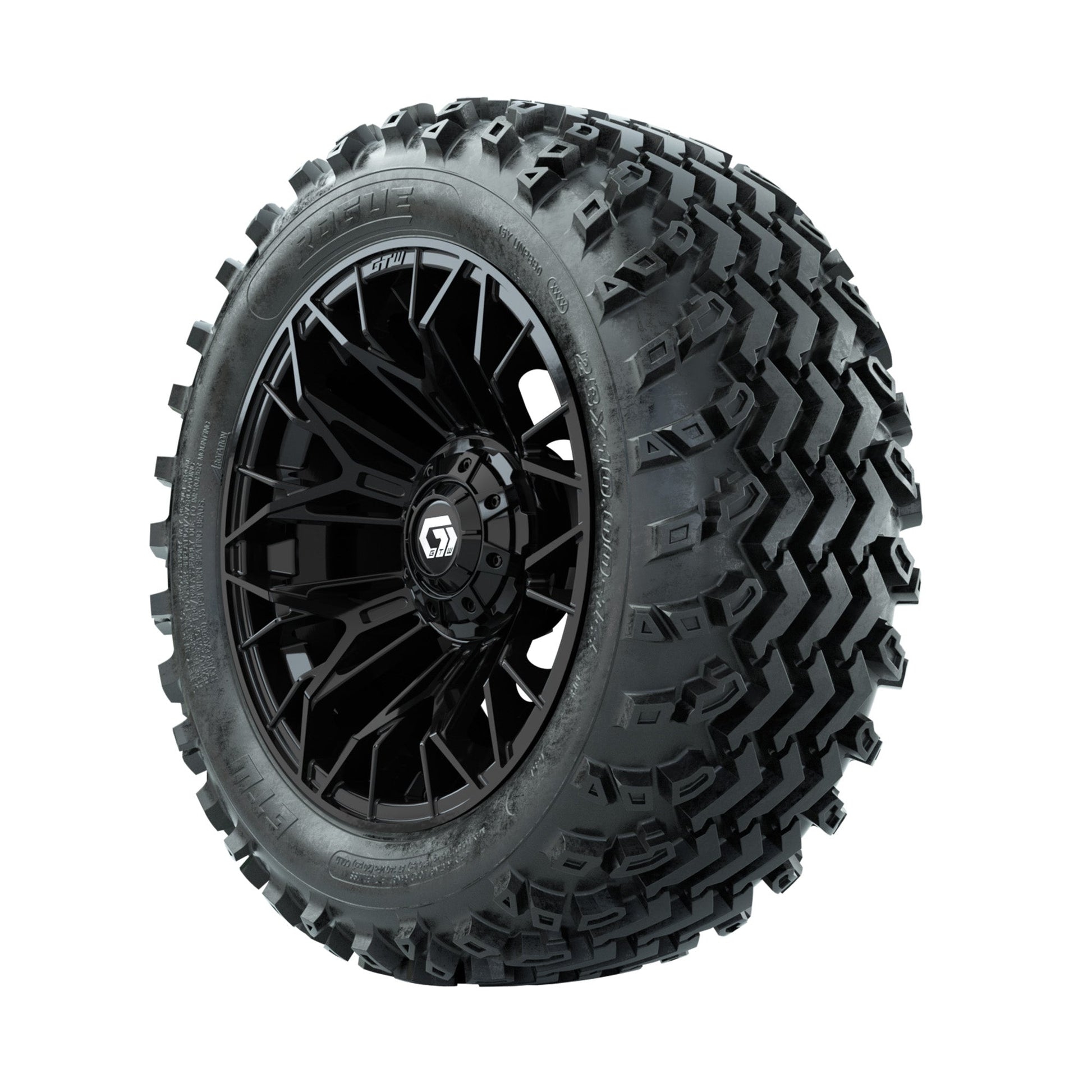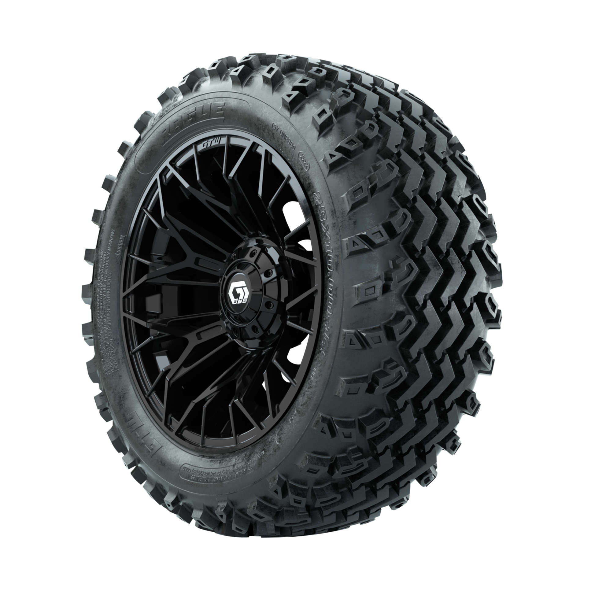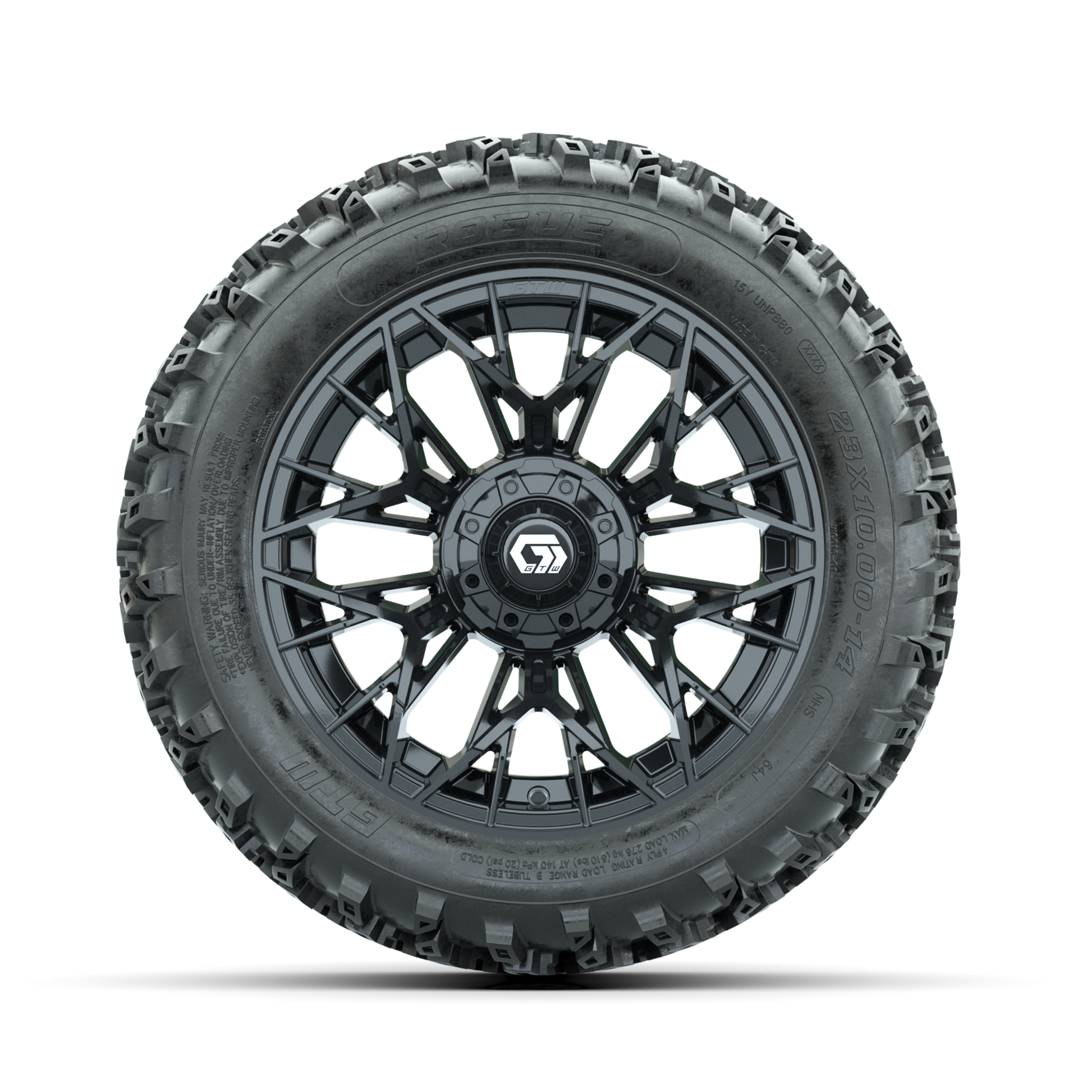 | Product Description: | A set of (4) 14-inch GTW-Stellar Black golf cart wheels Mounted on 23x10.00-14 Rogue All-Terrain Tires Tread Classification: All-Terrain Full Tire & Wheel Combo Includes: (4) 14x7 GTW-Stellar Wheels / Black finish / Offset: 3:4 (ET -.25) (4) 23x10.00-14 GTW Rogue All-Terrain Tires / Tire is approx. 23- tall (4-Ply) (4) Center caps Please Note: All Wheels are 4 on 4 Hole / Lug Pattern unless otherwise specified. Tech Tips: We Recommend a Minimum 3- Lift Kit for This Tire & Wheel Combo (Tire is approx. 23- OD) Please Check and Adjust PSI in Tires Before Operation (Recommended Inflation Can Be Found on Sidewall of Tire) Tire & Wheel Combos are mounted and Inflated Before Shipping, Free of Charge All Wheels Have a lug pattern of "4x101.6mm" Lug Nuts Sold Separately: Standard Chrome Lug Nuts #LUG4S Metric Chrome Lug Nuts #LUG4M (Yamaha Models) |