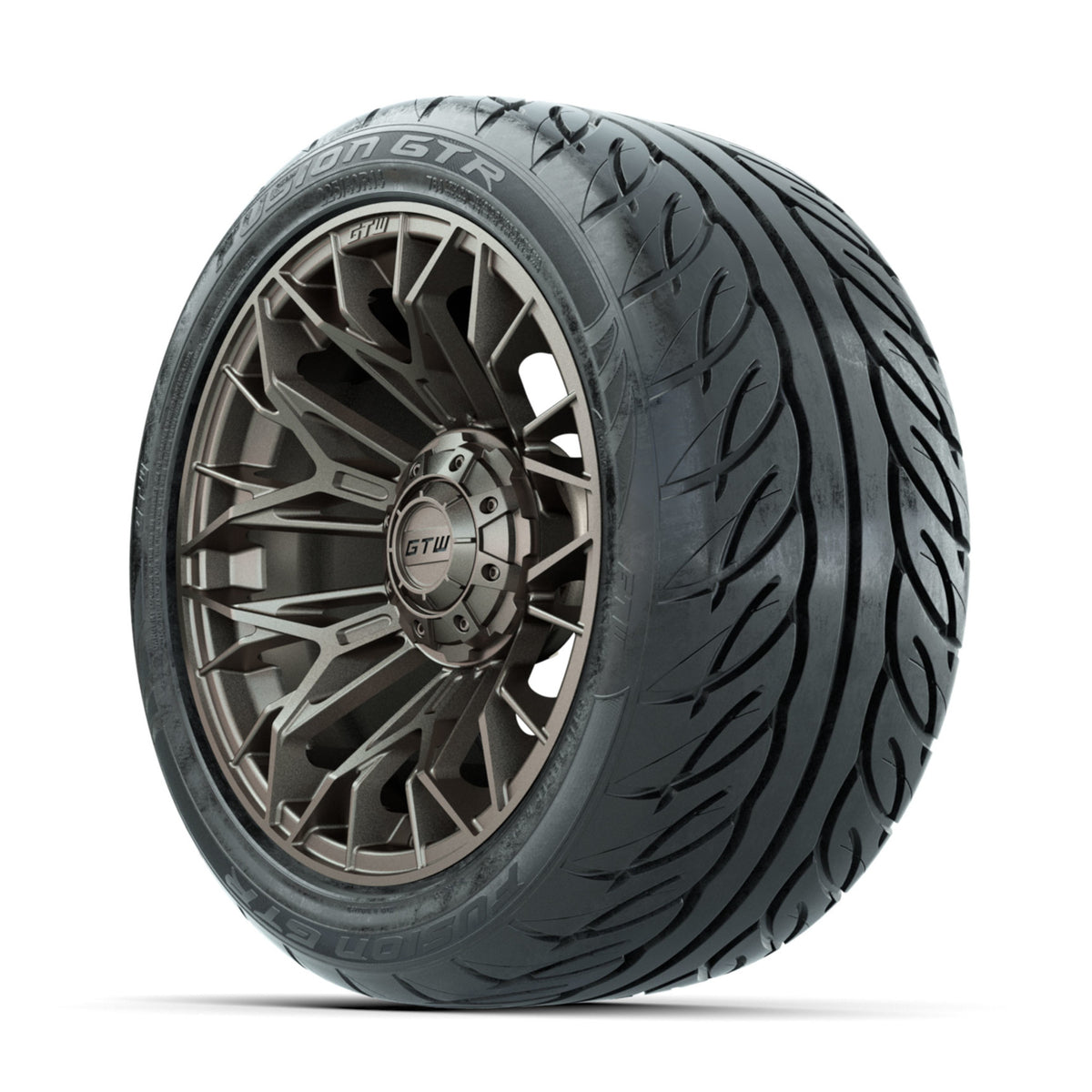 | Product Description: | A set of (4) 14-inch GTW-Stellar Matte Bronze golf cart wheels Mounted on 225/40-R14 GTW-Fusion GTR Steel Belted Street Tires Tread Classification: Course / Street Full Tire & Wheel Combo Includes: (4) 14x7 GTW-Stellar Wheels / Matte Bronze finish / Offset: 3:4 (ET -.25) (4) 225/40-R14 GTW-Fusion GTR Steel Belted Street Tires / Tire is approx. 21- tall (4-Ply) (4) Center caps Please Note: All Wheels are 4 on 4 Hole / Lug Pattern unless otherwise specified. Tech Tips: We Recommend a Minimum 3- Lift Kit for This Tire & Wheel Combo (Tire is approx. 21- OD) Please Check and Adjust PSI in Tires Before Operation (Recommended Inflation Can Be Found on Sidewall of Tire) Tire & Wheel Combos are mounted and Inflated Before Shipping, Free of Charge All Wheels Have a lug pattern of "4x101.6mm" Lug Nuts Sold Separately: Standard Chrome Lug Nuts #LUG4S Metric Chrome Lug Nuts #LUG4M (Yamaha Models) |