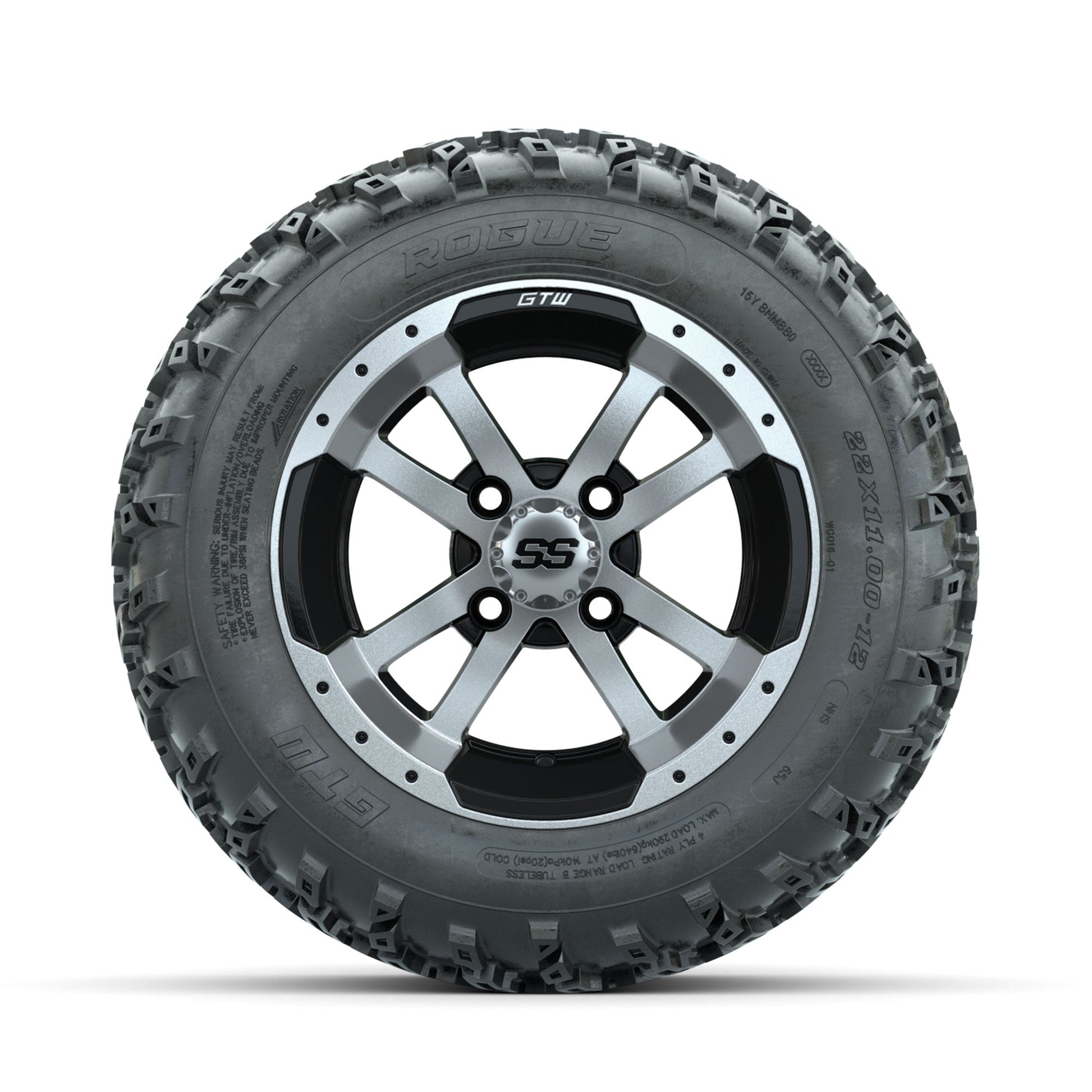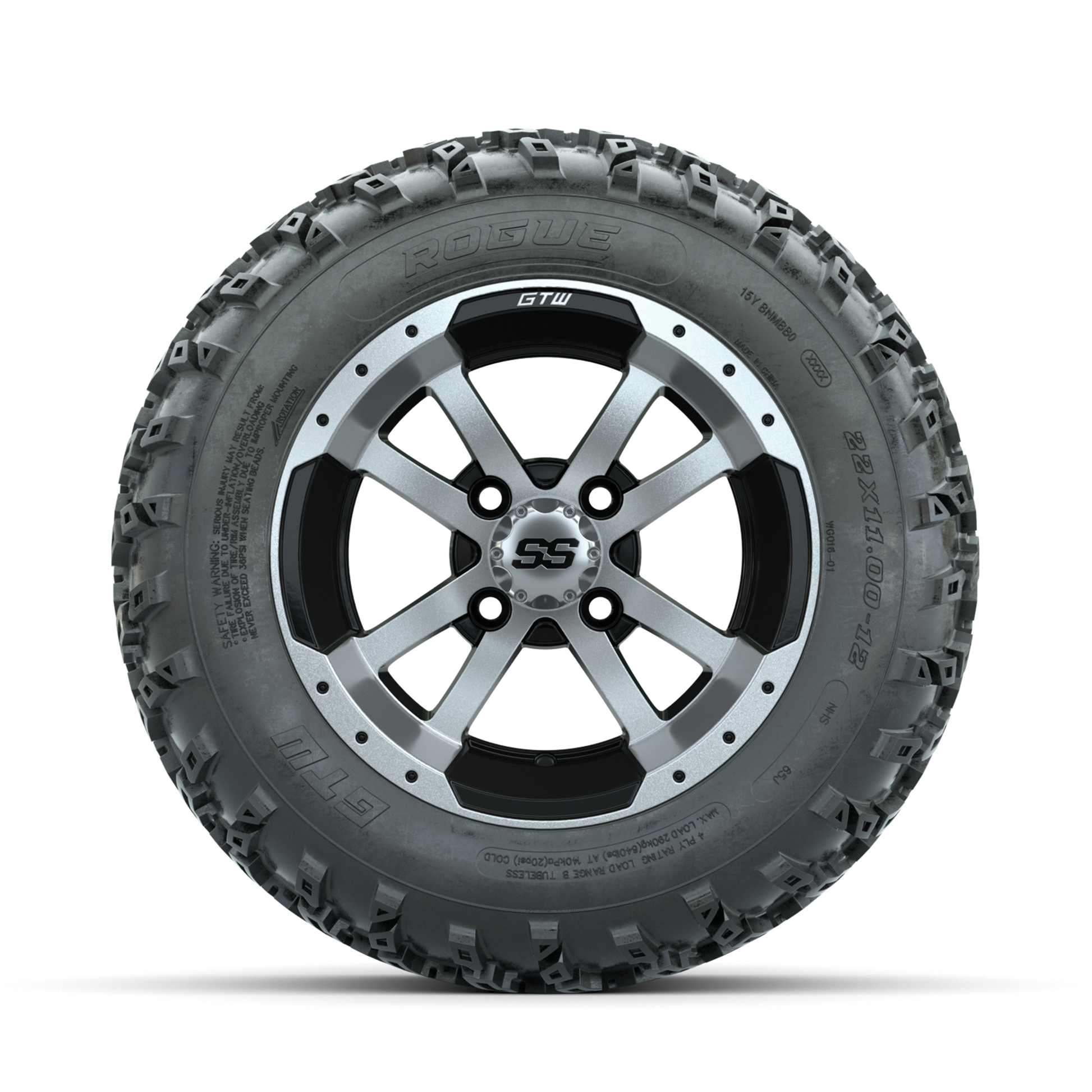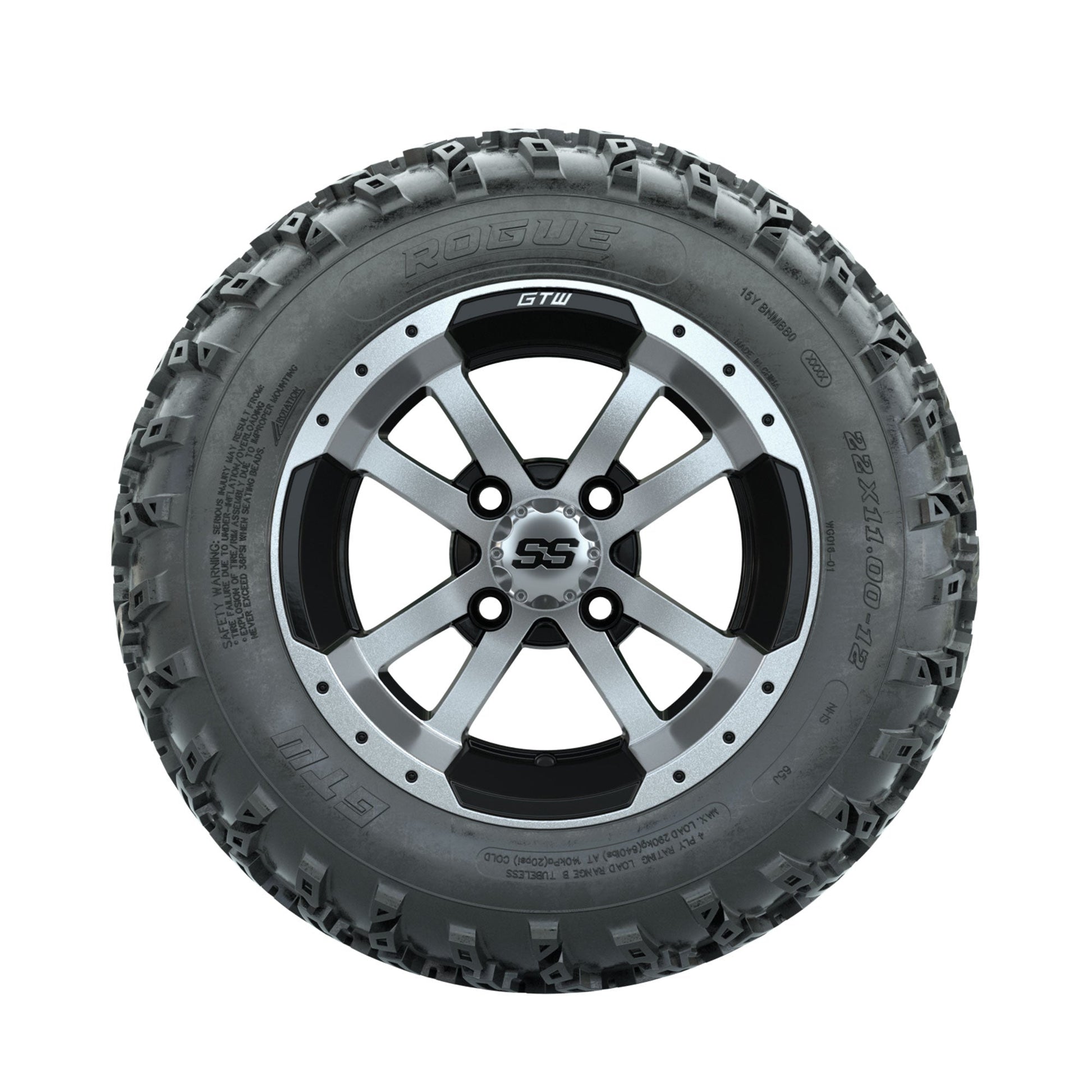 GTW Storm Trooper Machined/Black 12 in Wheels with 22x11.00-12 Rogue All Terrain Tires Full Set