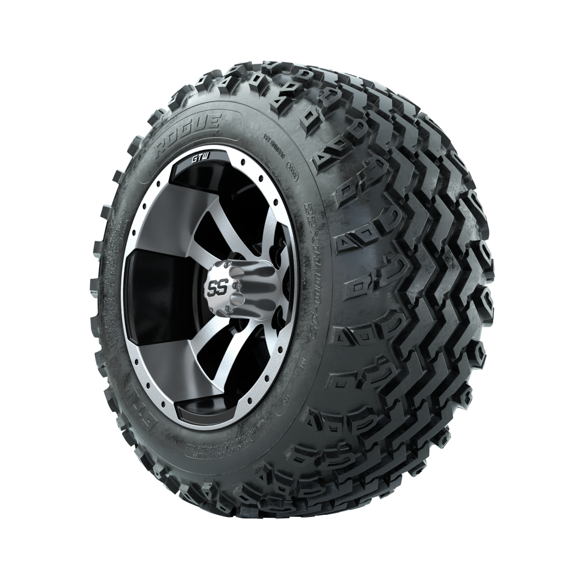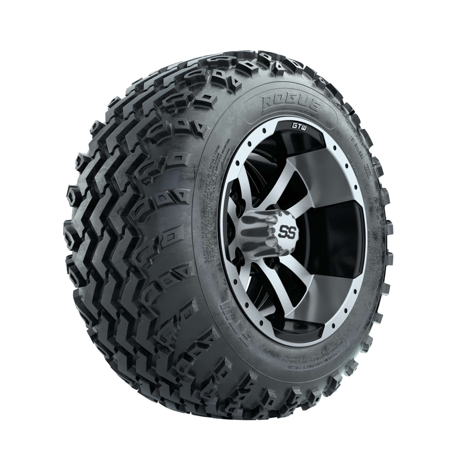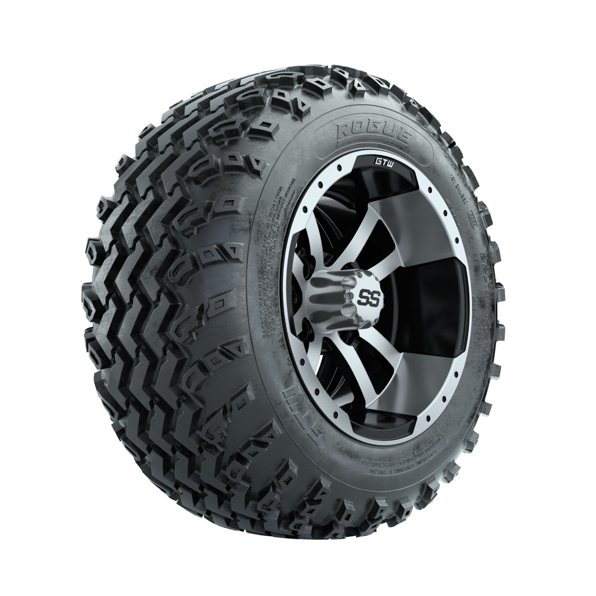 GTW Storm Trooper Machined/Black 12 in Wheels with 22x11.00-12 Rogue All Terrain Tires Full Set
