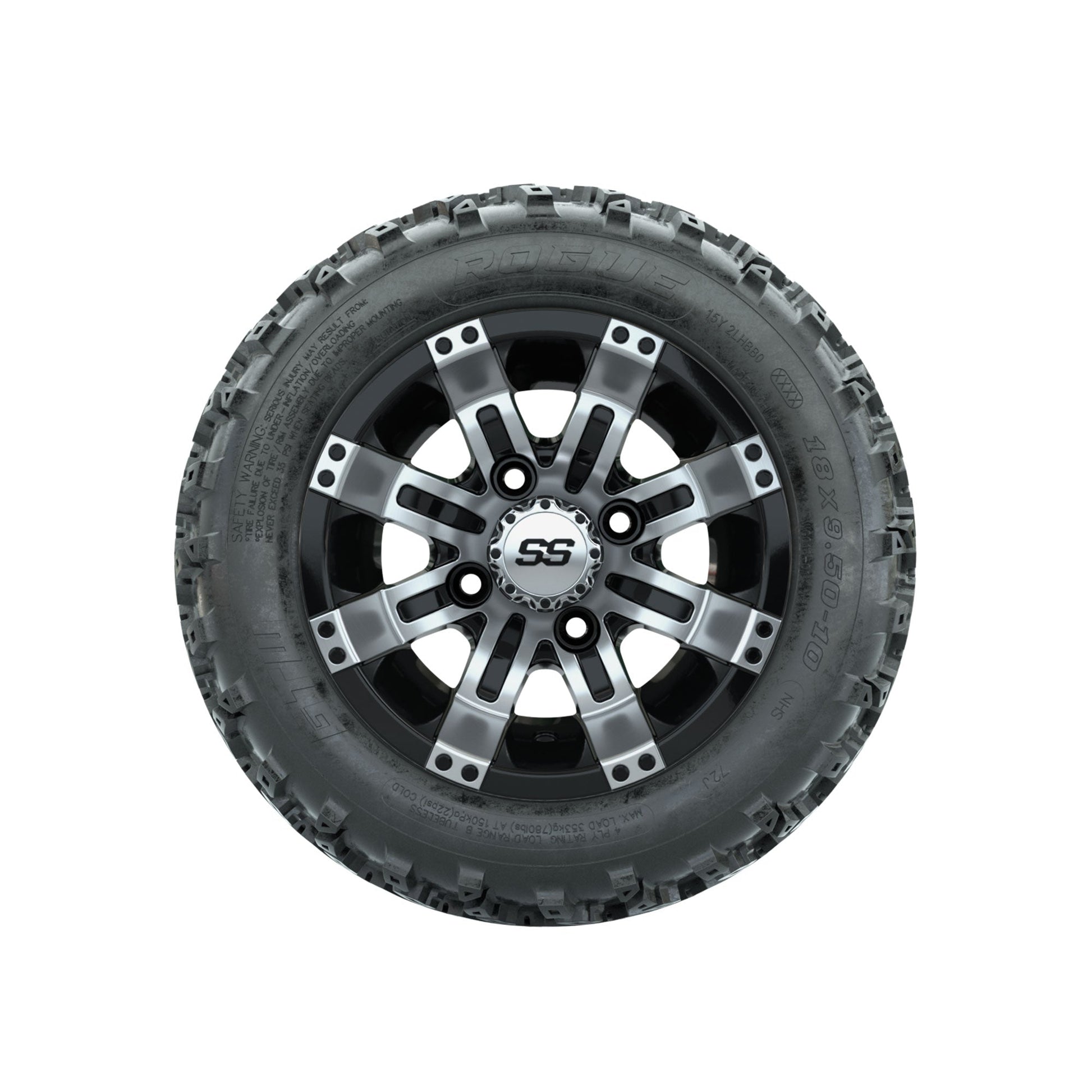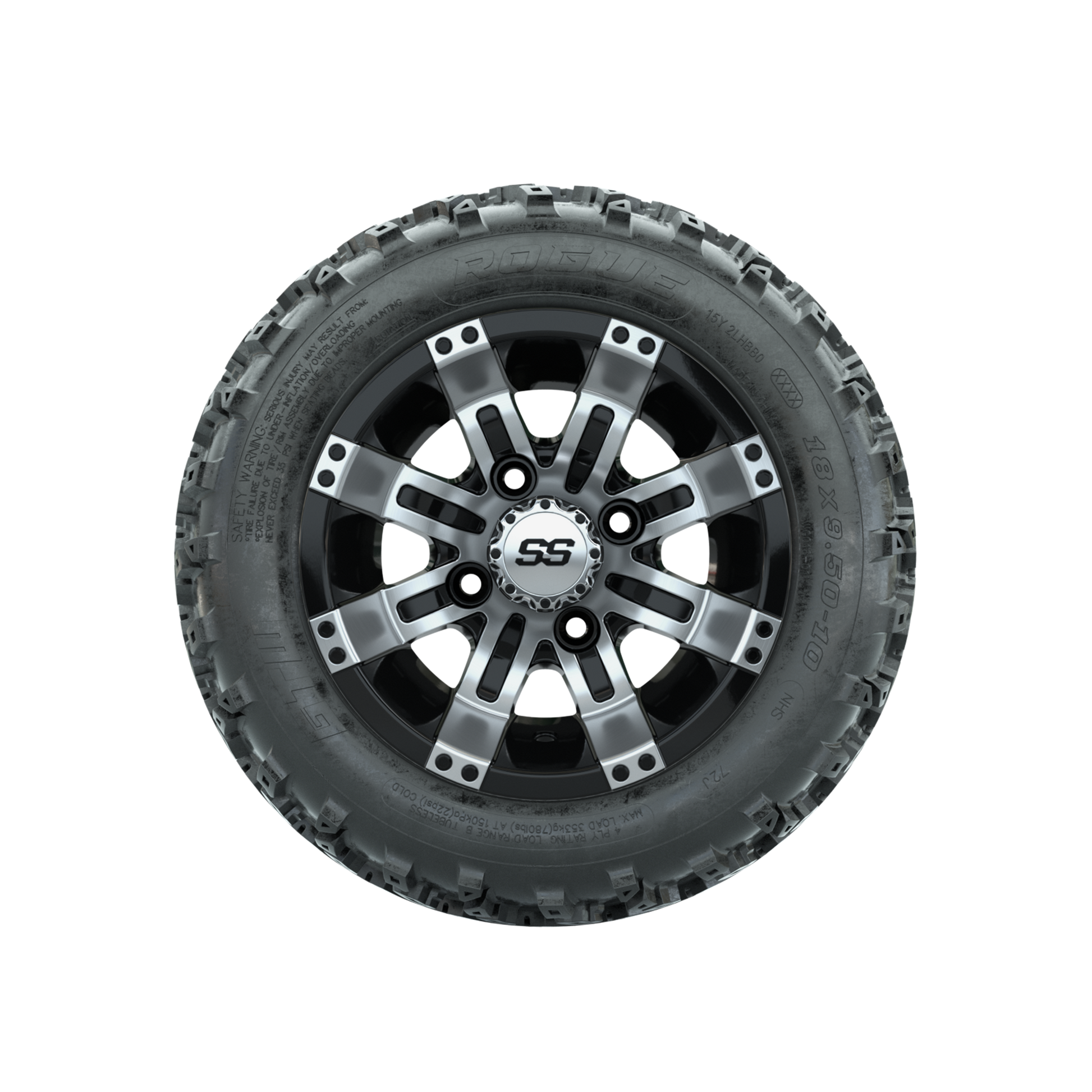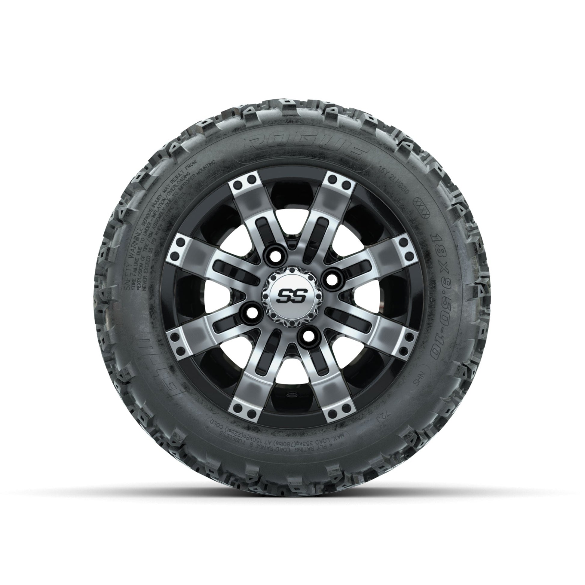 GTW Tempest Machined/Black 10 in Wheels with 18x9.50-10 Rogue All Terrain Tires Full Set