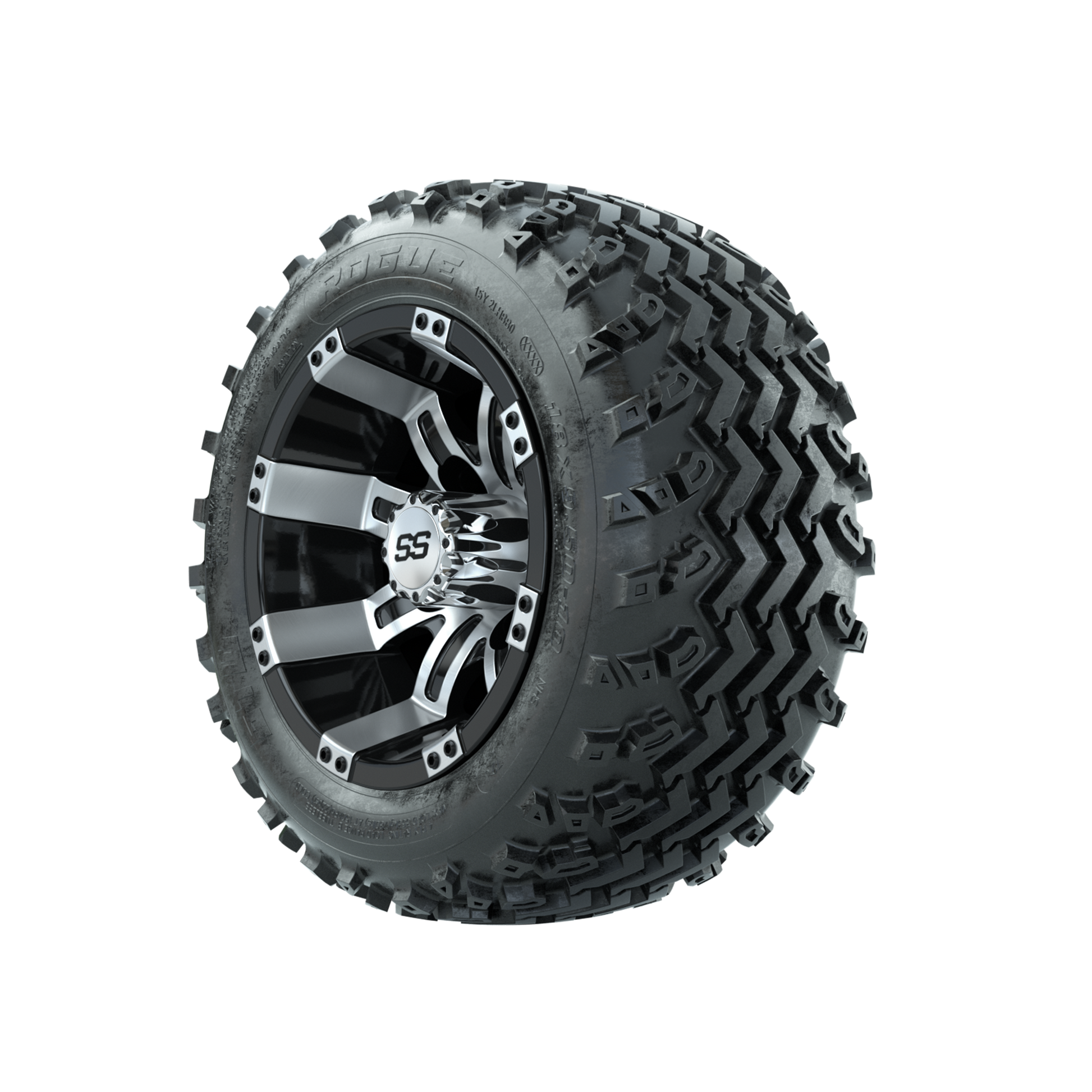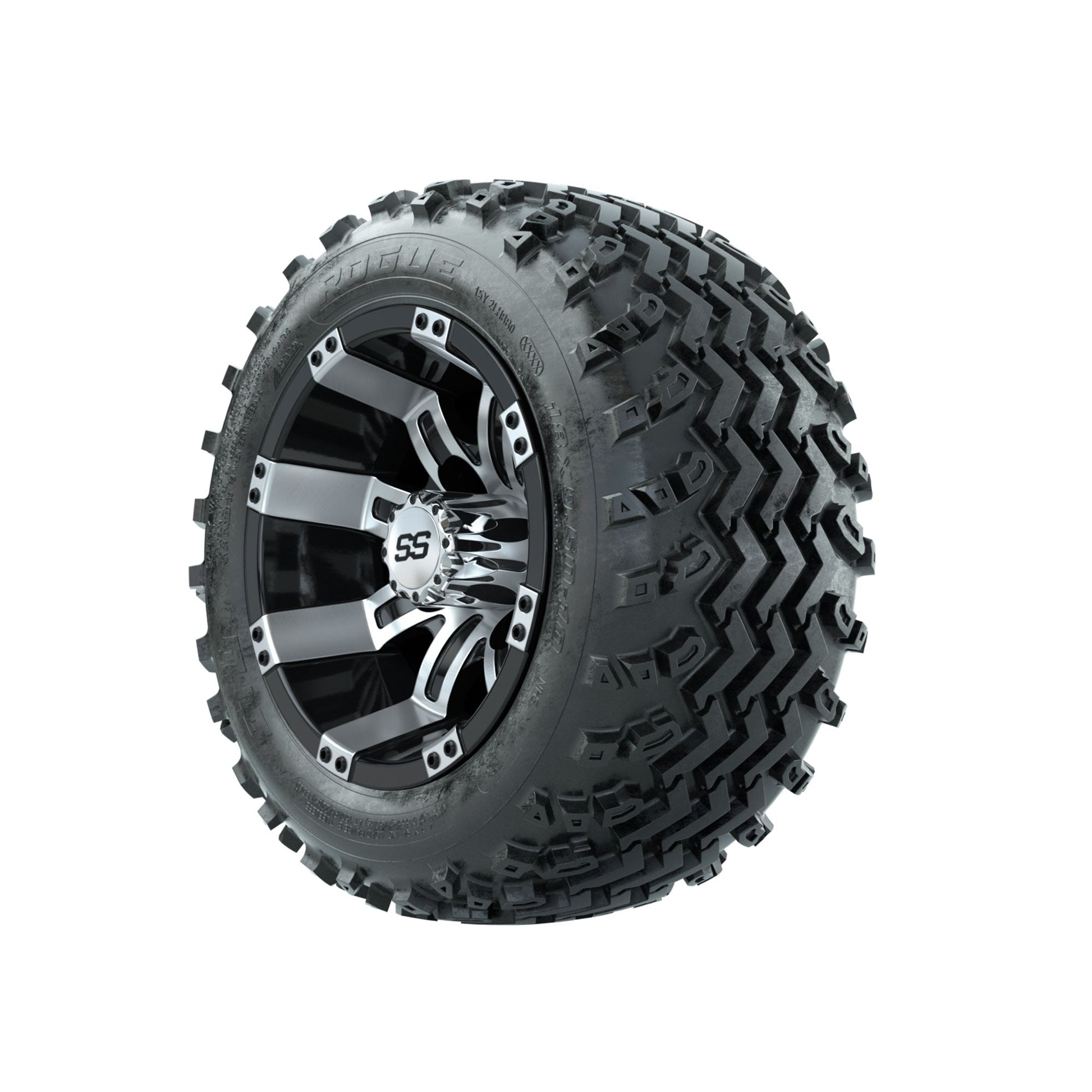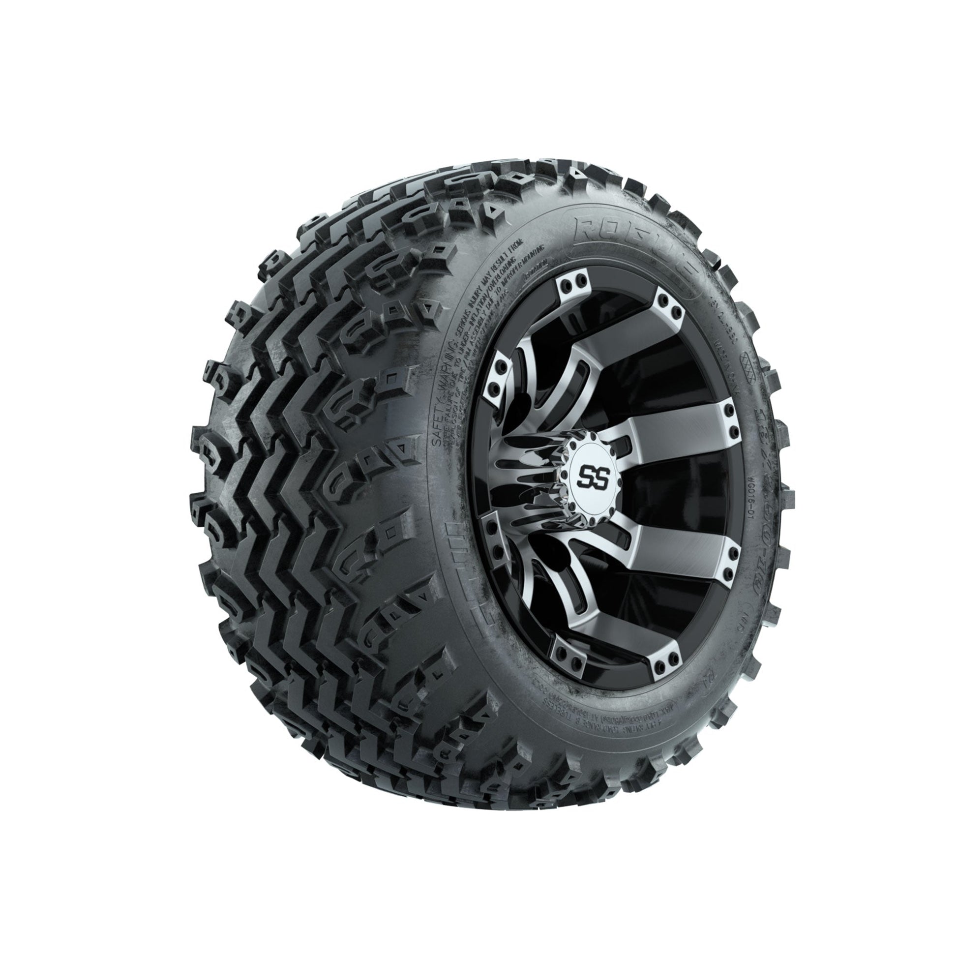 GTW Tempest Machined/Black 10 in Wheels with 18x9.50-10 Rogue All Terrain Tires Full Set